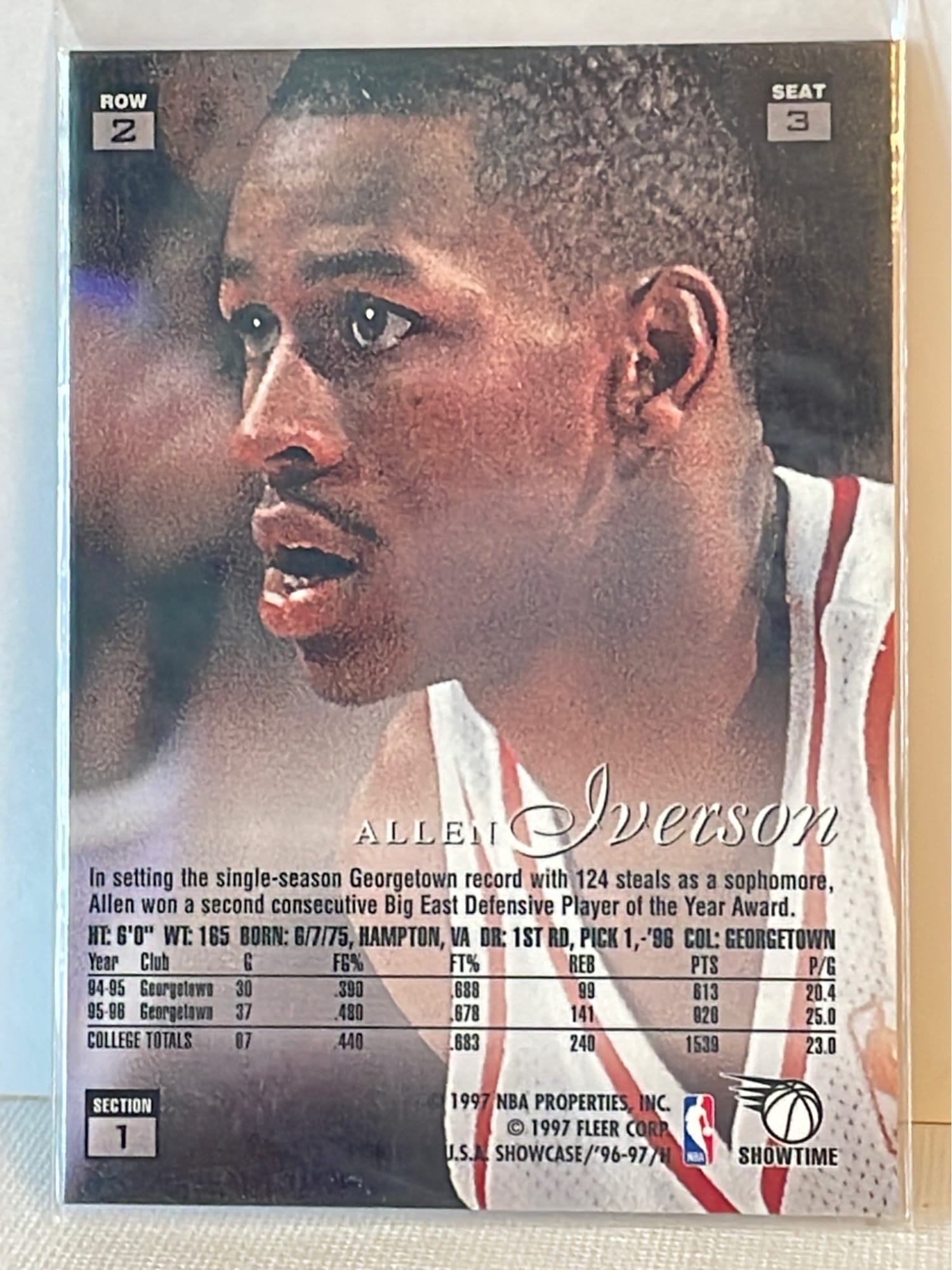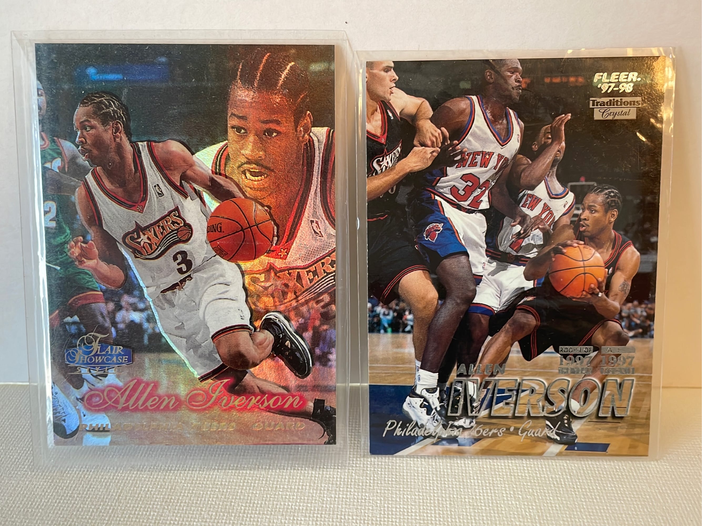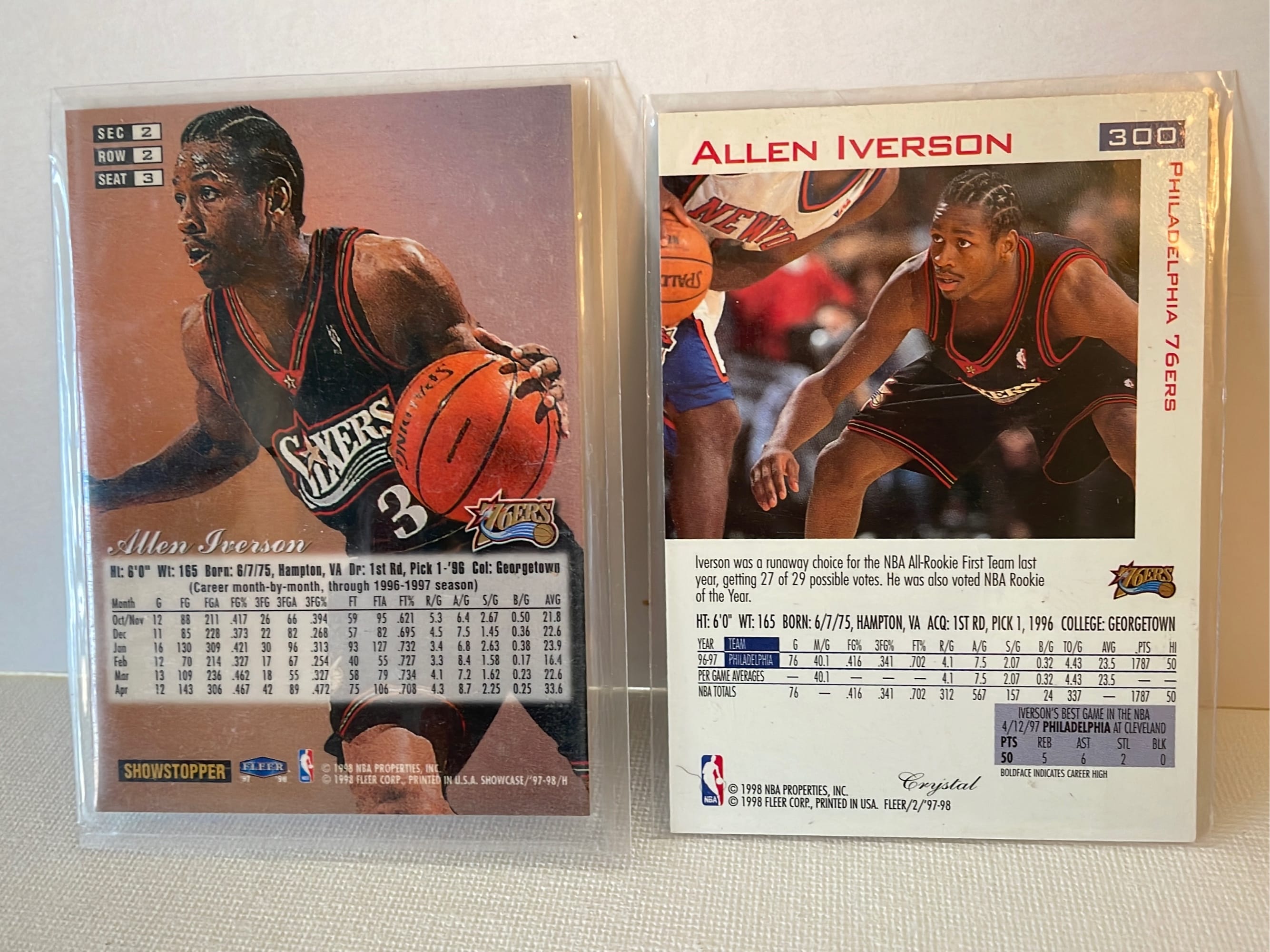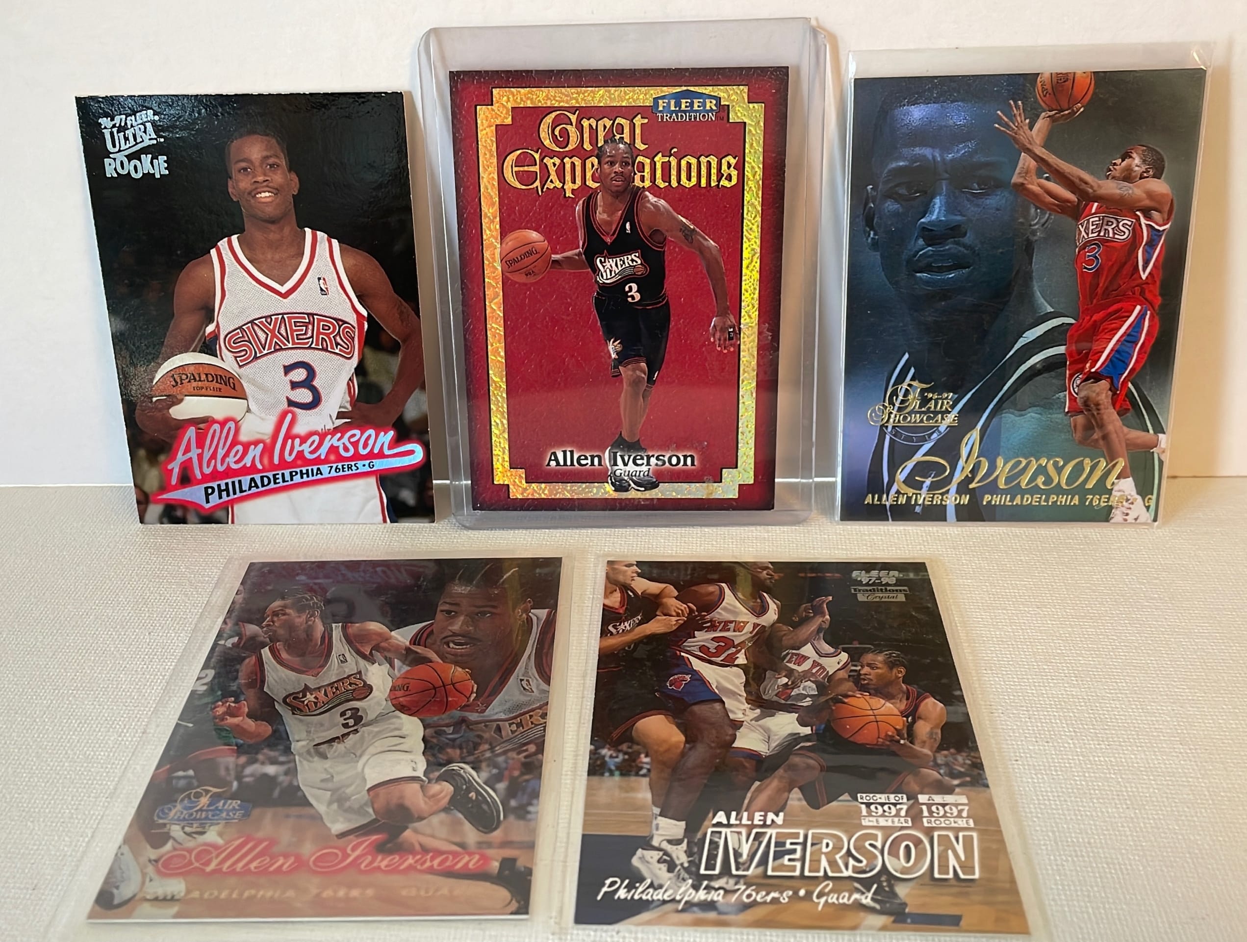 102 (5) Allen Iverson Basketball Cards including: 1996-97 Fleer Showcase Row 2, ‘96-‘97 Ultra Rookie and FLEER ‘98 “Great Expectations”