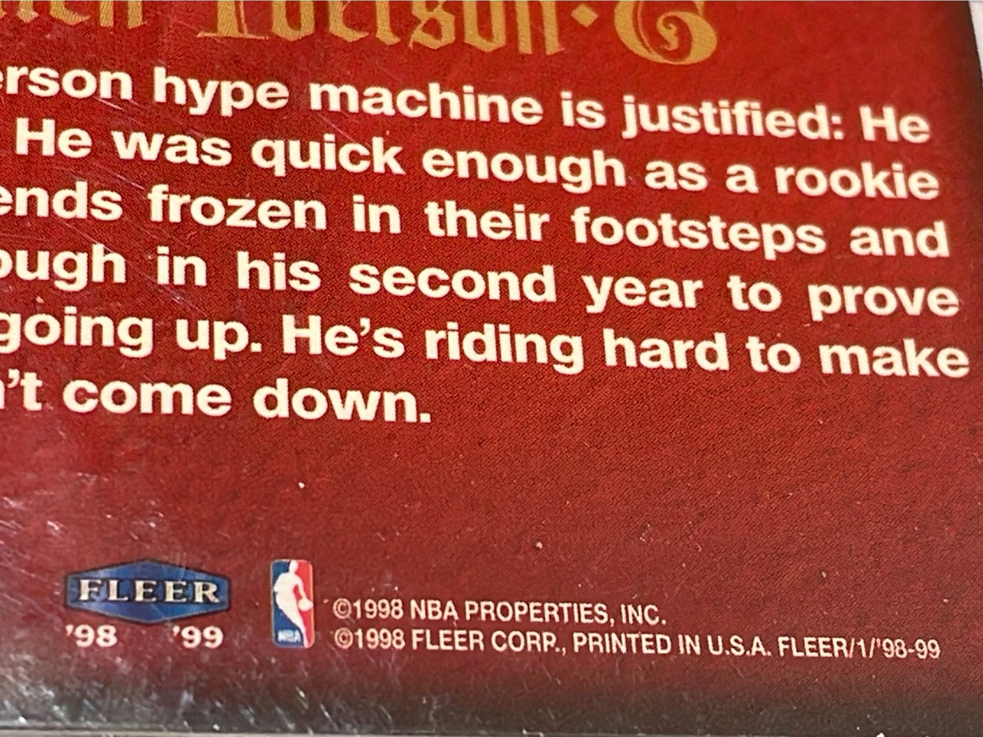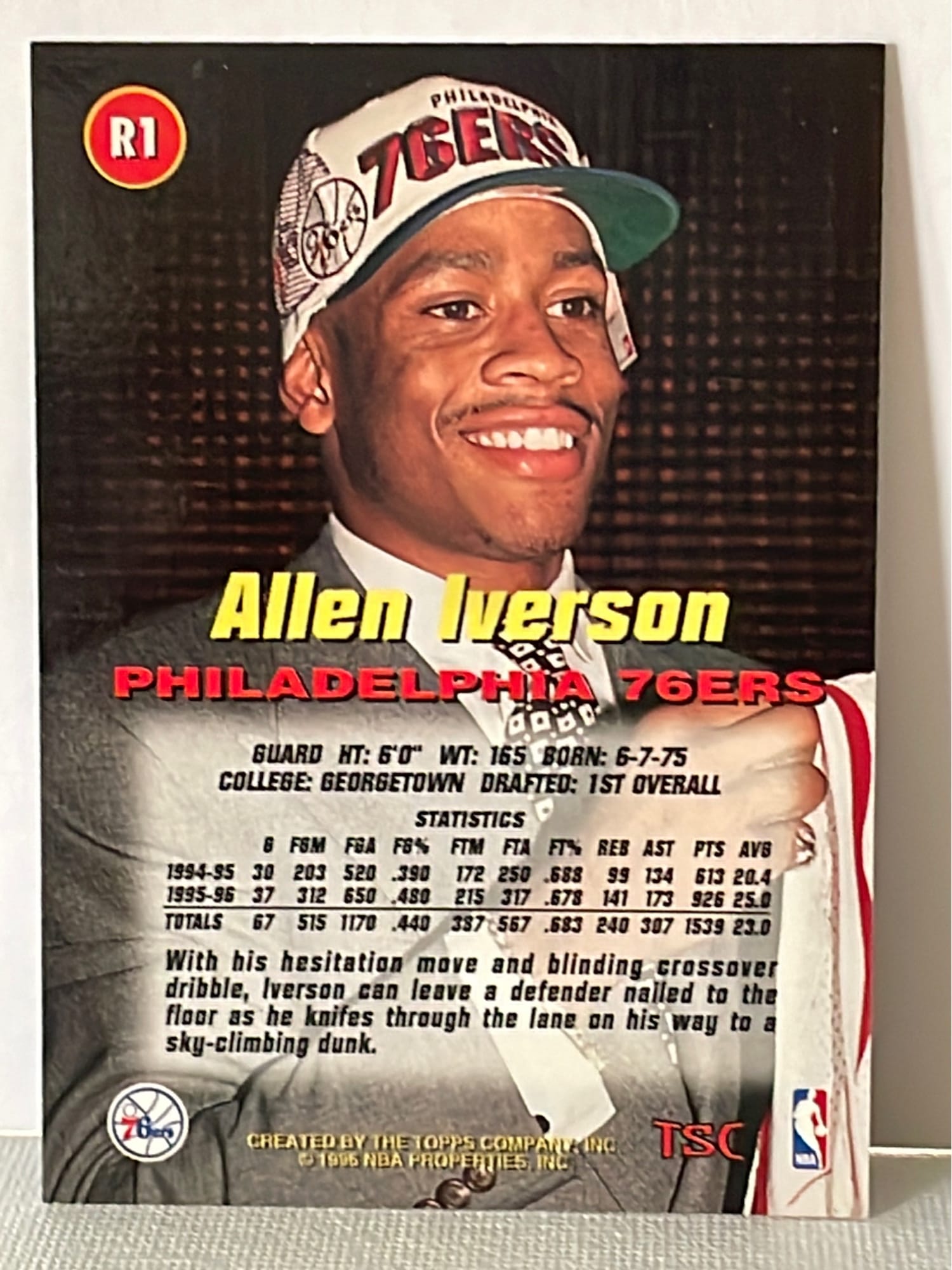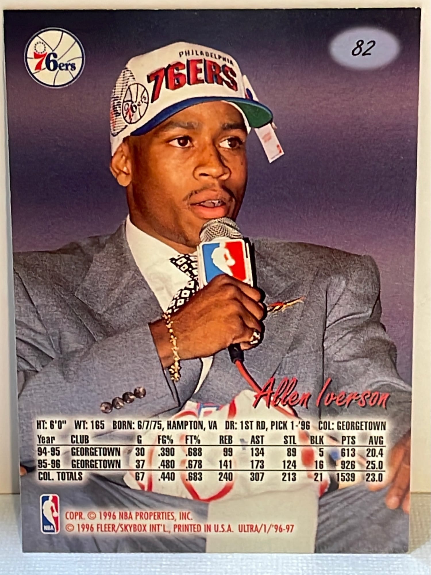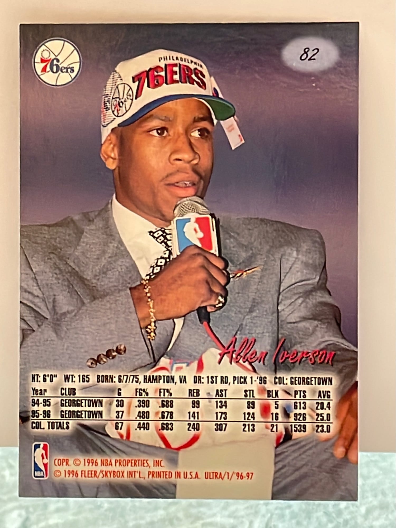 102 (5) Allen Iverson Basketball Cards including: 1996-97 Fleer Showcase Row 2, ‘96-‘97 Ultra Rookie and FLEER ‘98 “Great Expectations”