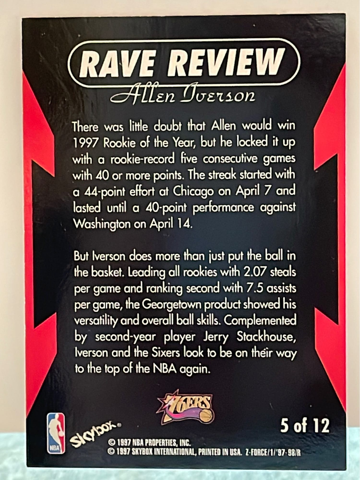 103 (3) Basketball Cards - Z Force RAVE REVIEW Allen Iverson - PREMIER Jerry Stackhouse - SKYBOX Will Perdue