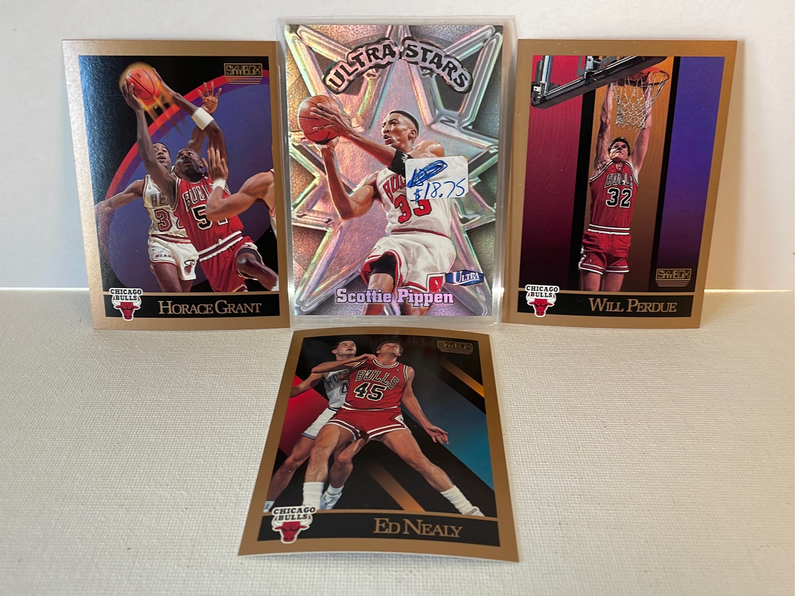 104 (4) Bulls Basketball Cards: Will Perdue, Ed Nealy, Horace Grant, and ULTRA STARS Scottie Pippen