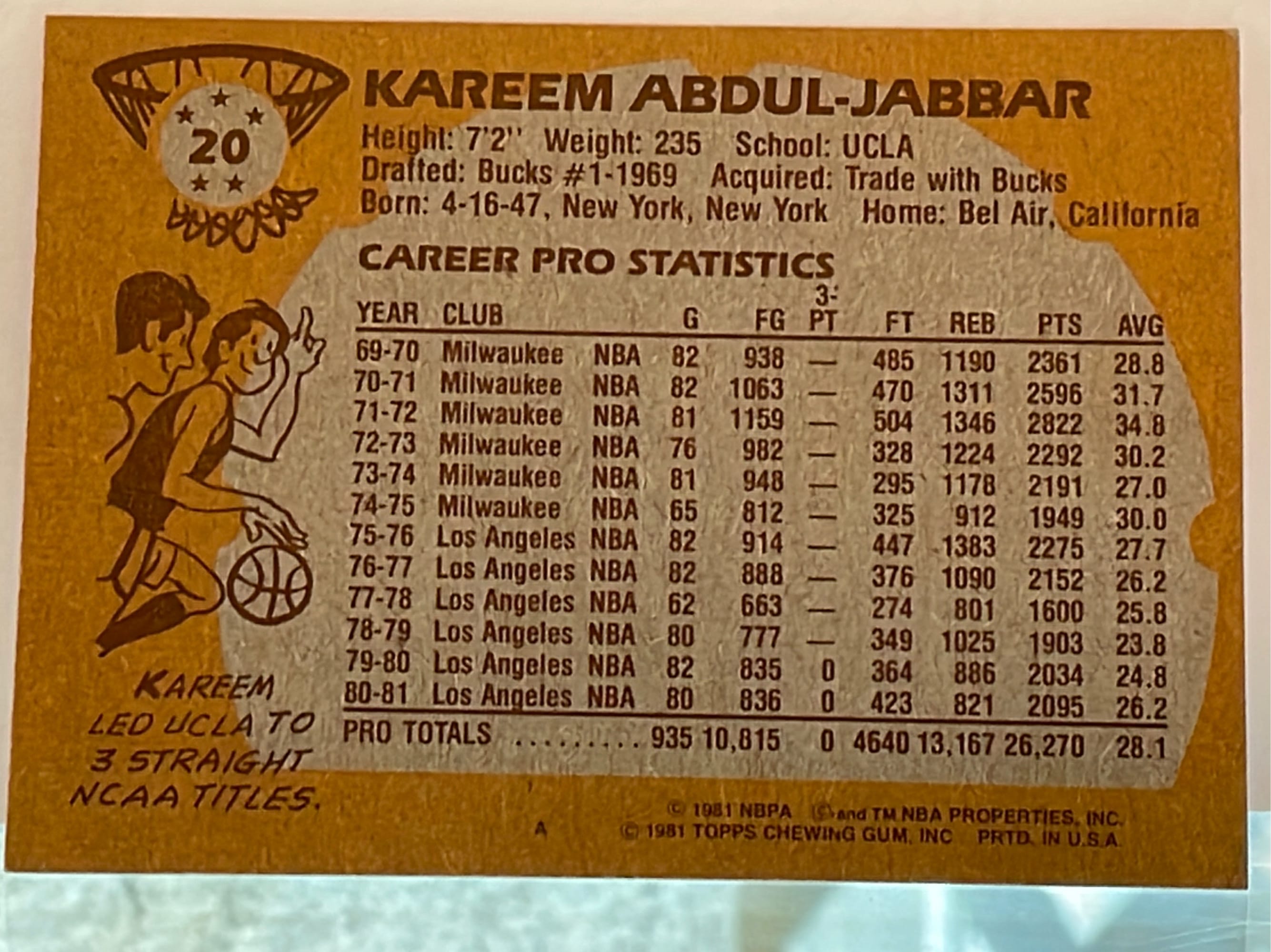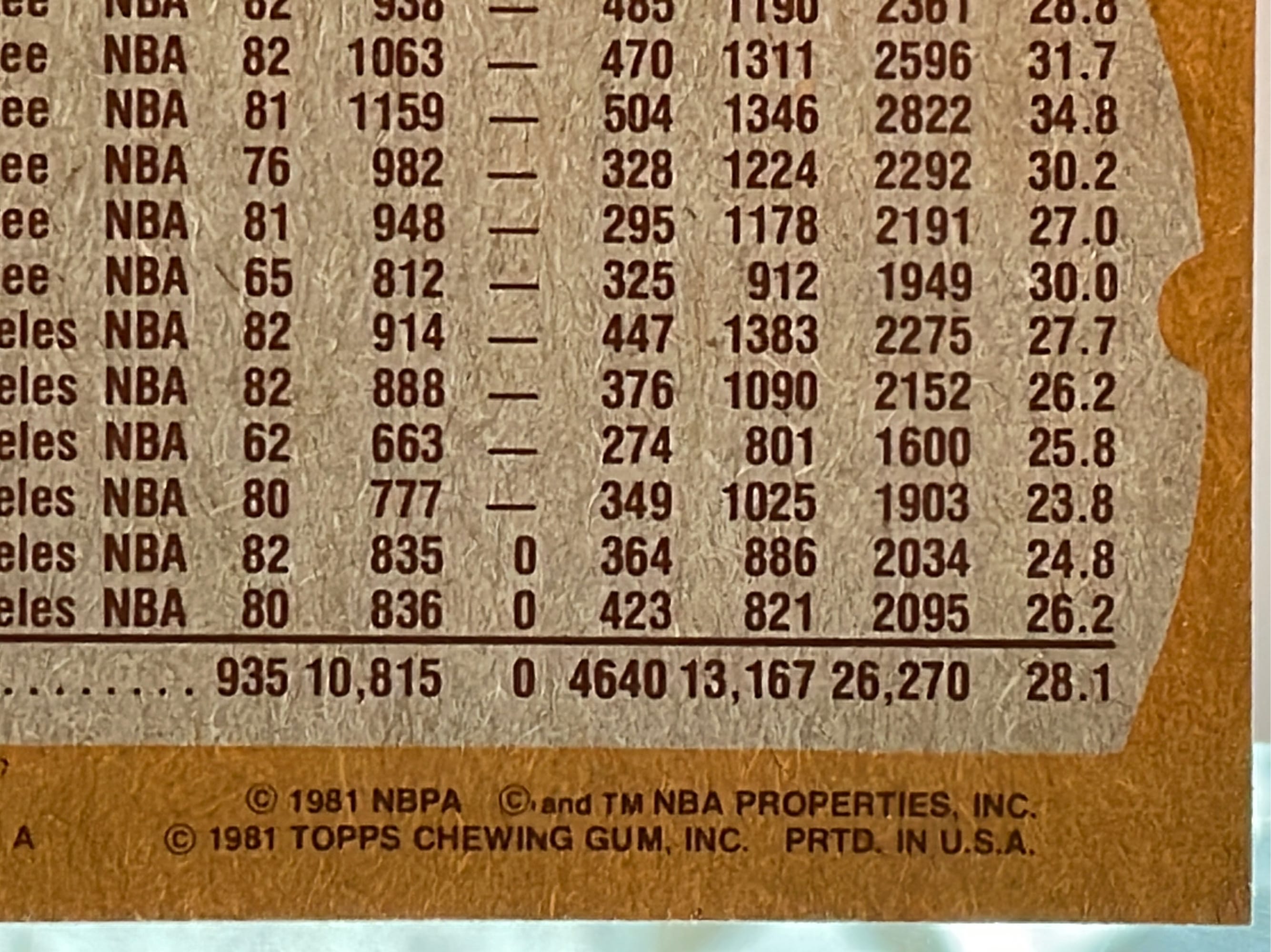 105 (1) Basketball Card: 1981 NBPA TOPPS Kareem Abdul-Jabbar