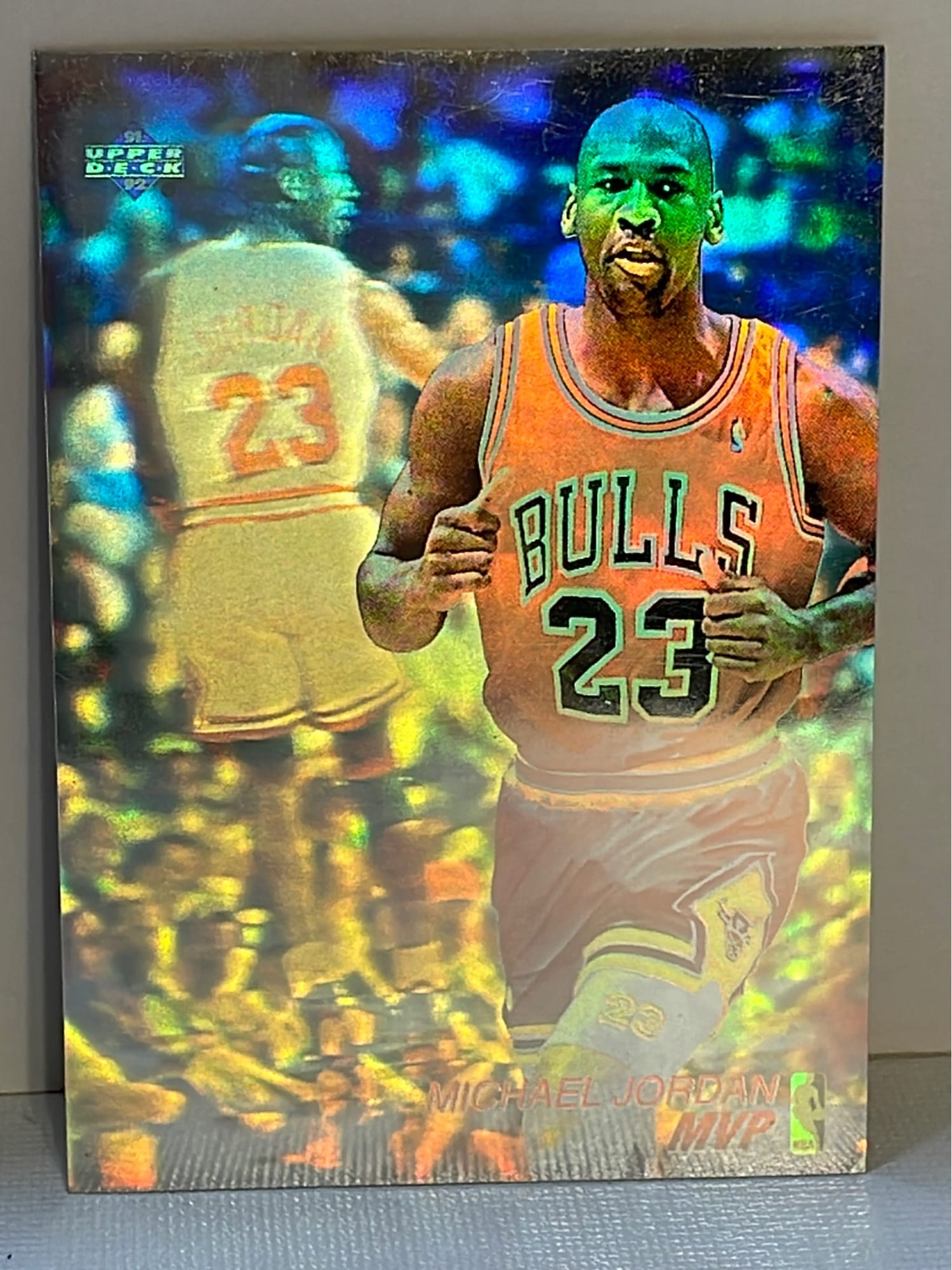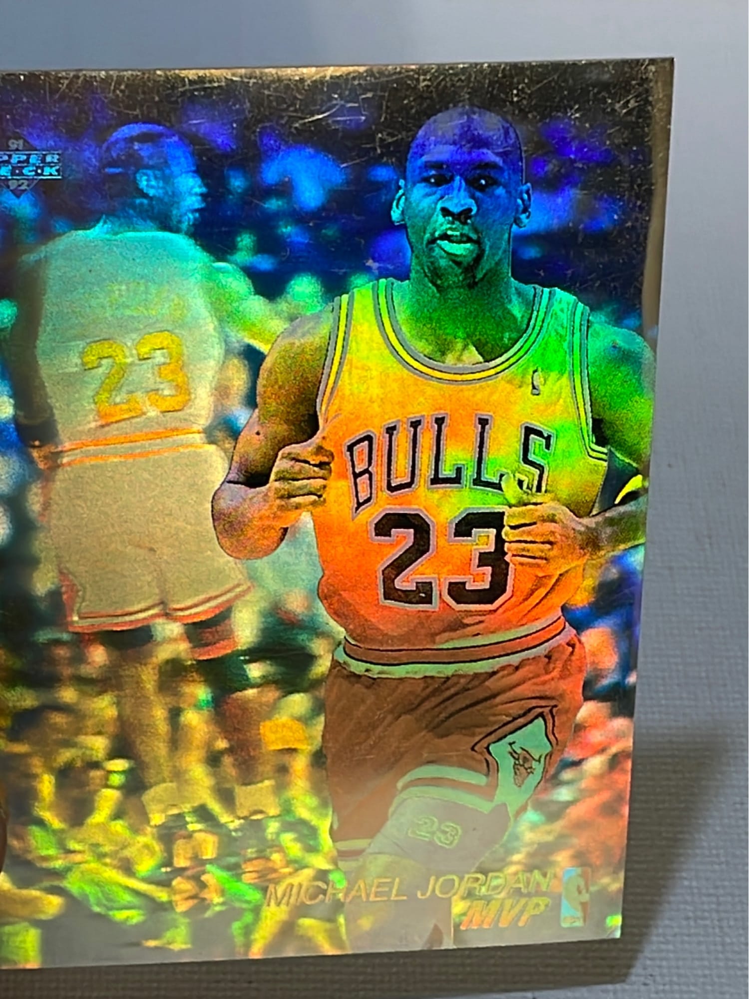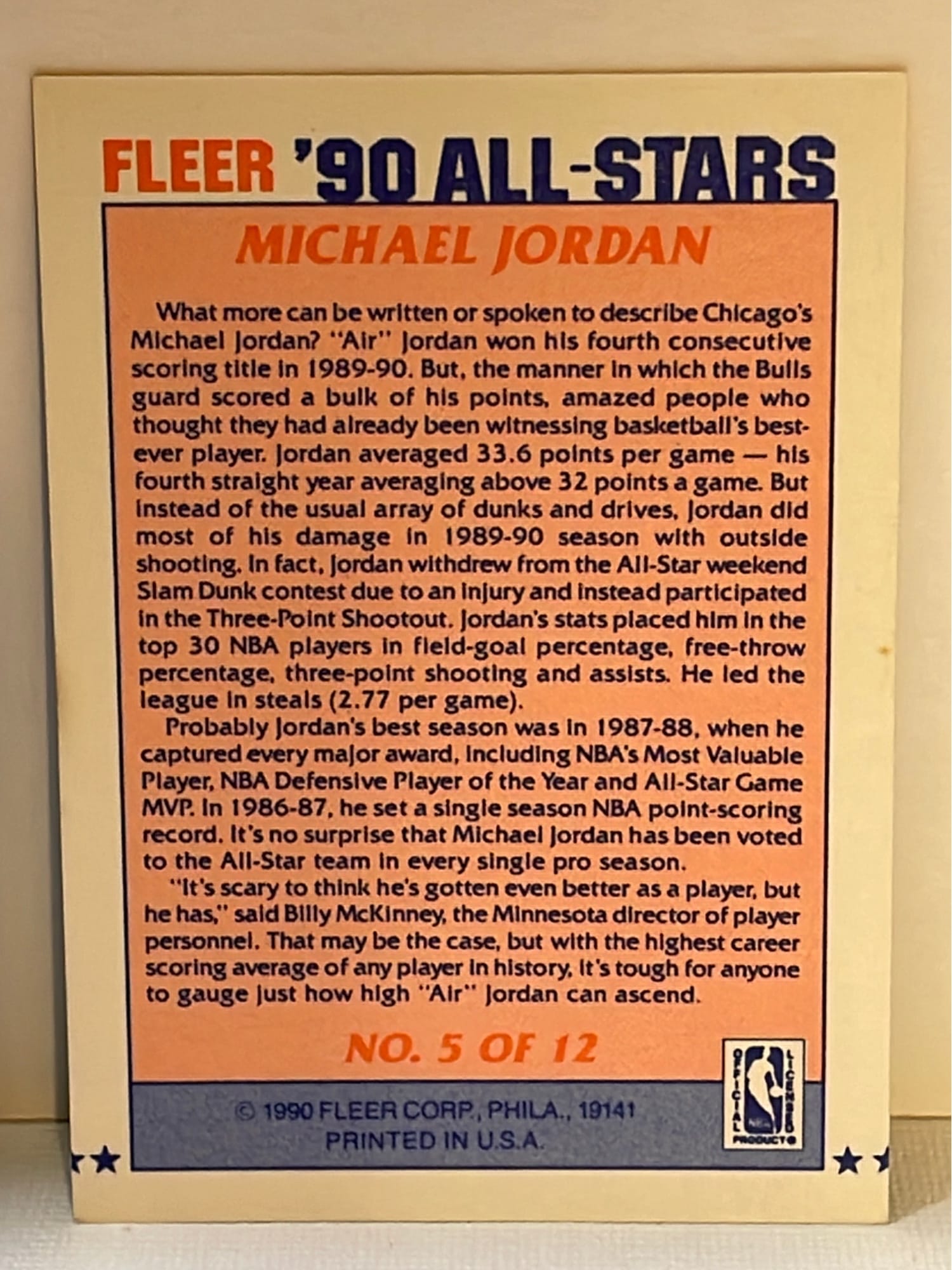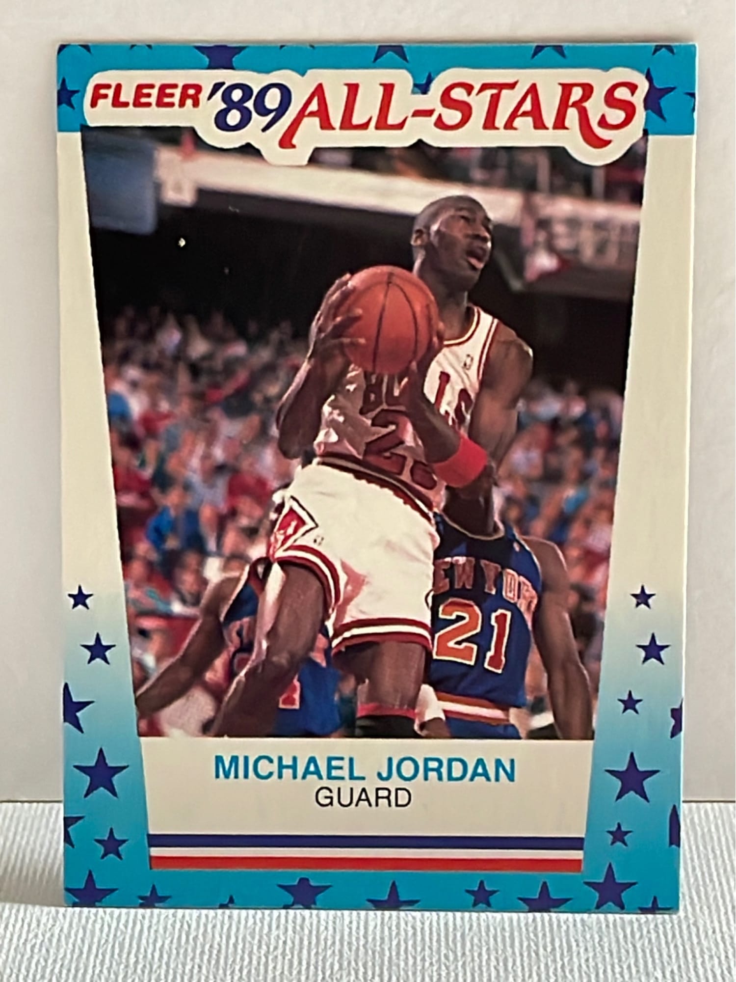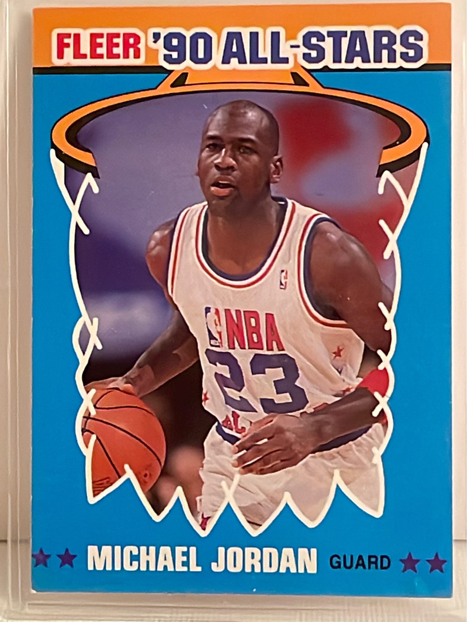107 (3) Michael Jordan Basketball Cards: Fleer ‘90 All-Stars No.5 of 12, SkyBox 1992 #31, Upper Deck 1999 MVP with red metallic background