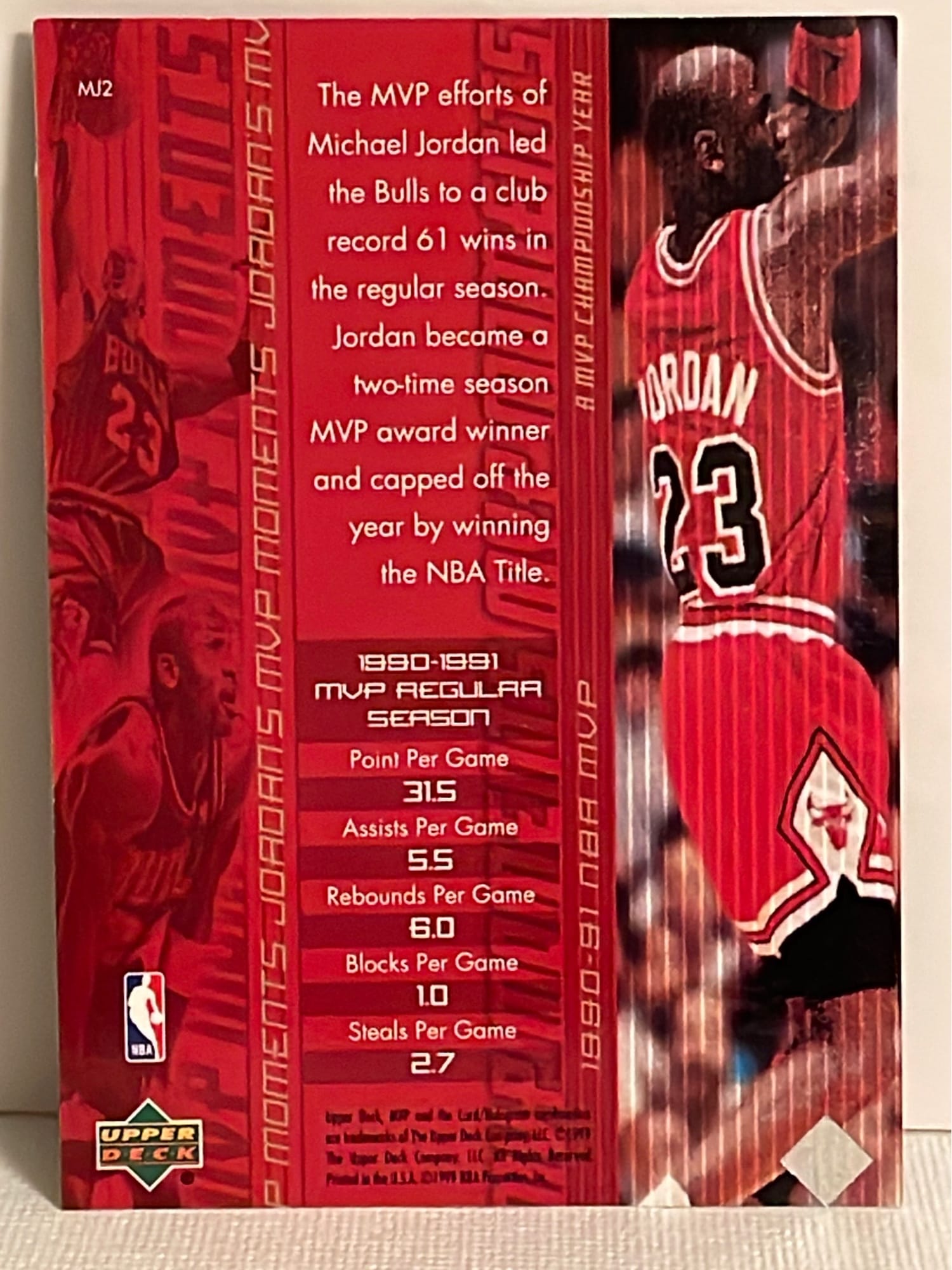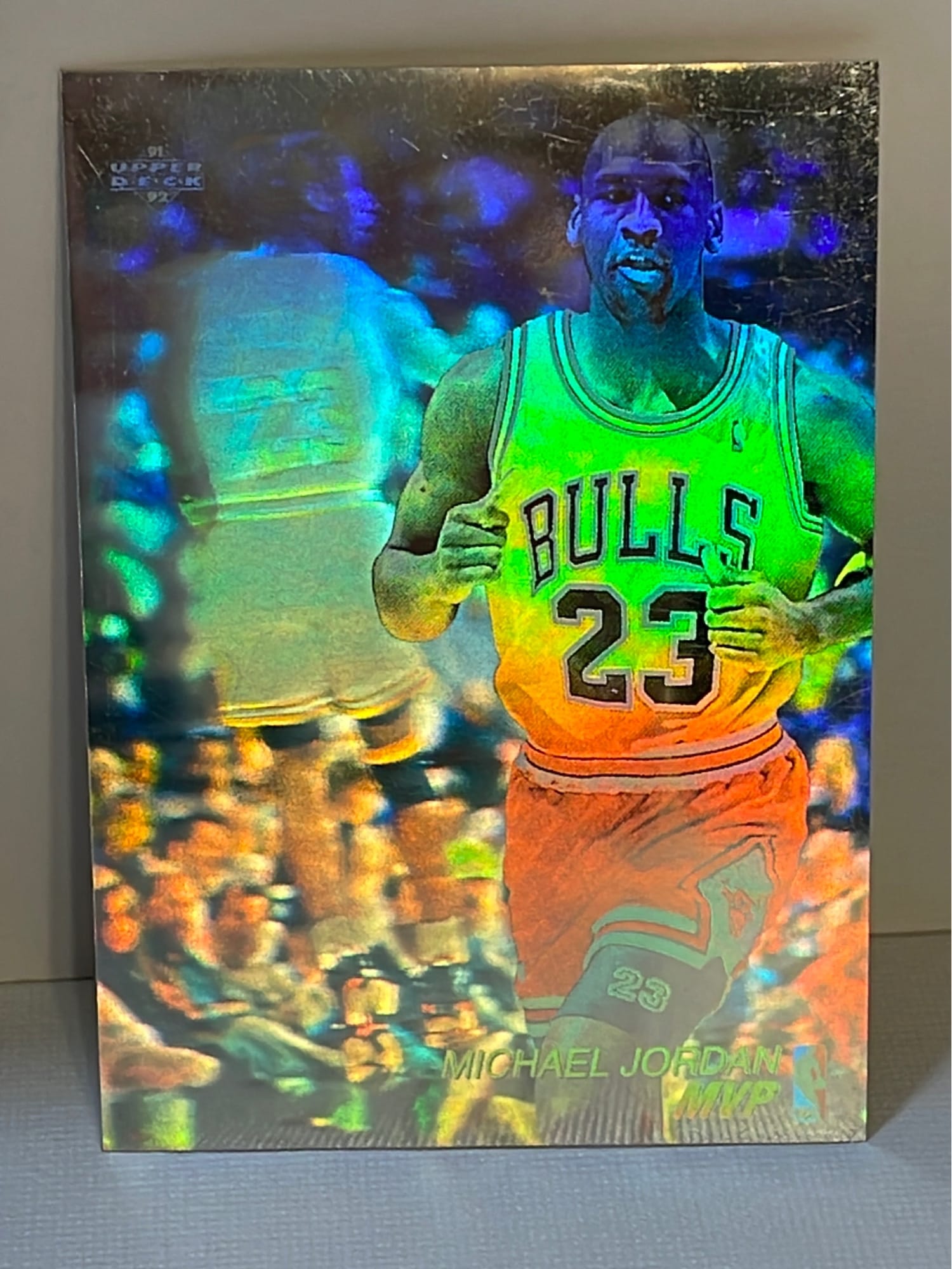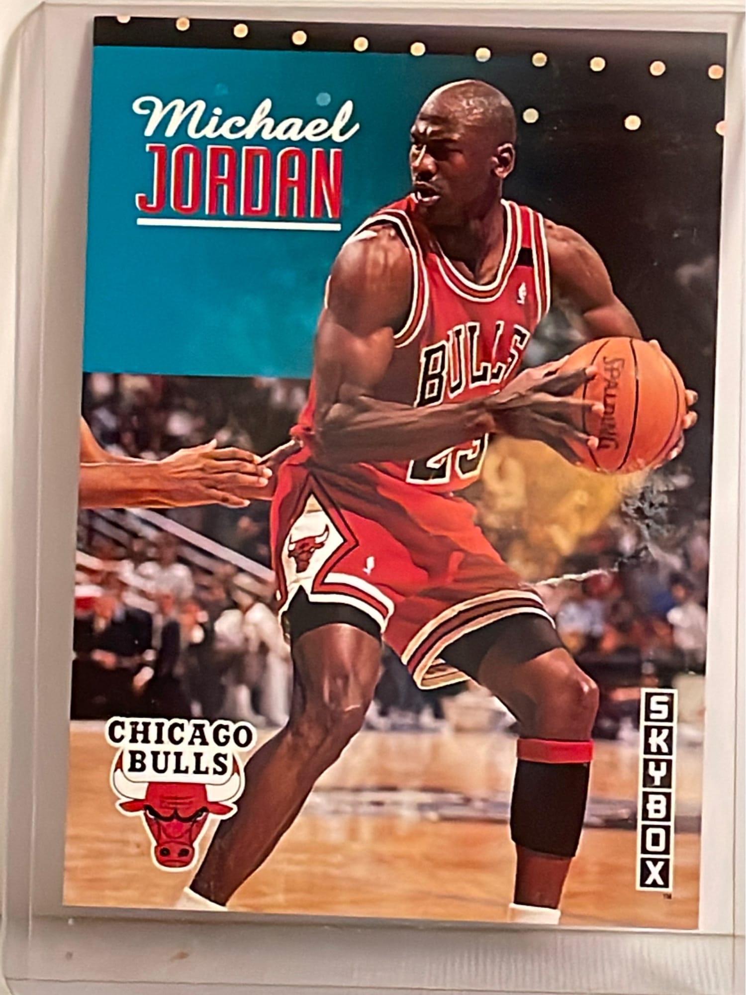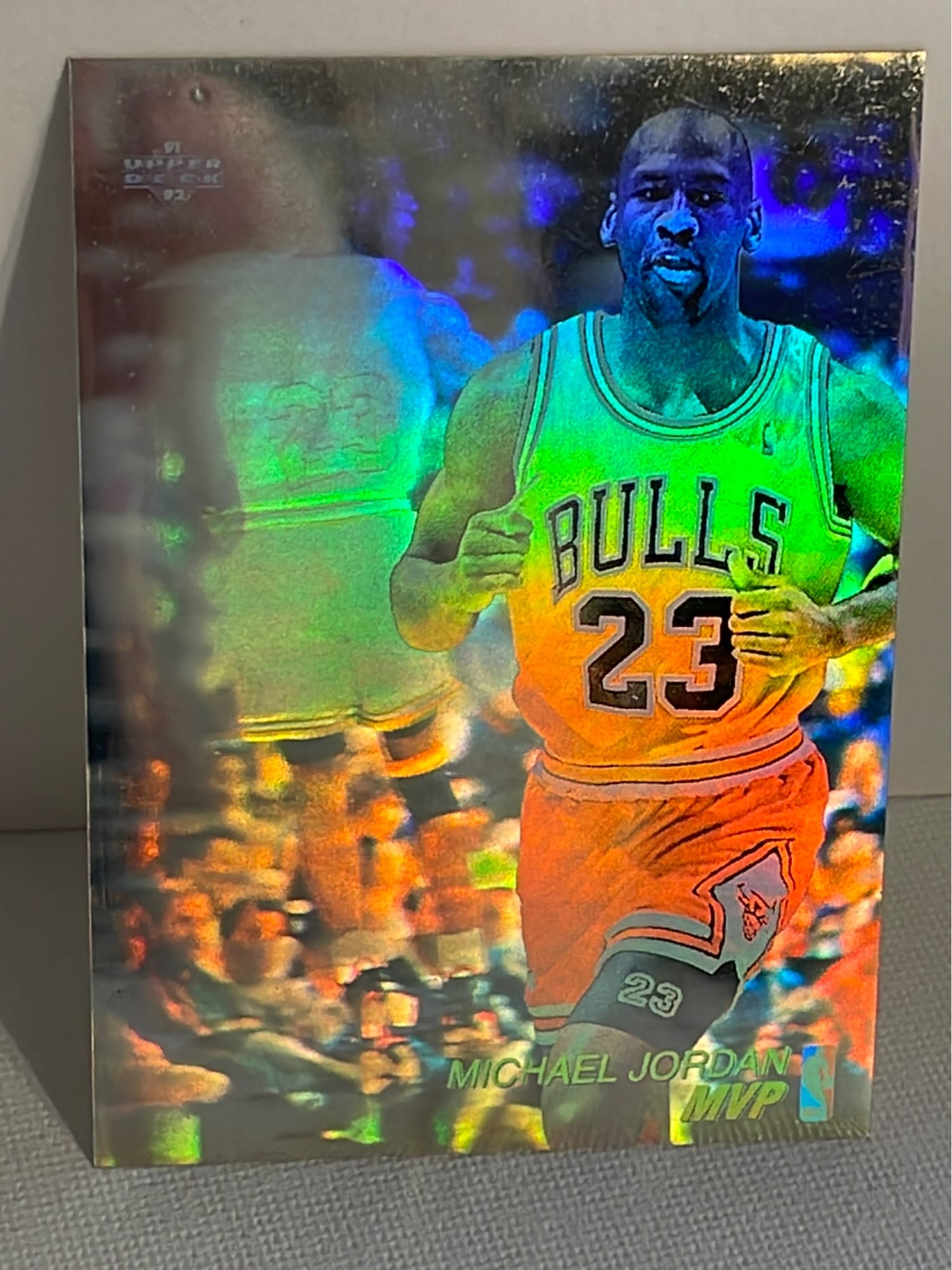 107 (3) Michael Jordan Basketball Cards: Fleer ‘90 All-Stars No.5 of 12, SkyBox 1992 #31, Upper Deck 1999 MVP with red metallic background