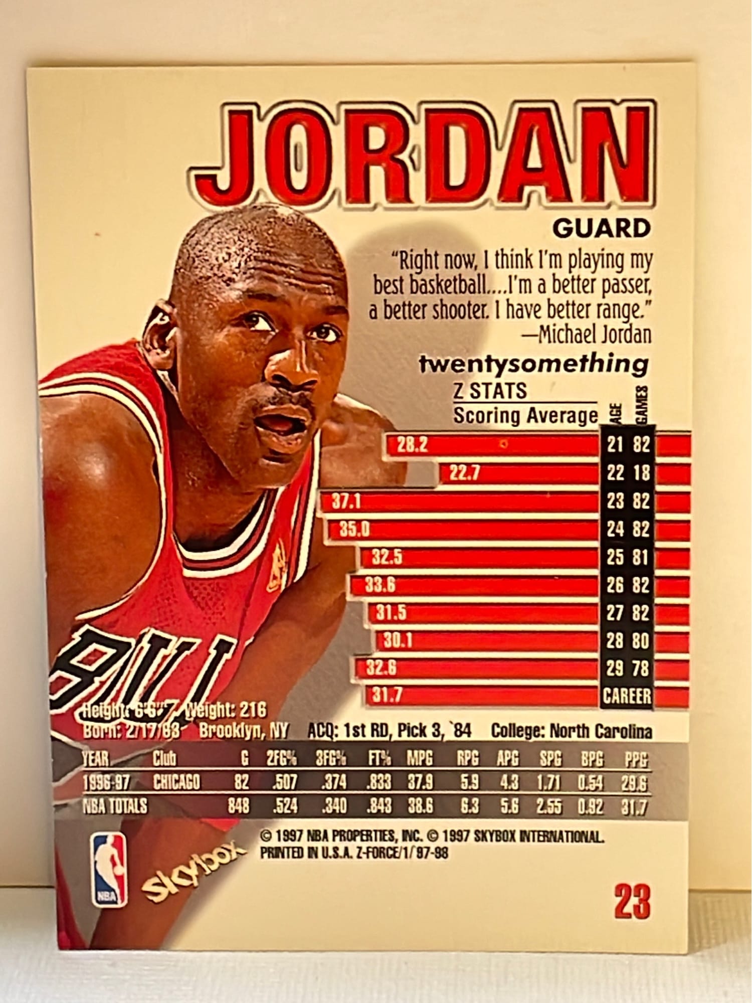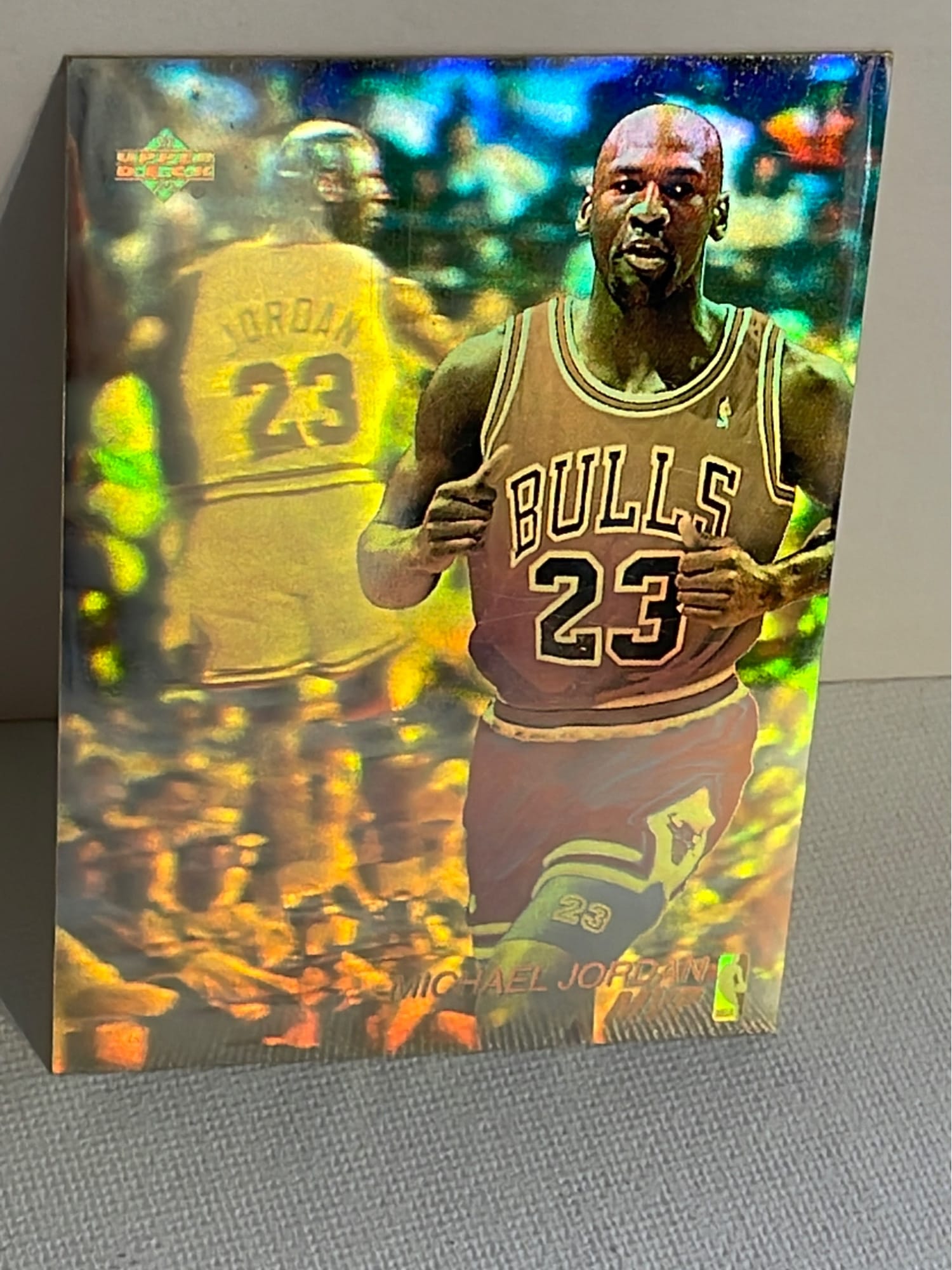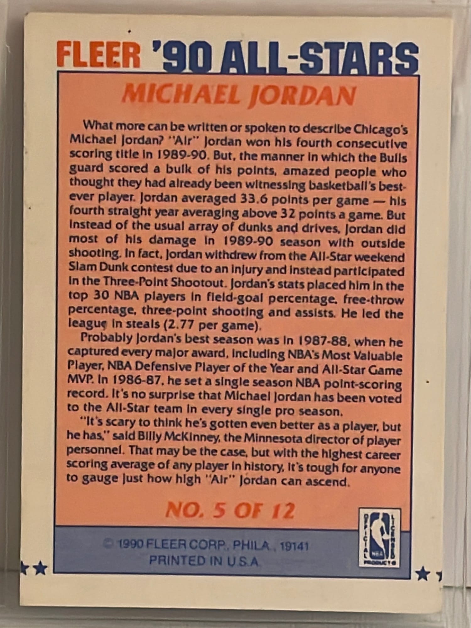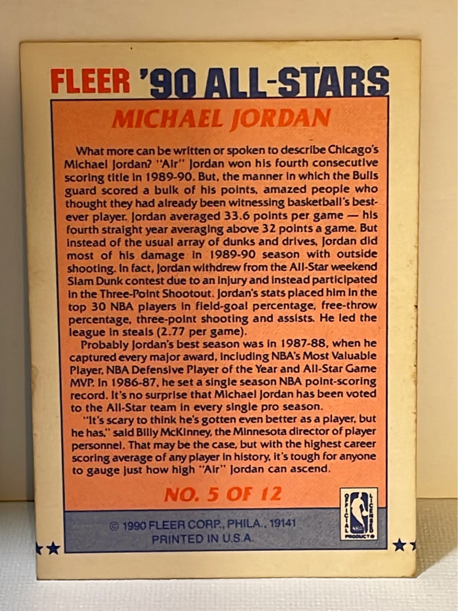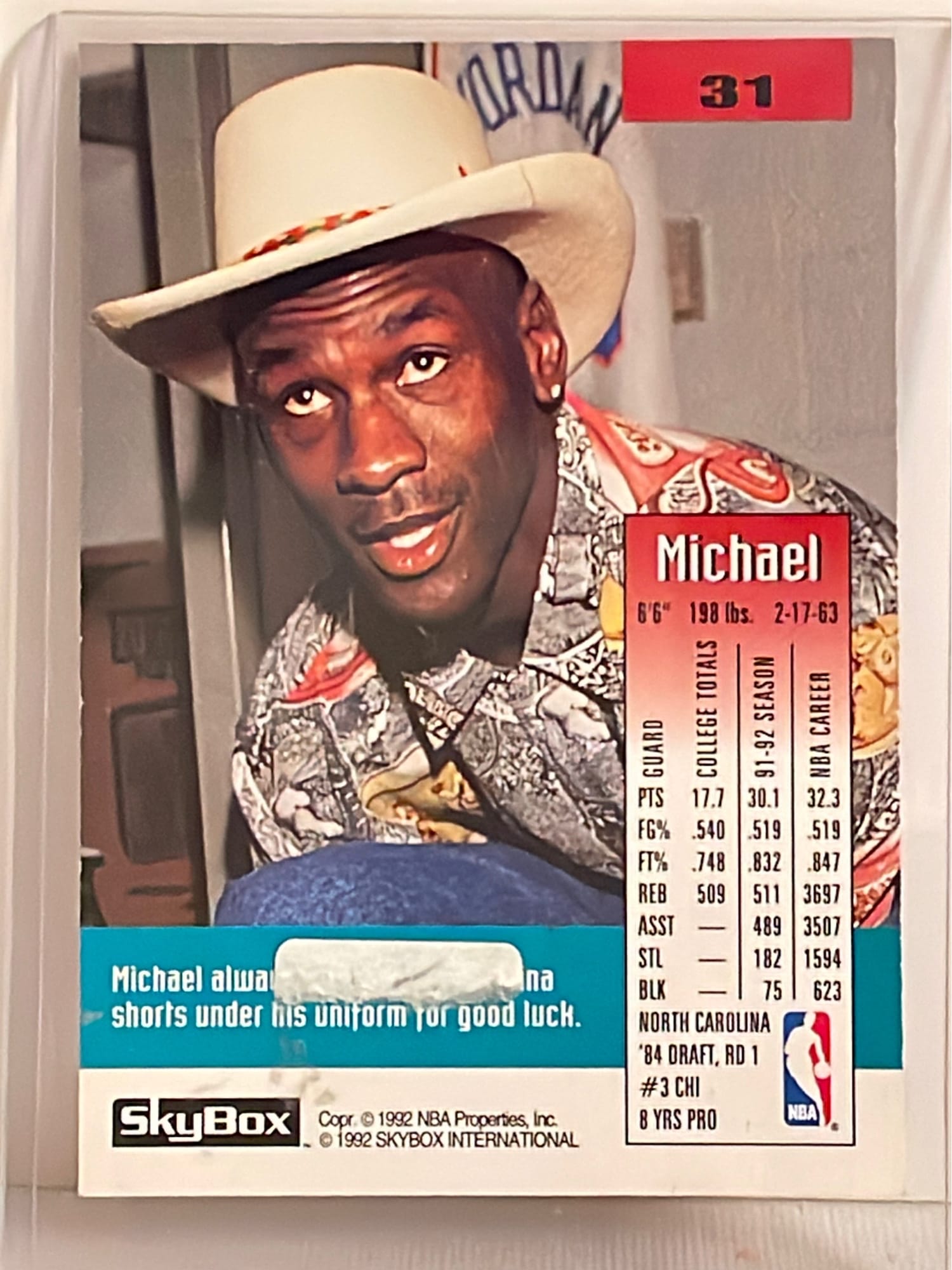 107 (3) Michael Jordan Basketball Cards: Fleer ‘90 All-Stars No.5 of 12, SkyBox 1992 #31, Upper Deck 1999 MVP with red metallic background
