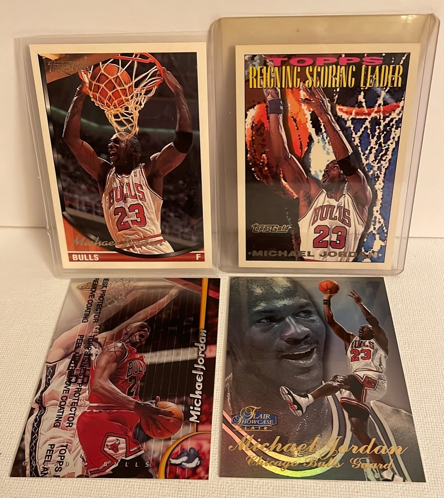 109 (4) - Michael Jordan Basketball Cards: Topps 1993, Topps Gold 1994 #384, Topps 1998 #81, Fleer 1998 Showcase Flair