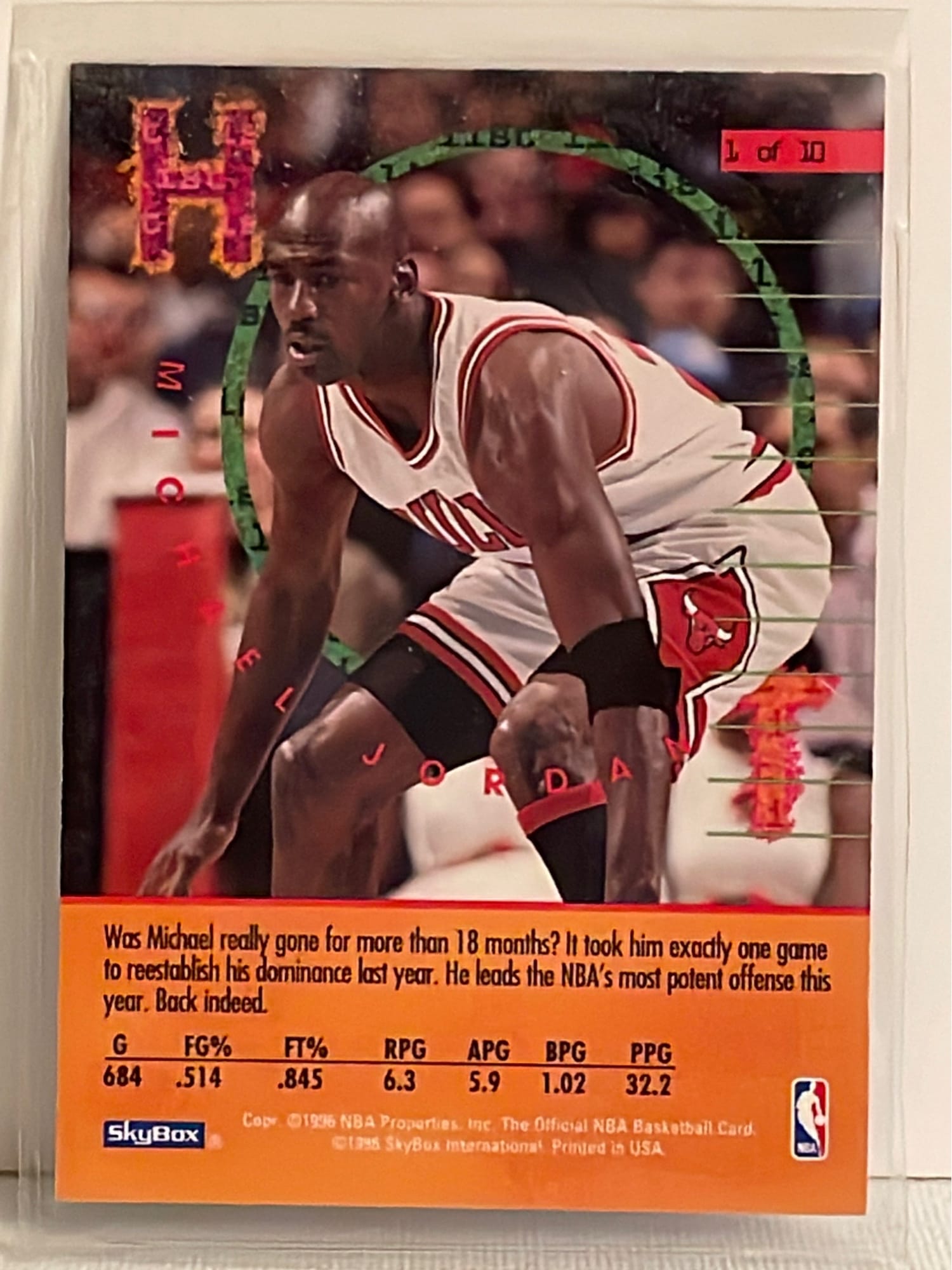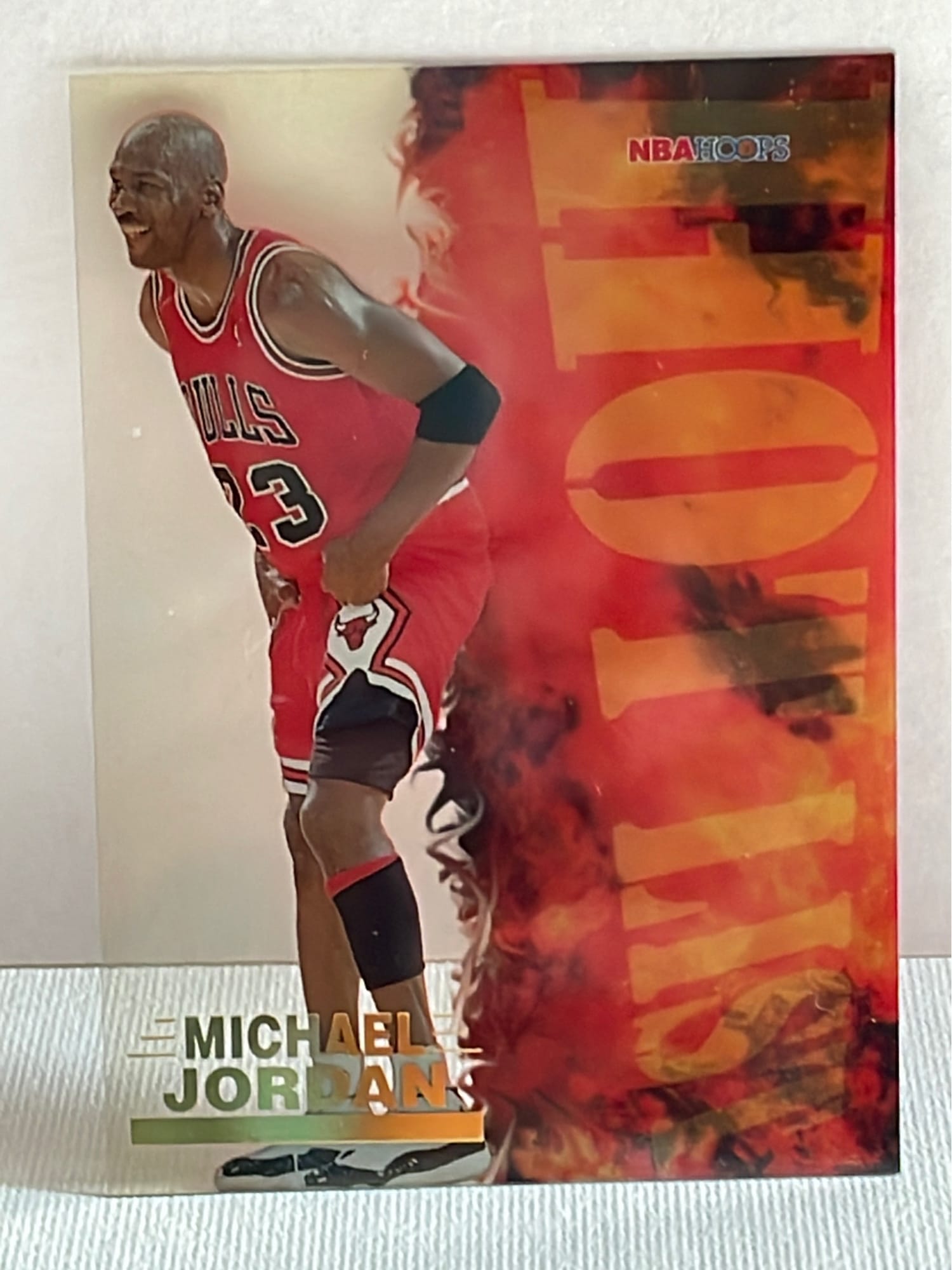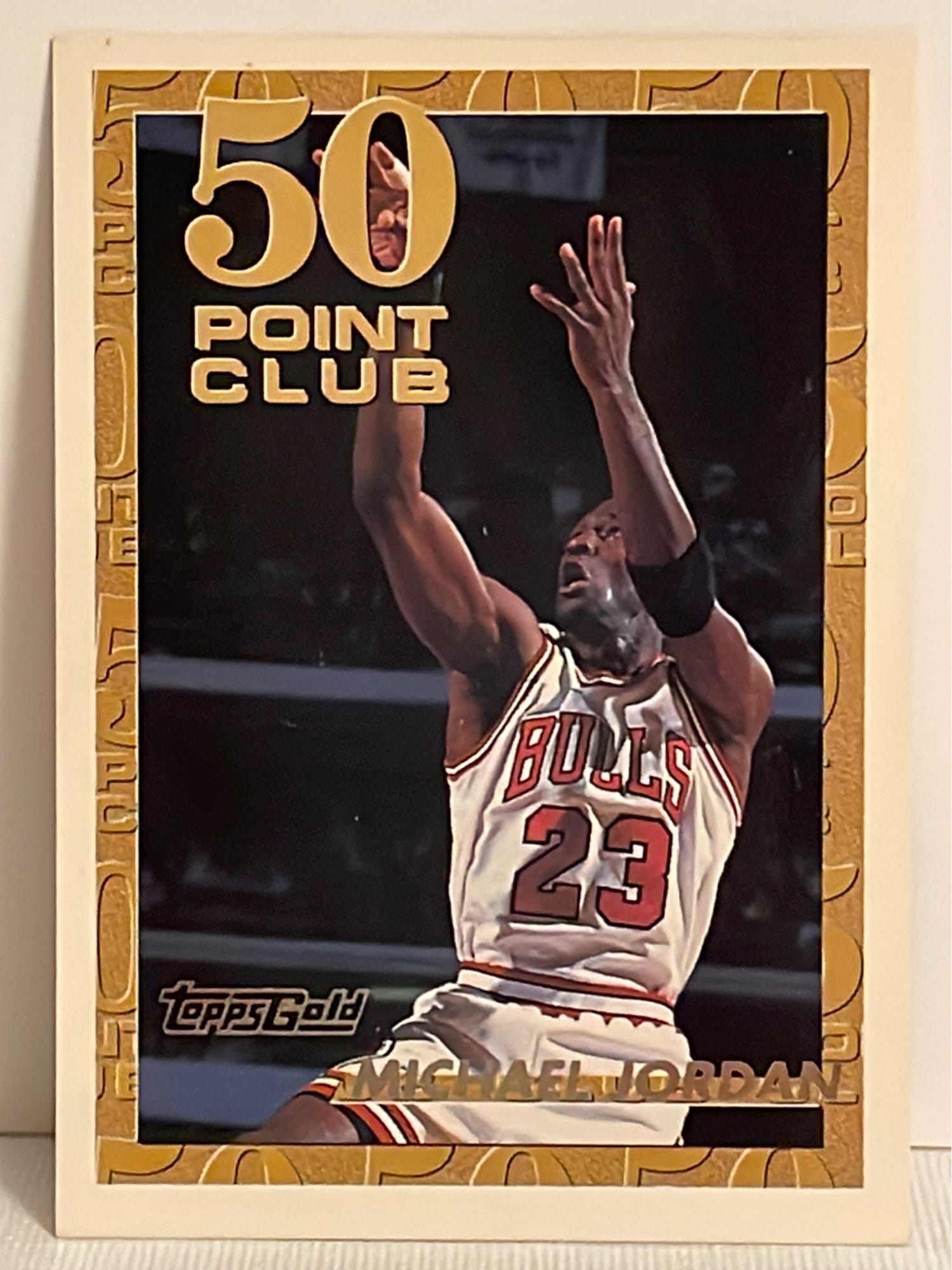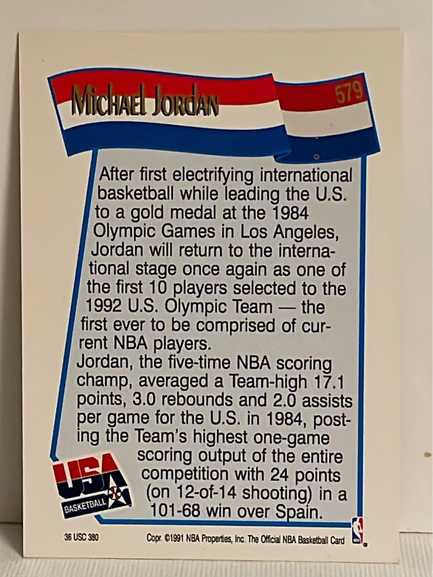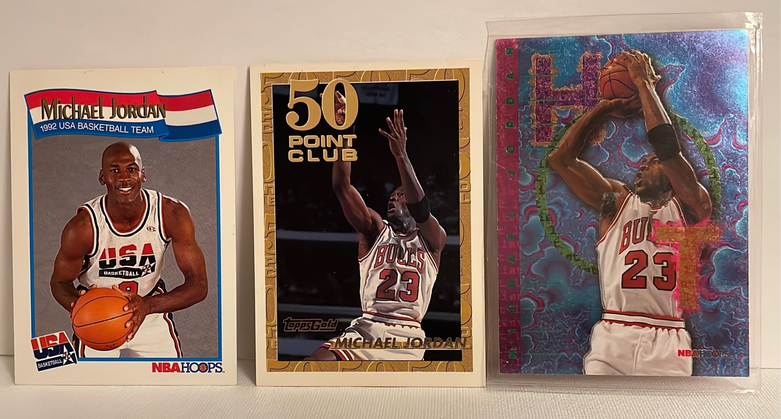110 (3) Michael Jordan Basketball Cards: NBA HOOPS 1992 USA Team #579, 1993 Topps Gold 50 Point Club #64, 1996 SkyBox “HOT” NBA HOOPS 1 of 10