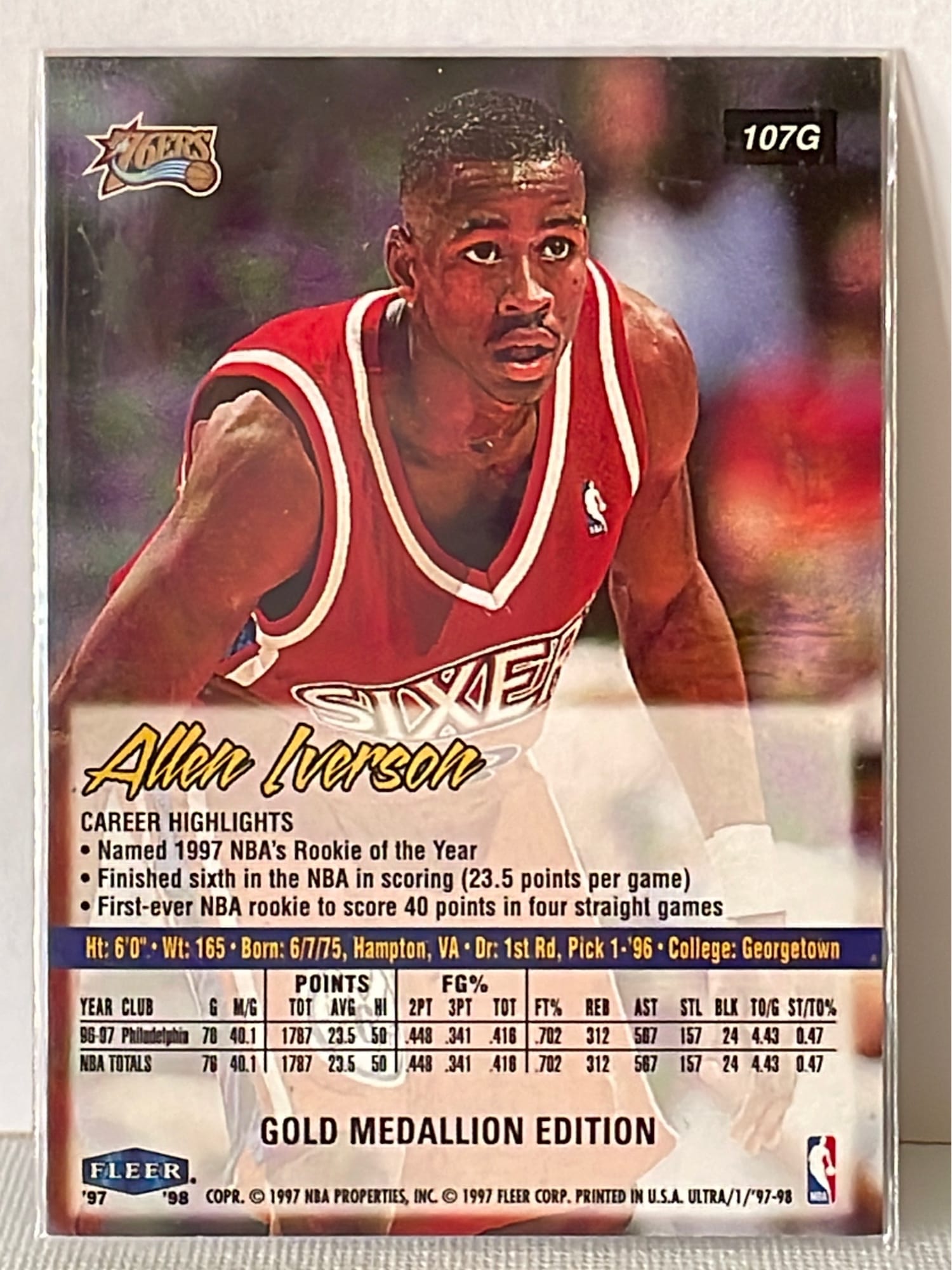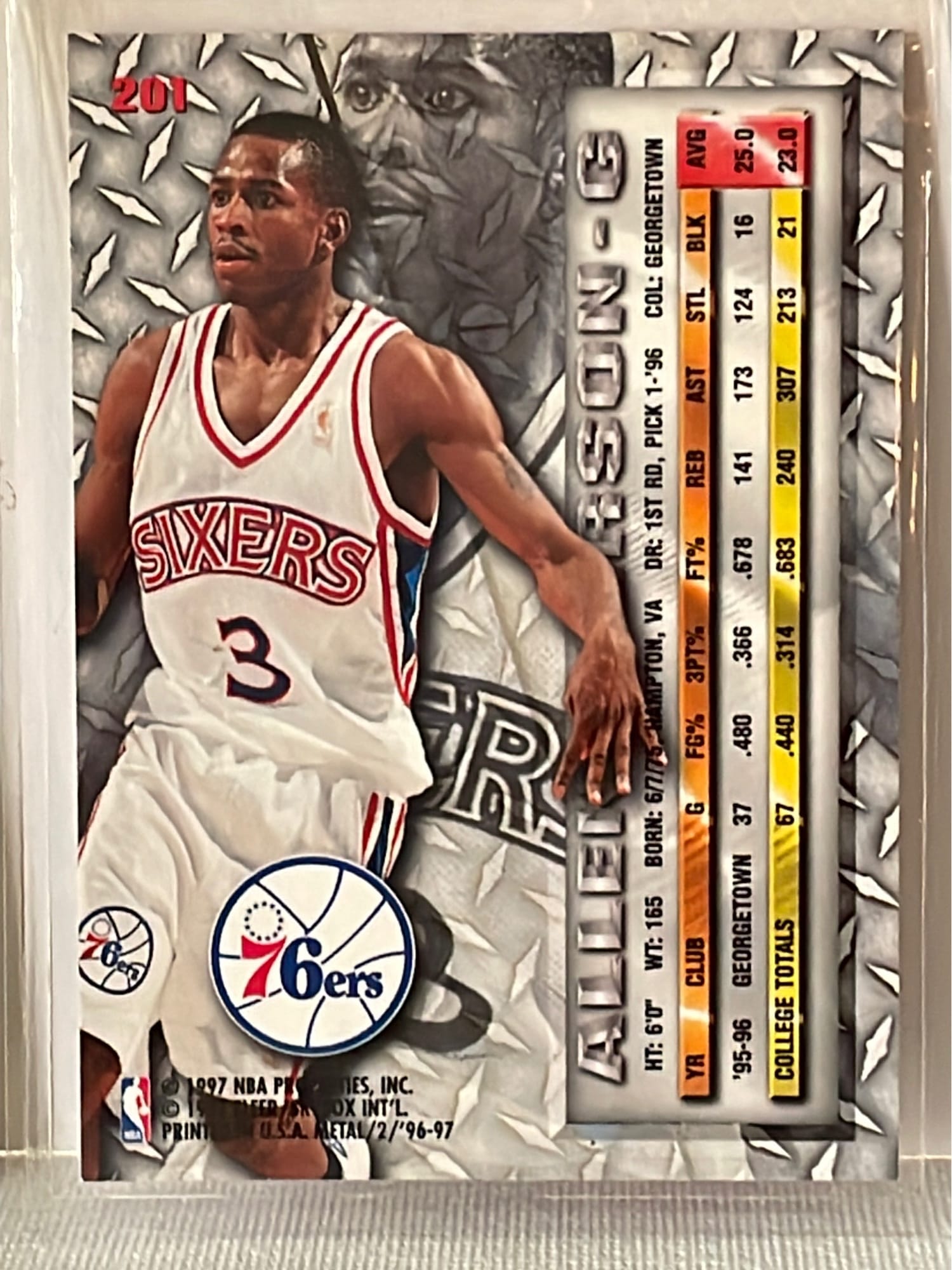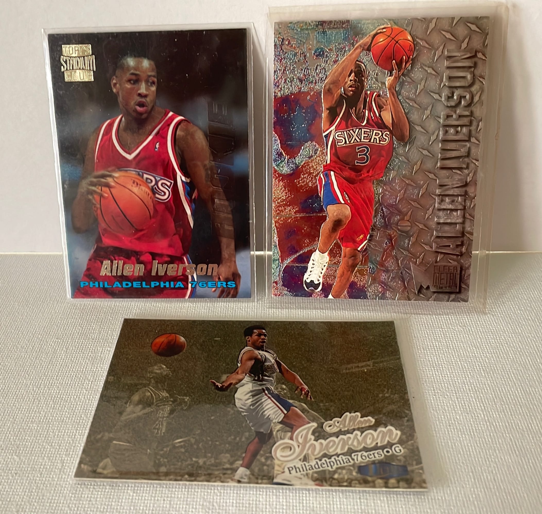 111 (3) Allen Iverson Basketball Cards: Topps 1996 ROOKIE, Fleer Metal ‘96-97 #201, Fleer Ultra Gold Medallion Edition 97’-98’ #107G