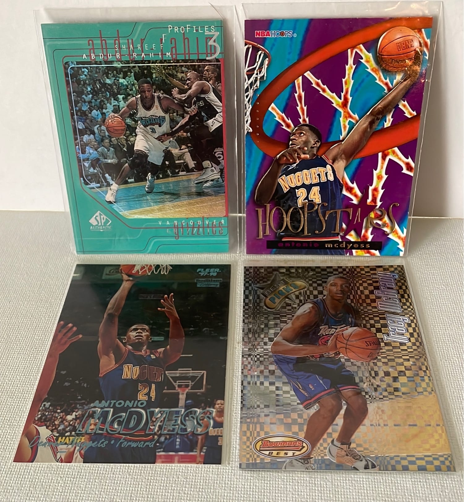 113 (4) Basketball Cards: 1996 Skybox HoopStars Antonio Mcdyess, '97-'98 Fleer Antonio Mcdyess #24, '96-'97 Upper Deck Profiles Shareef Abdul-Rahim P26, Topps 1998 Best Picks Tracy McGrady BP4
