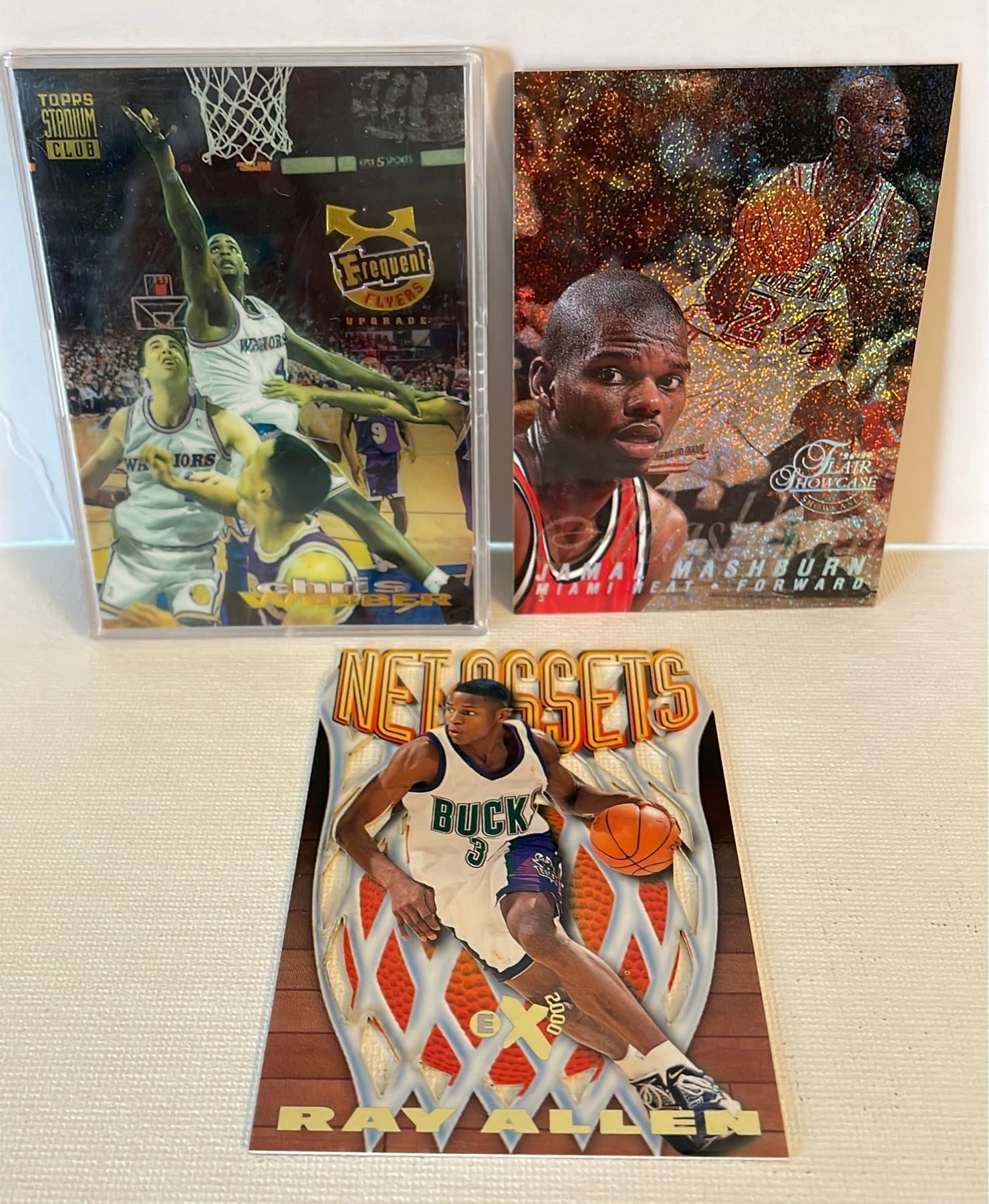 114 (3) Basketball Cards: '92-'93 Topps Stadium Club Frequent Flyers Chris Weber, 1997 SkyBox Net Assets Ray Allen (1 of 20), 1997 Fleer Flair Showcase Jamal Mashburn