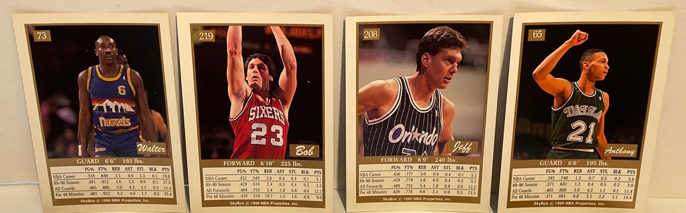 115 (4) 1990 SkyBox Basketball cards: Kempton #76, Thornton #219, Wennington #68, Jones #65