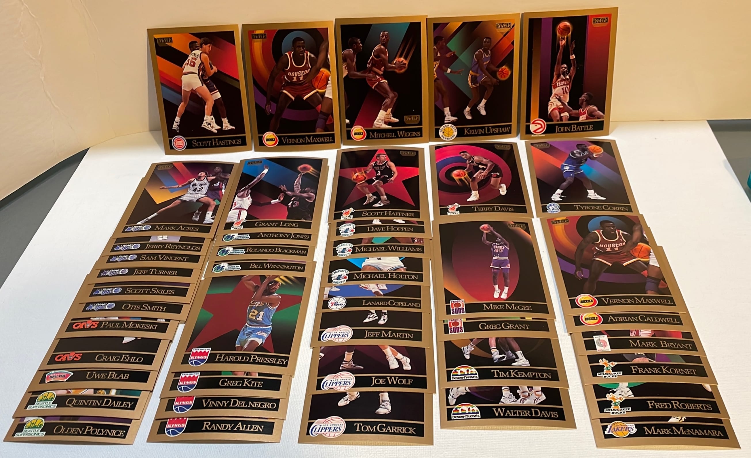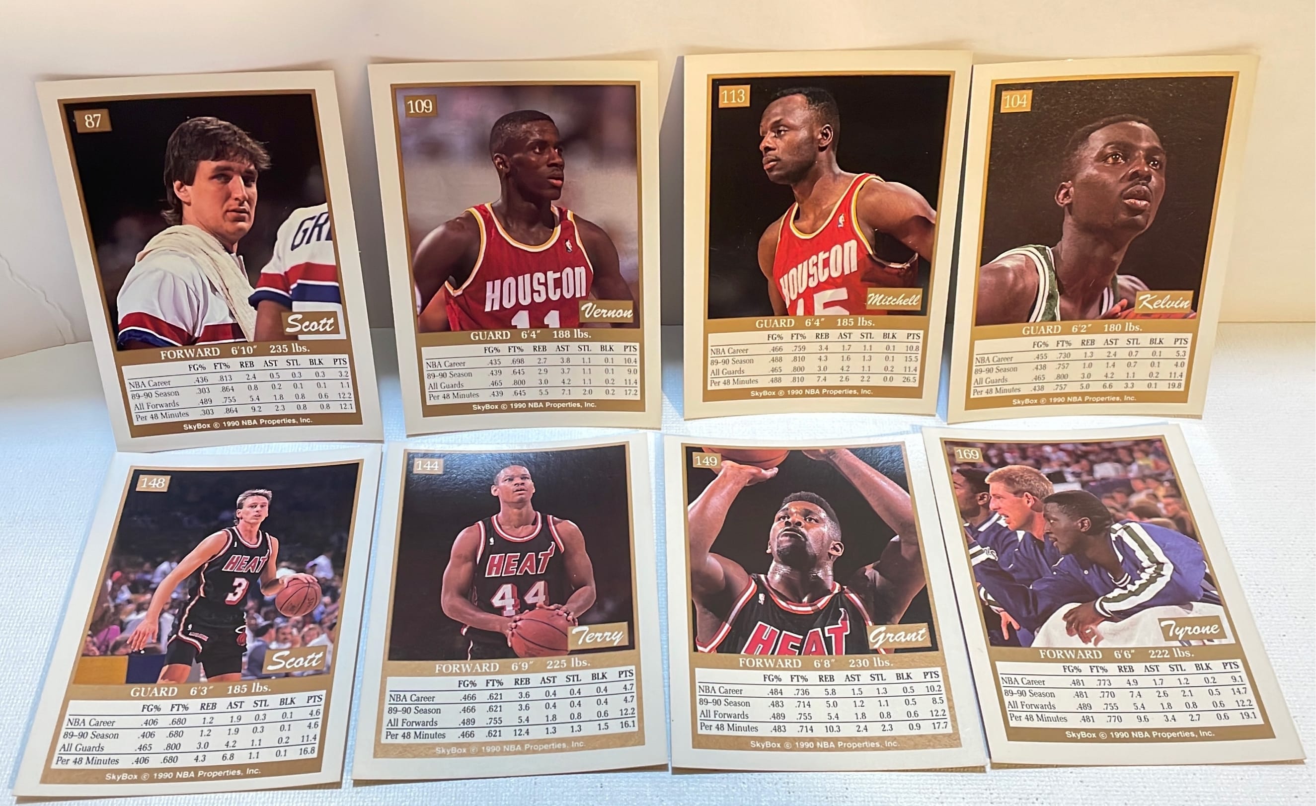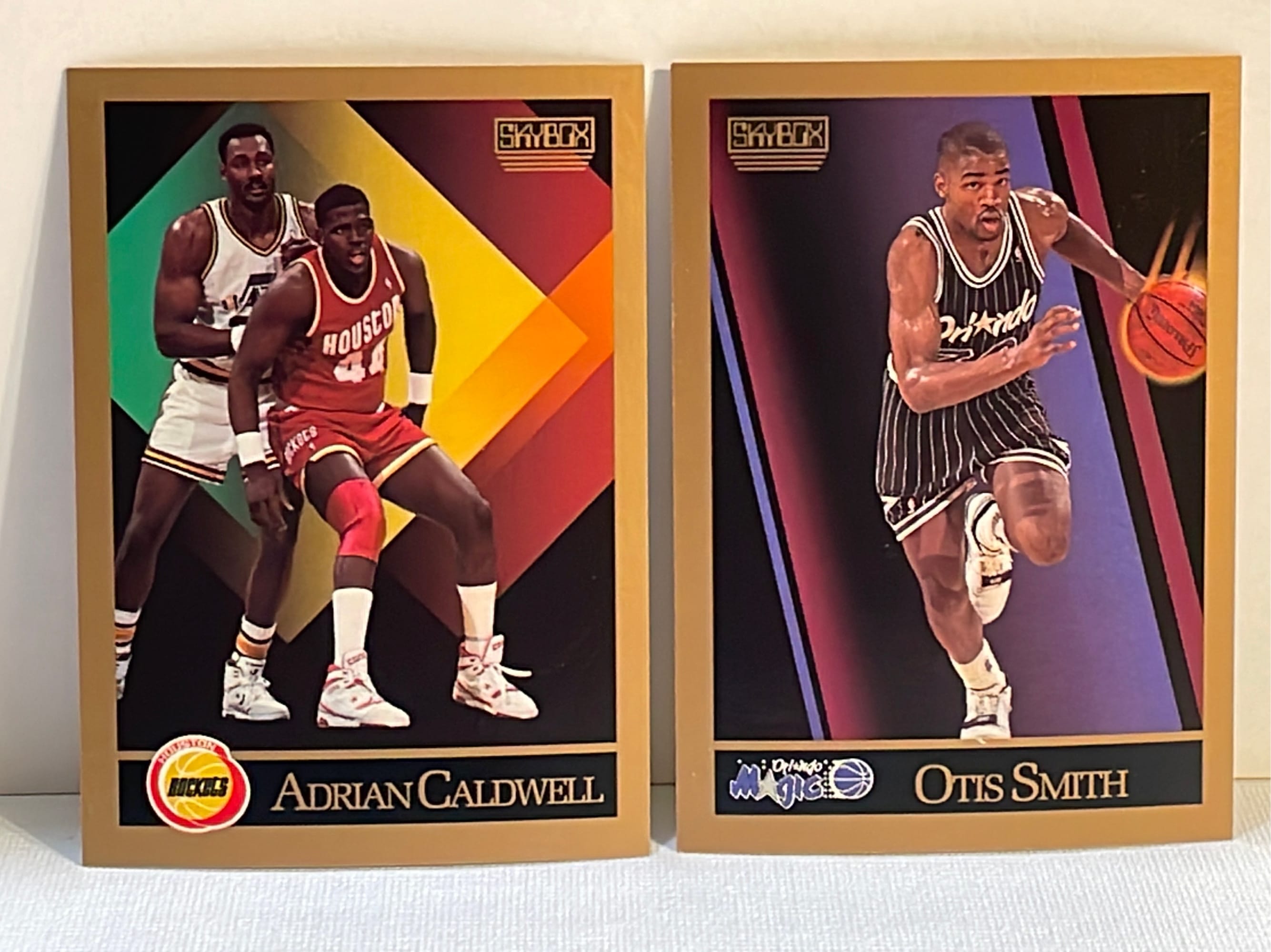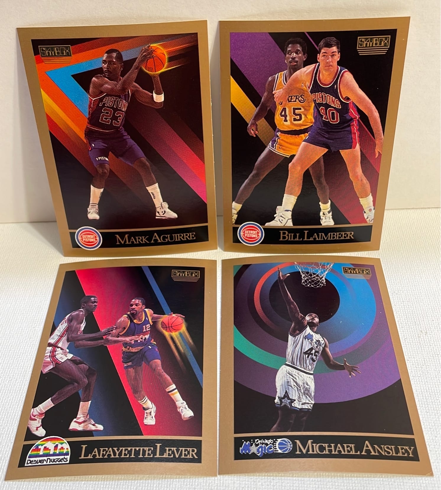 117 (44) 1990 SkyBox Basketball cards including players for the: Pistons, Rockets, Warriors, Hawks, O. Magic, Cavs, Spurs, Supersonics, Kings, Mavericks, Heat and more
