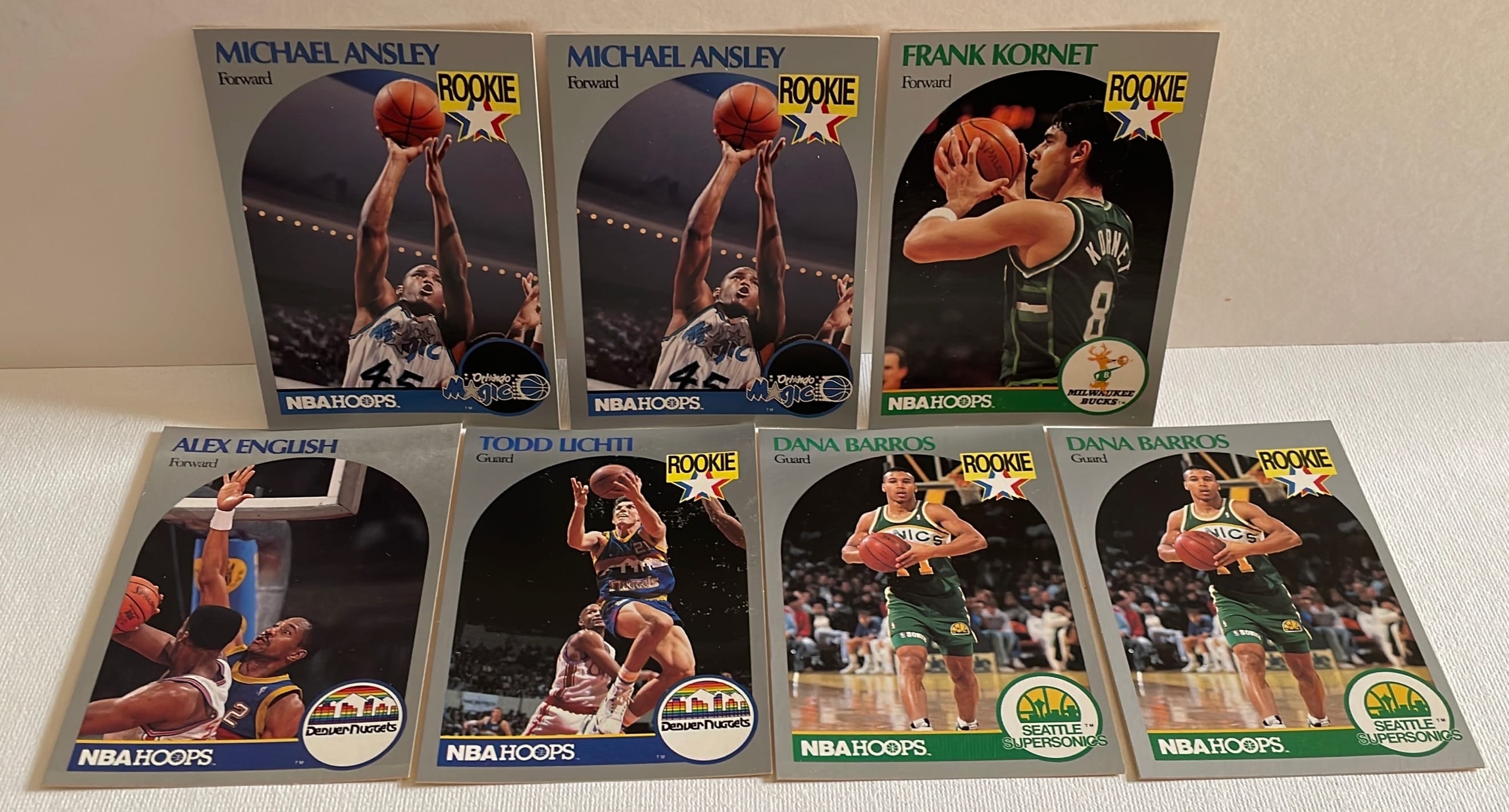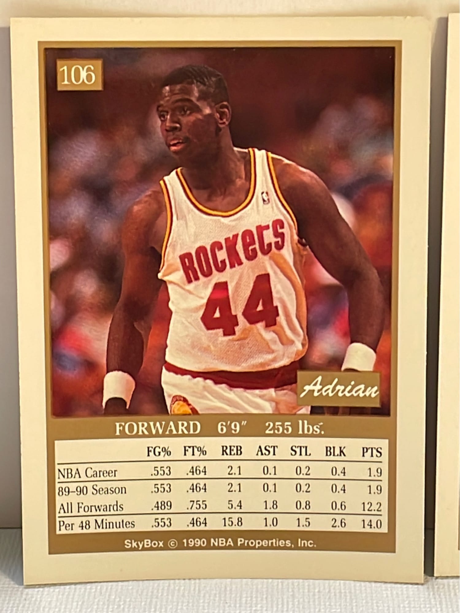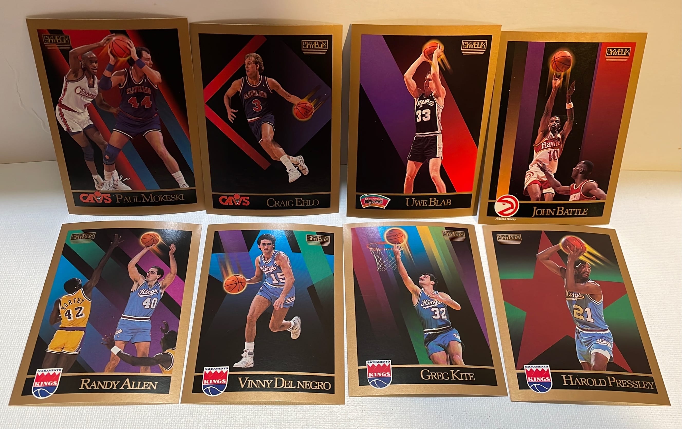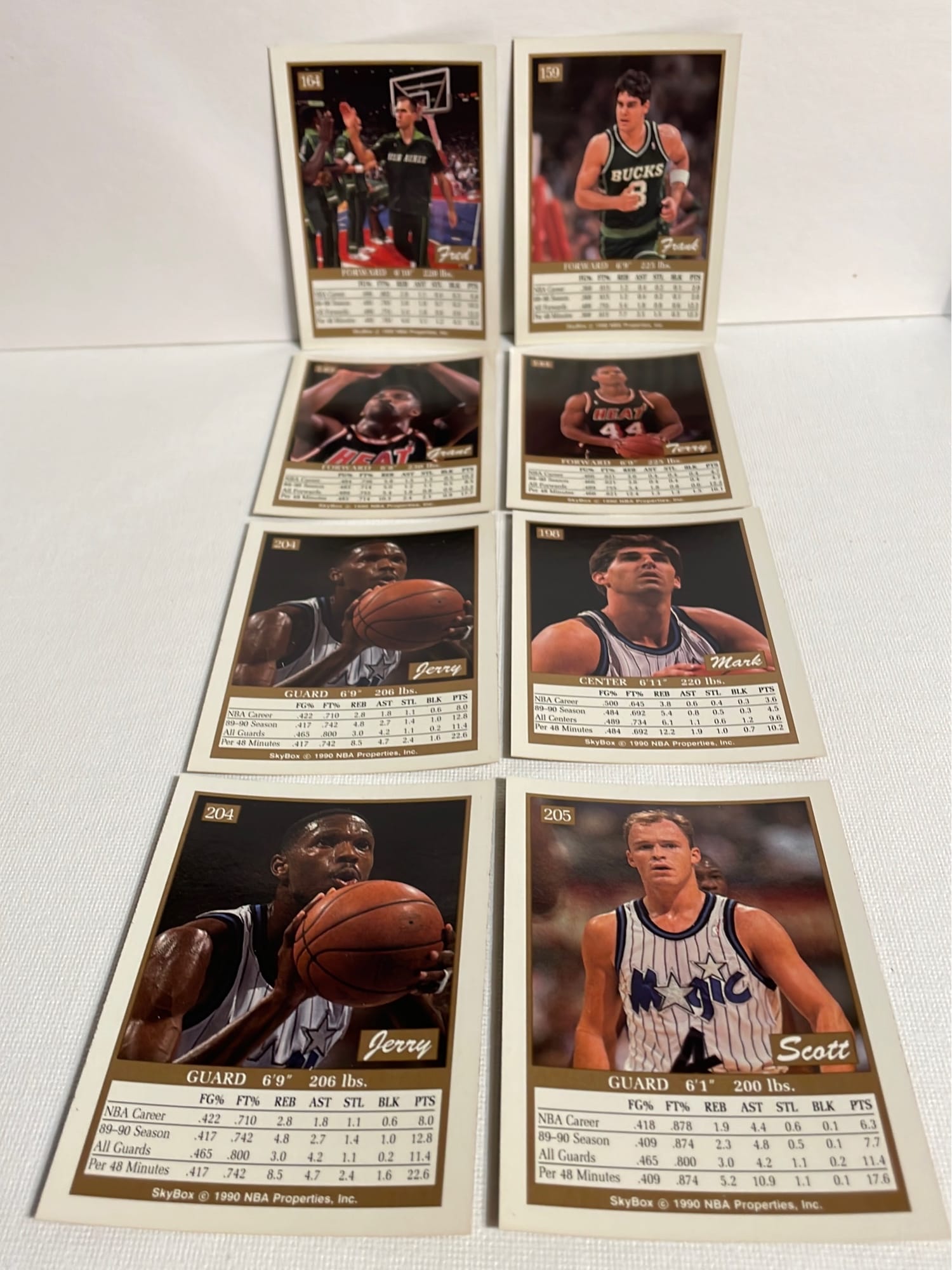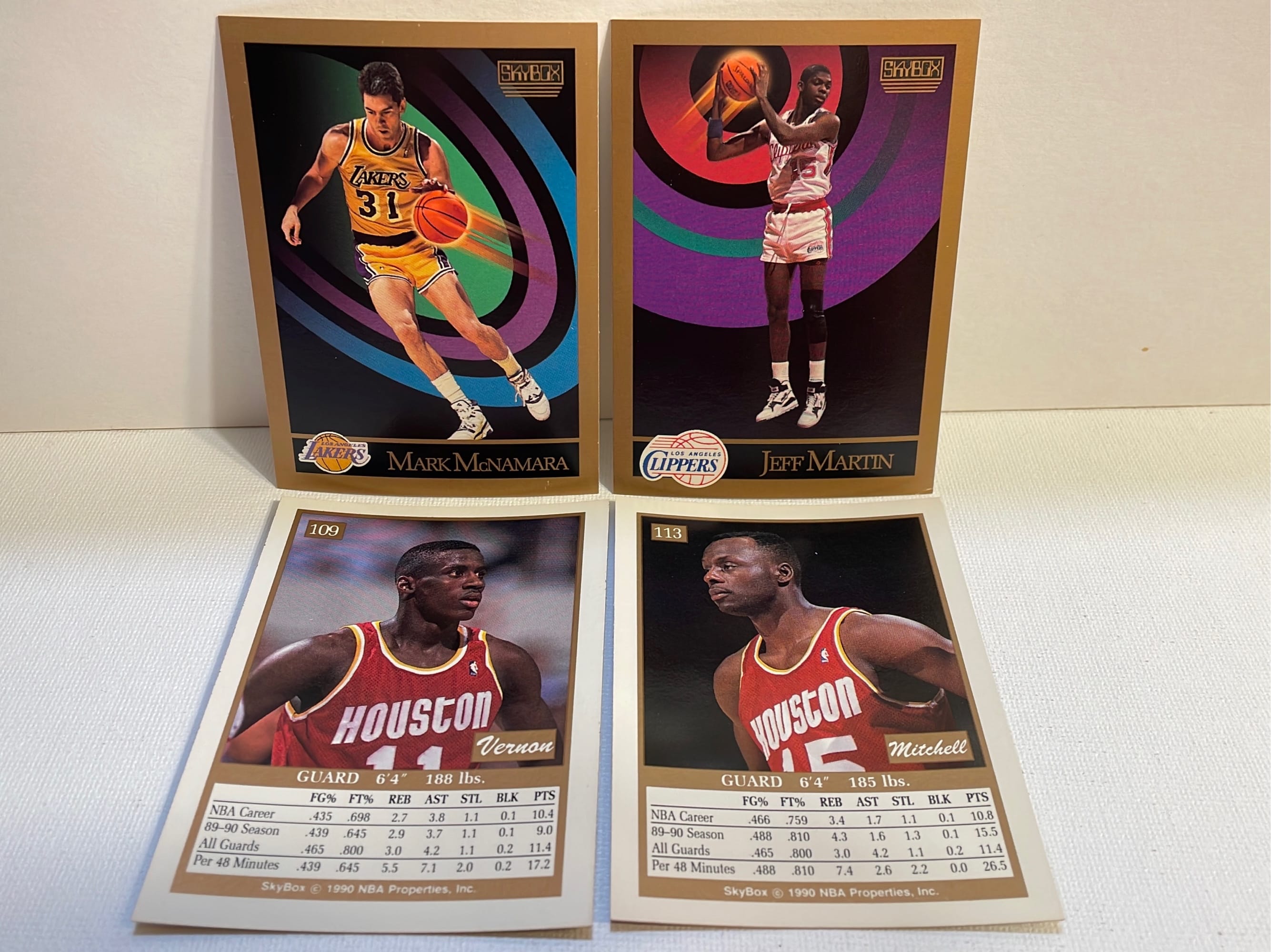 117 (44) 1990 SkyBox Basketball cards including players for the: Pistons, Rockets, Warriors, Hawks, O. Magic, Cavs, Spurs, Supersonics, Kings, Mavericks, Heat and more