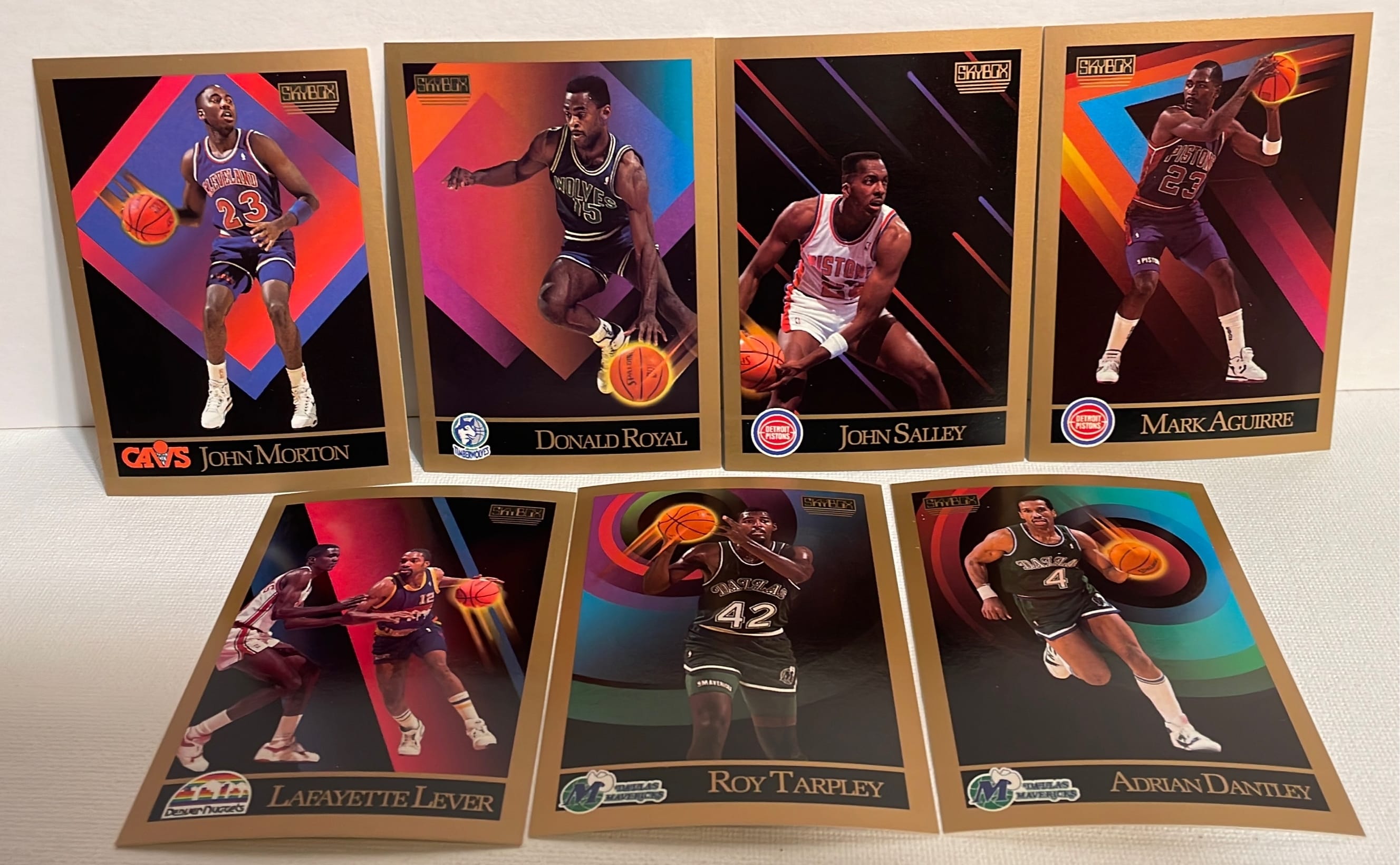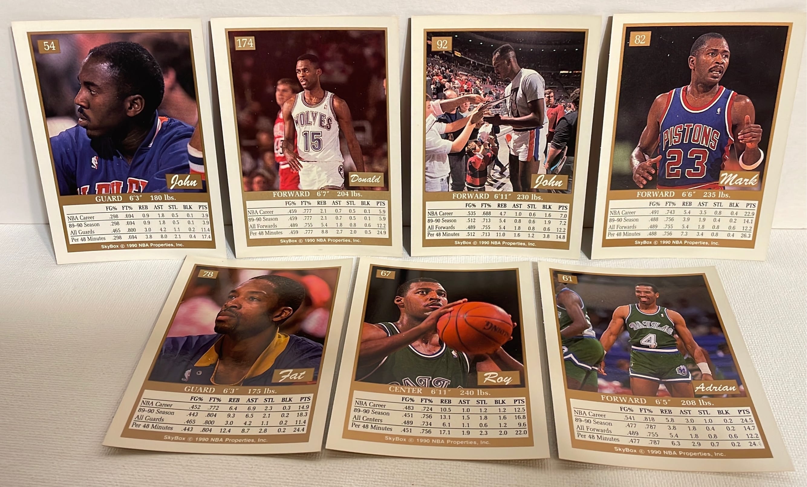 122 (7) 1990 SkyBox Basketball Cards: Morton #54, Royal #174, Salley #92, Aguirre #82, Lever #78, Tarpley #67, Dantley #61