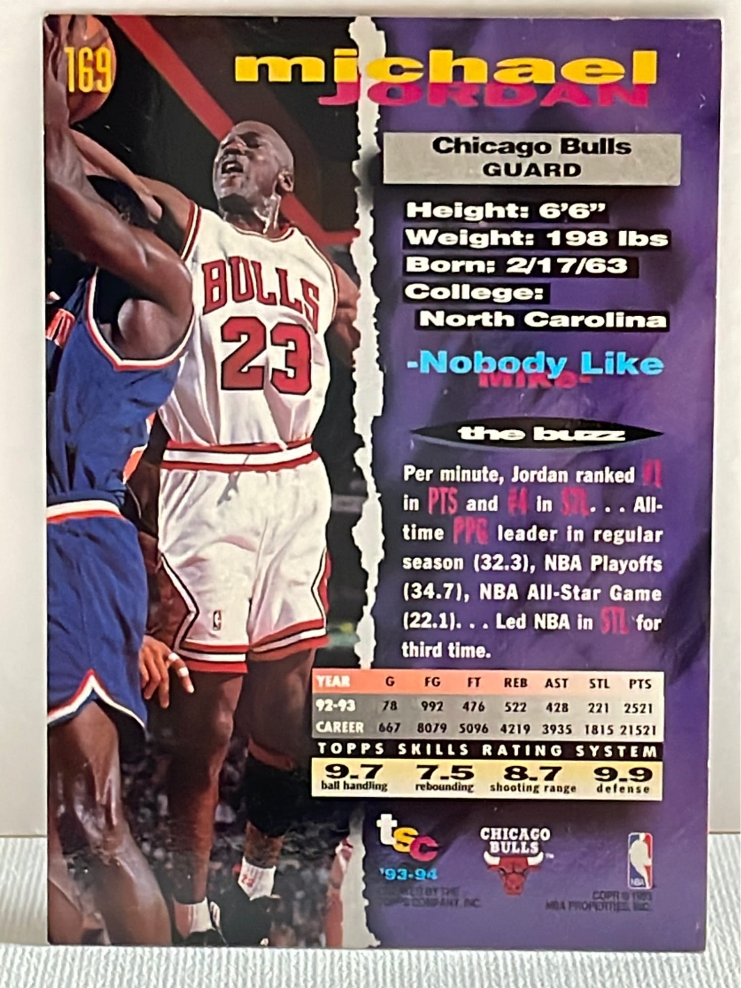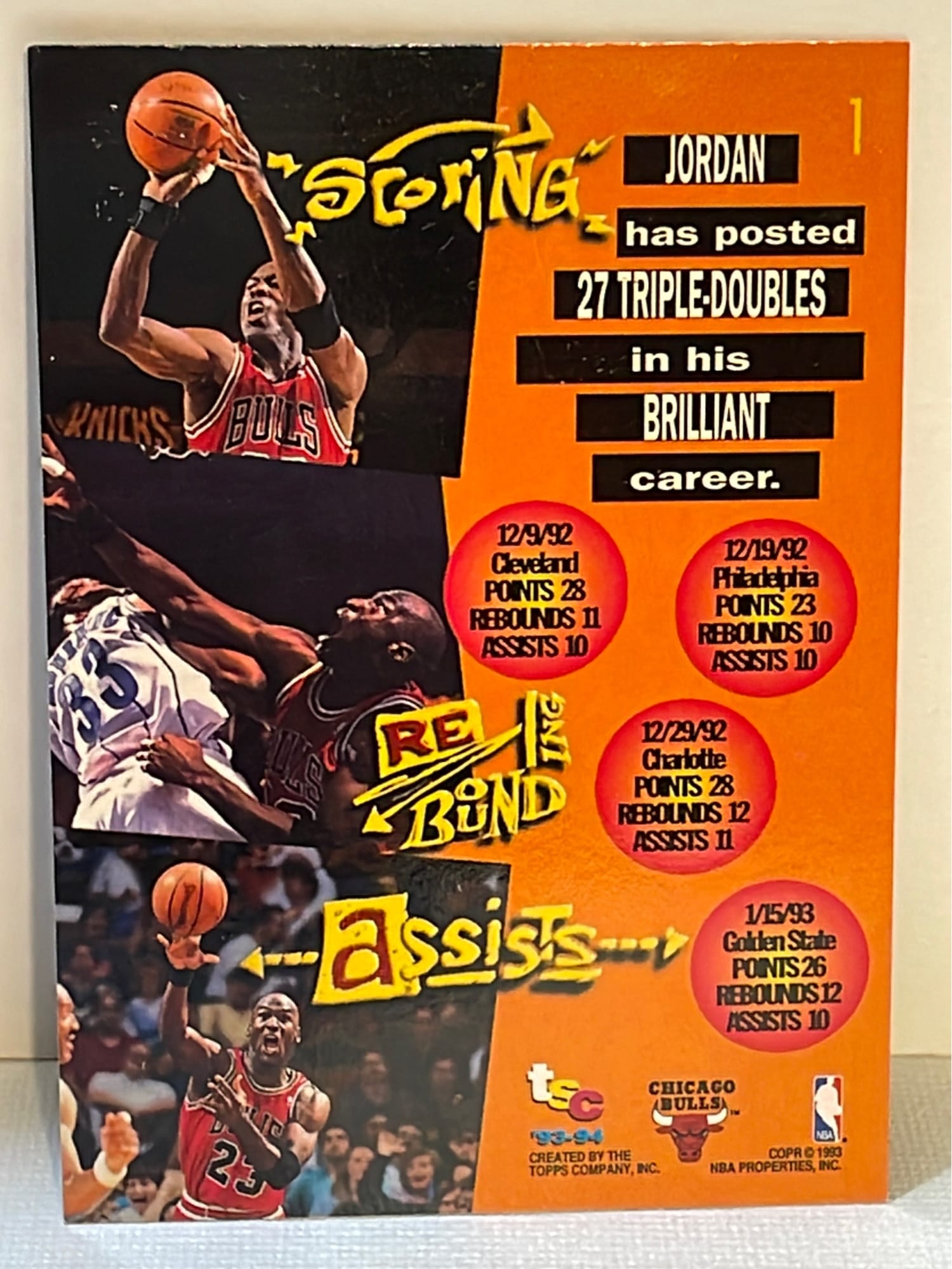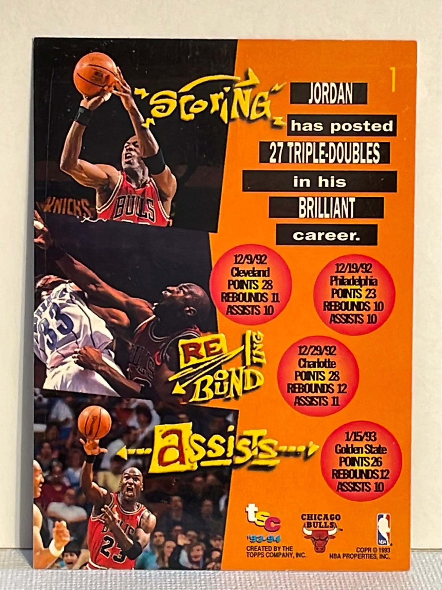 124 1993-94 TOPPS Basketball Stadium Club Michael Jordan Triple Double #1