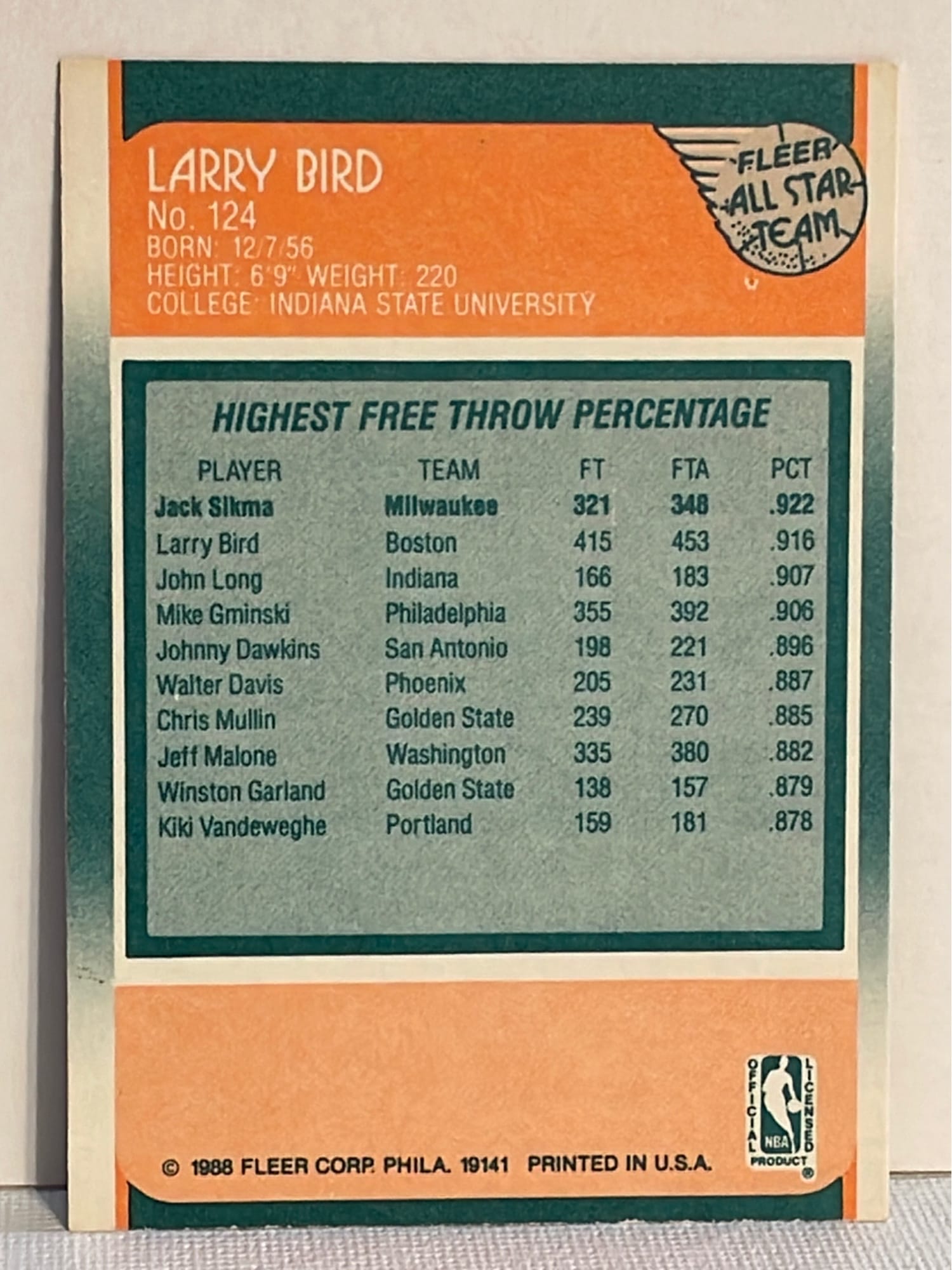 125 1988 FLEER All Star Team Larry Bird Basketball Card #124