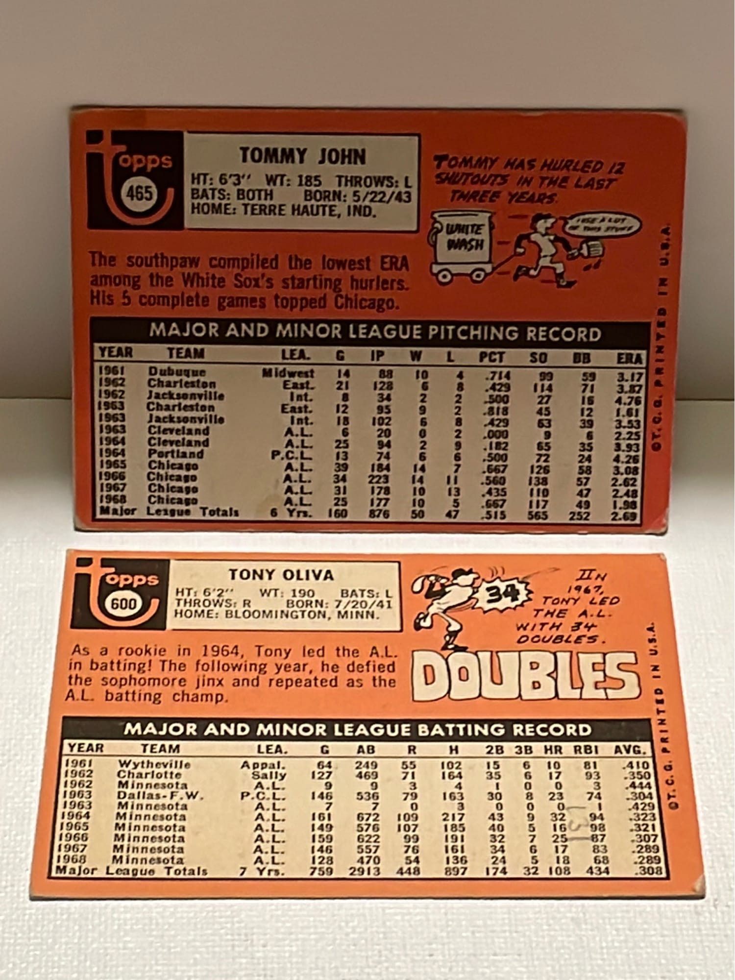 299A 2 - TOPPS Baseball Cards: 1969 #465 Tommy John and 1971 #220 Ron Santo