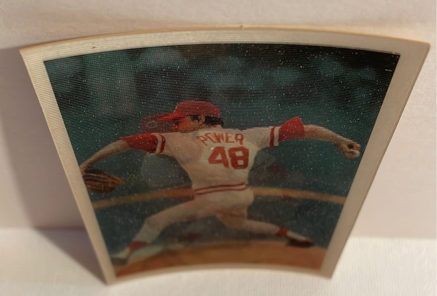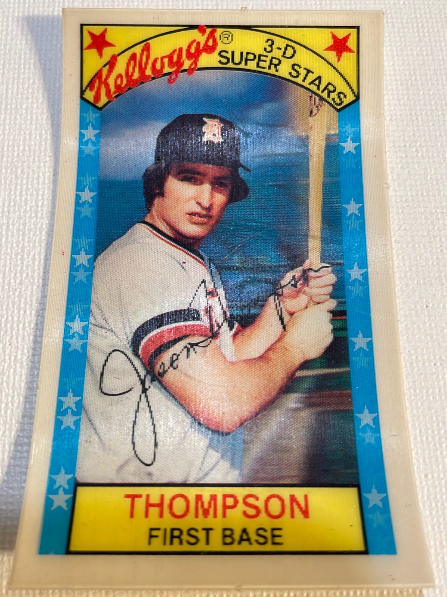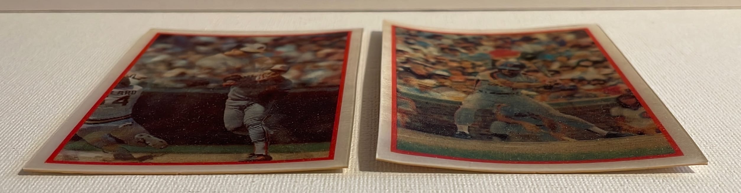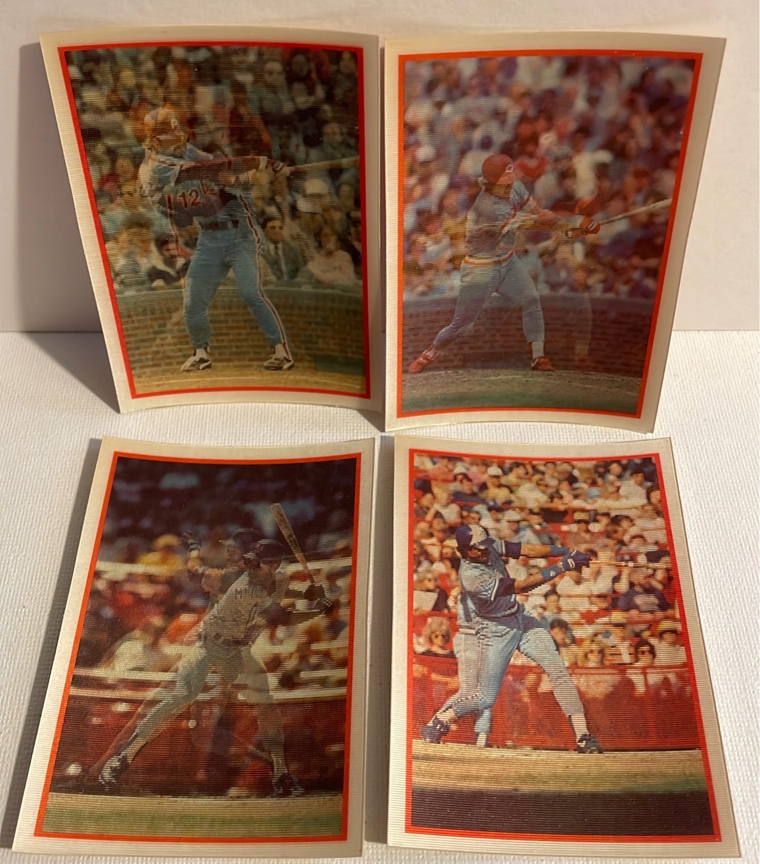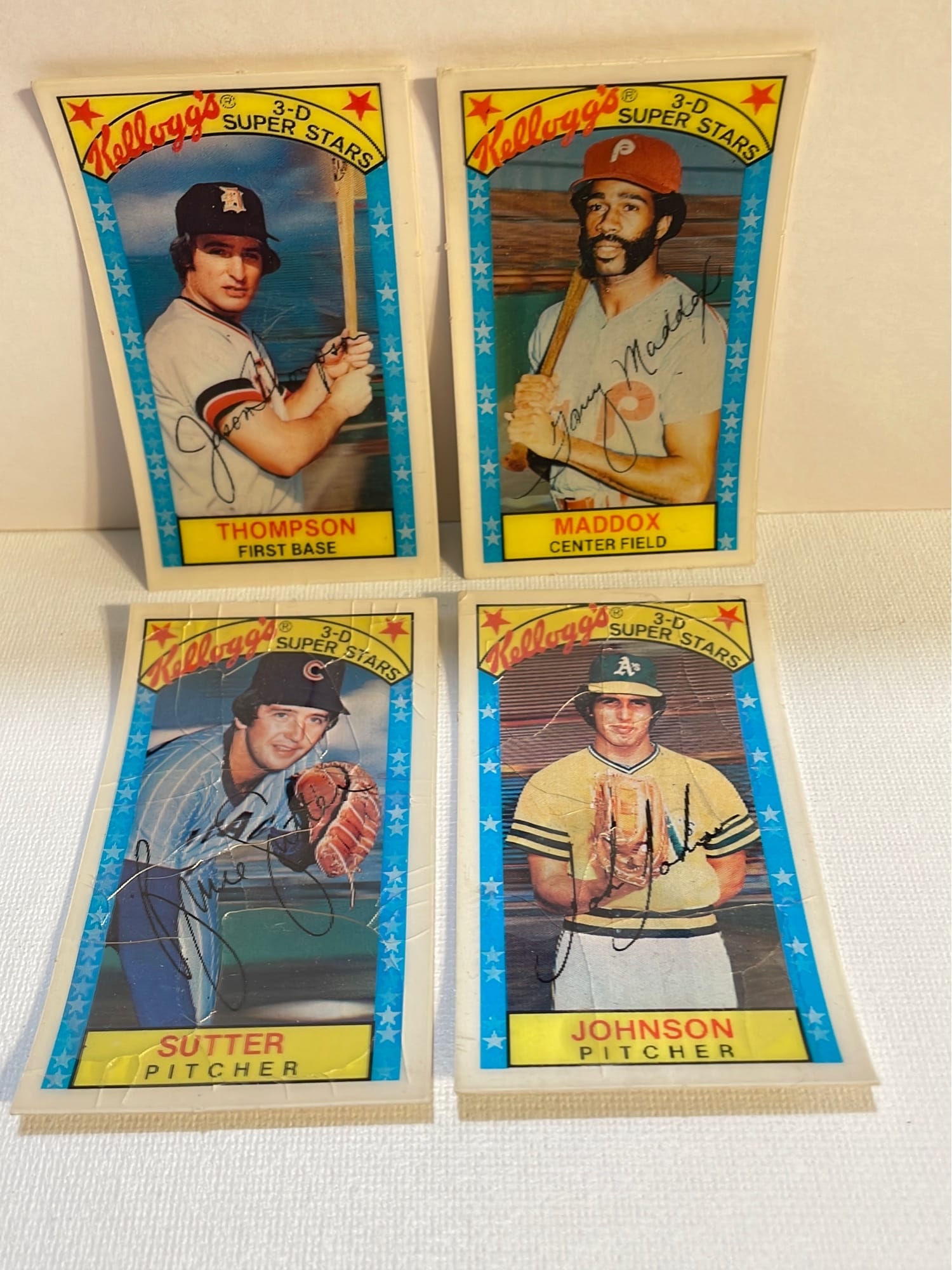 217 4 - 1979 Kellogg’s Baseball Card 3-D Super Stars: Thompson, Maddox, Sutter, Johnson (surface cracking and warping)