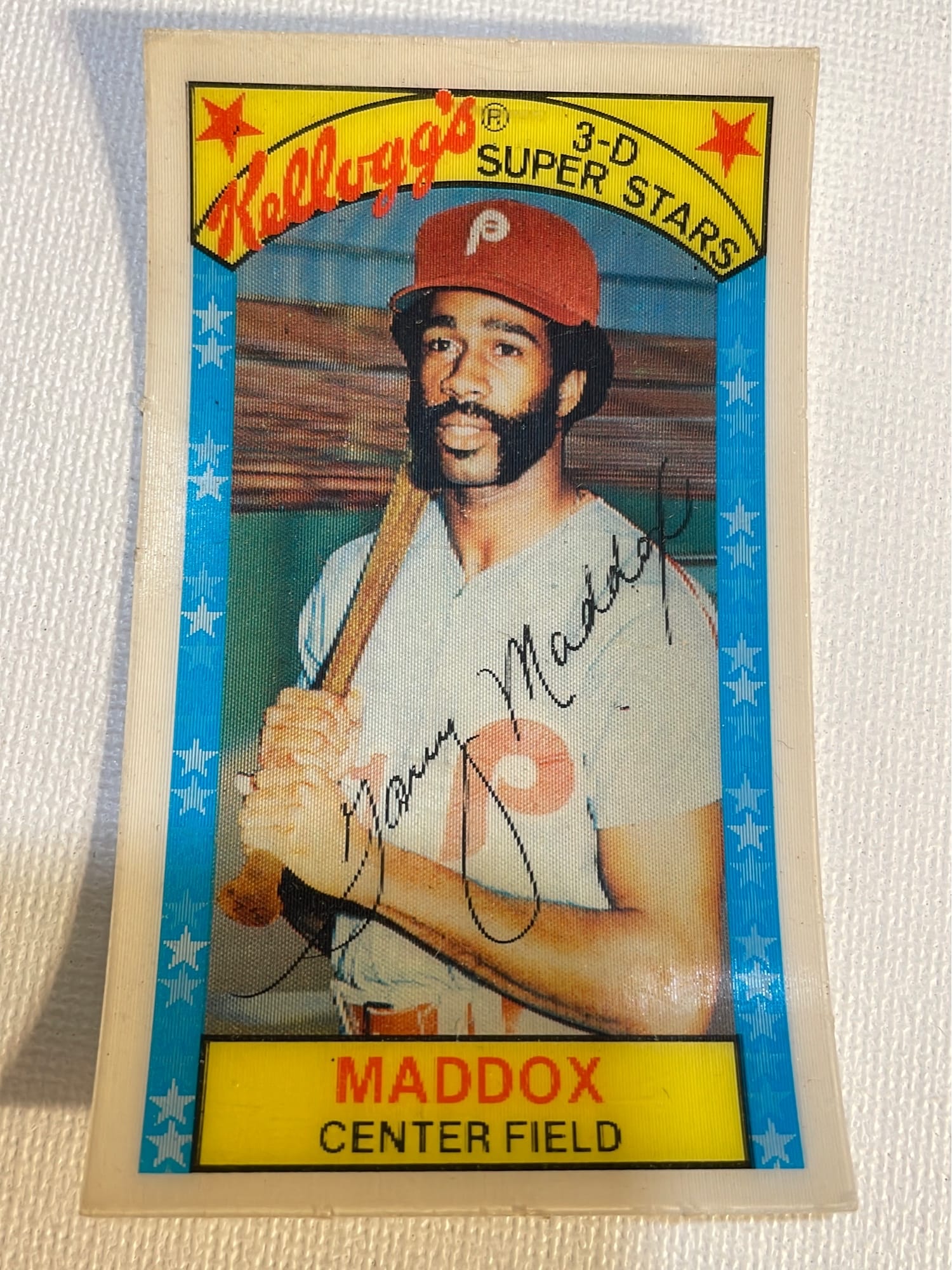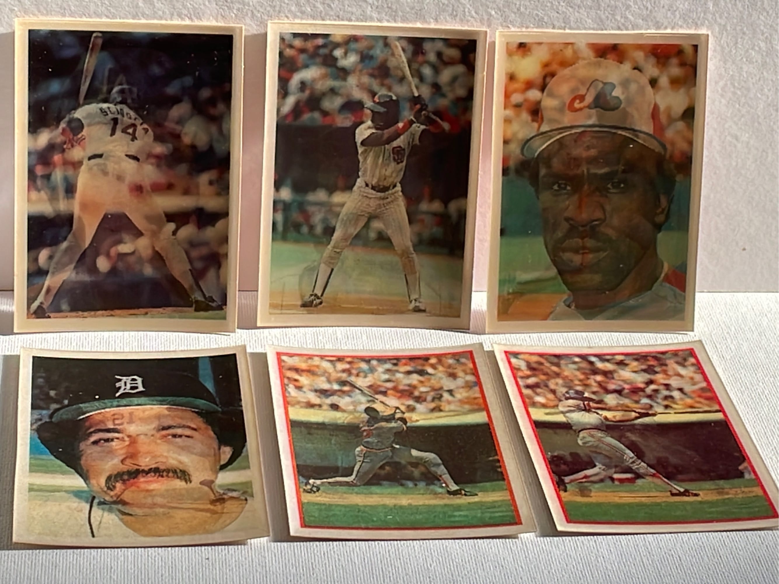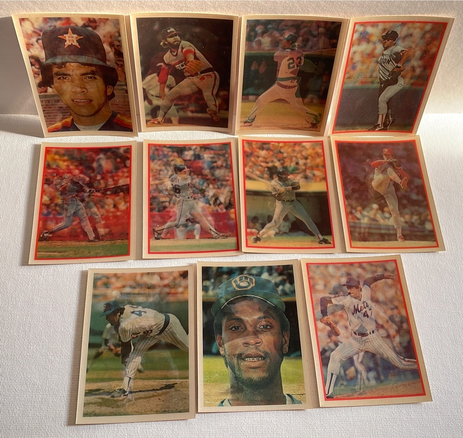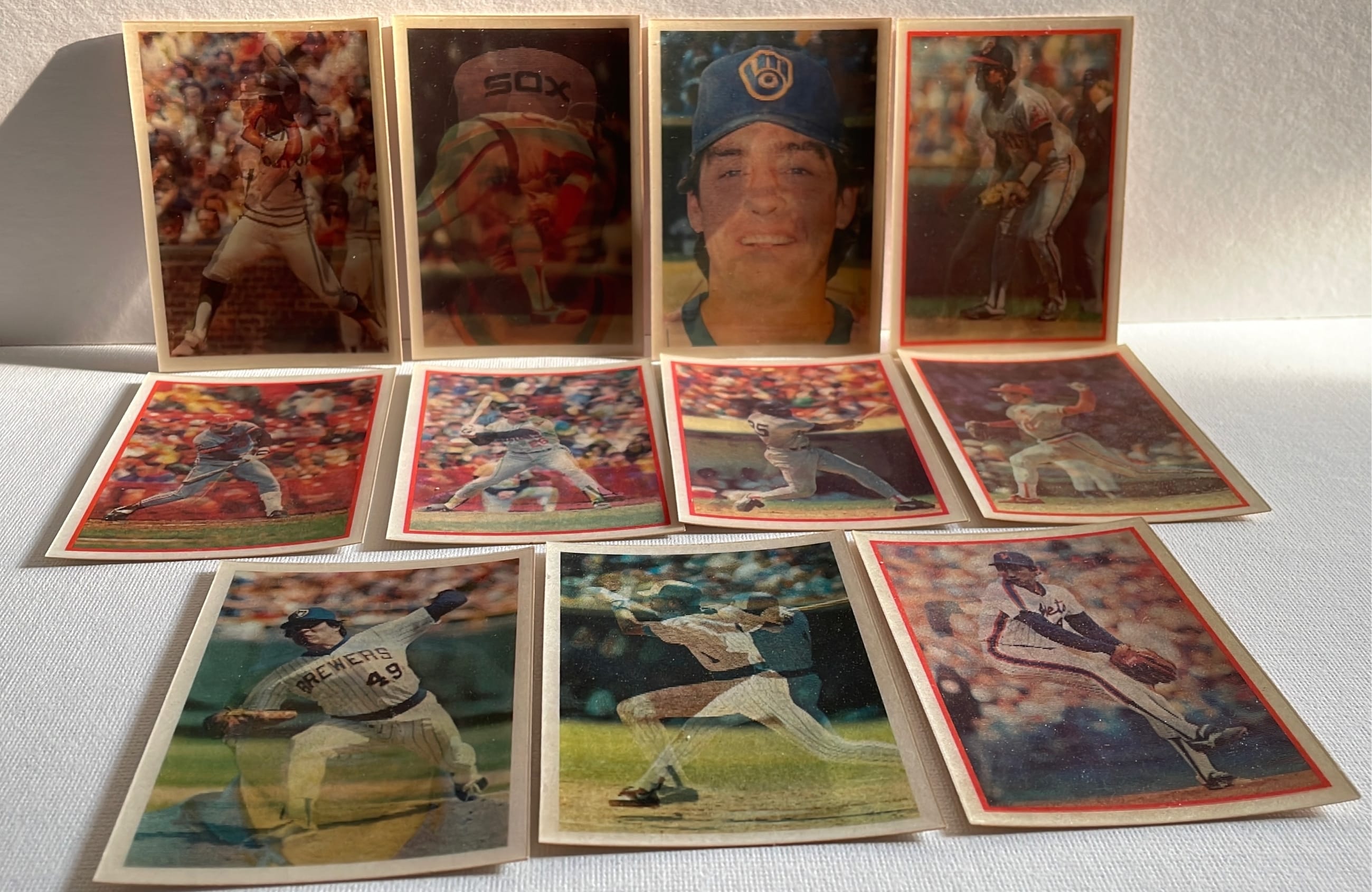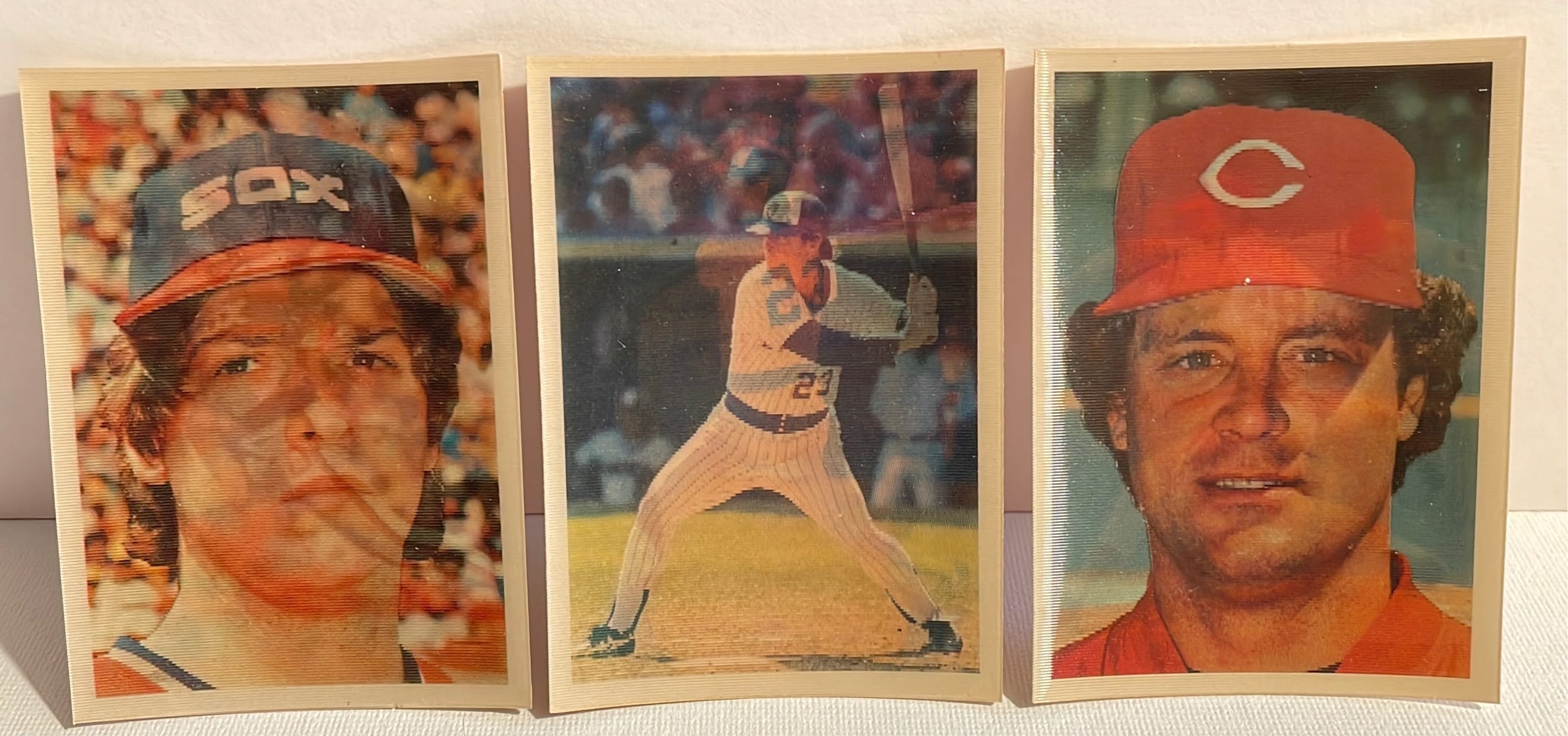 217 4 - 1979 Kellogg’s Baseball Card 3-D Super Stars: Thompson, Maddox, Sutter, Johnson (surface cracking and warping)