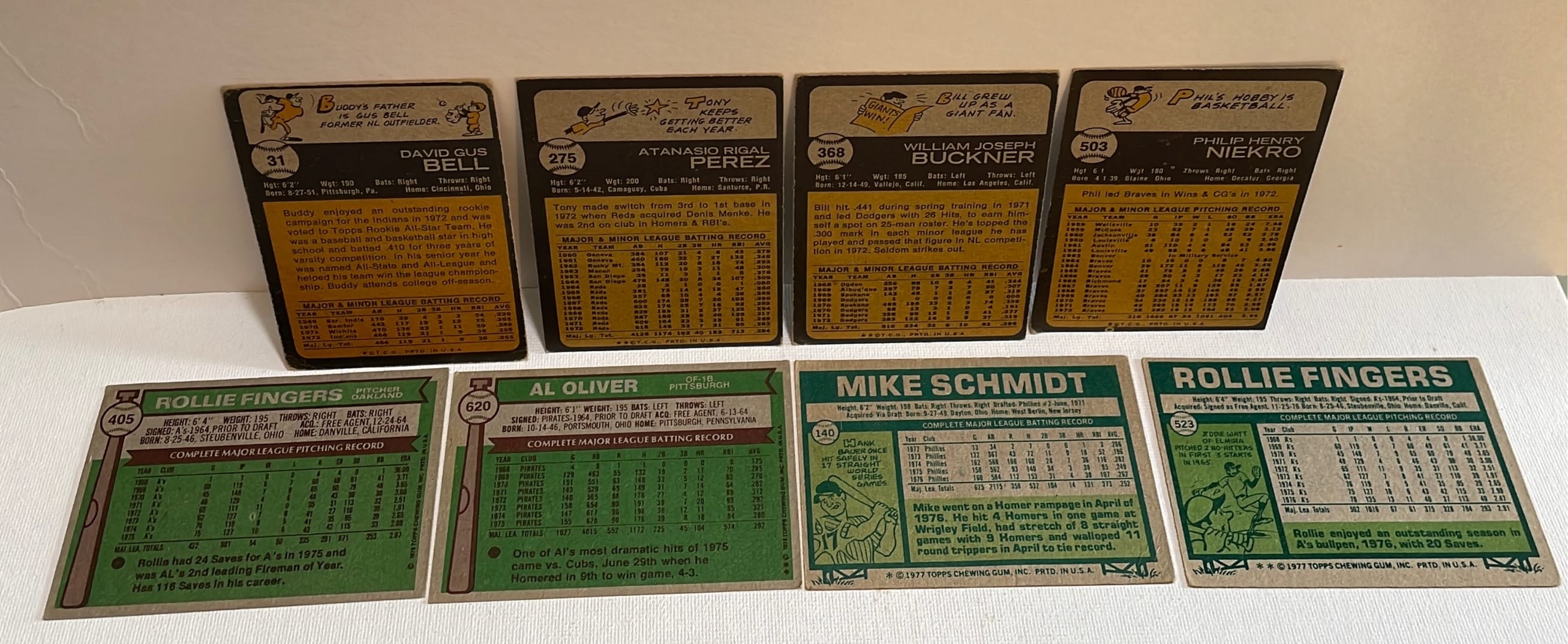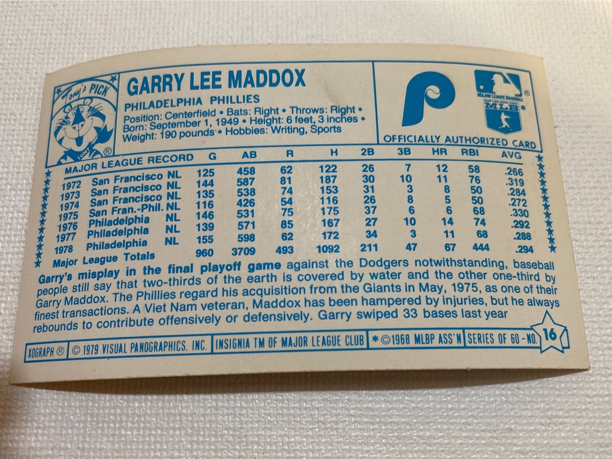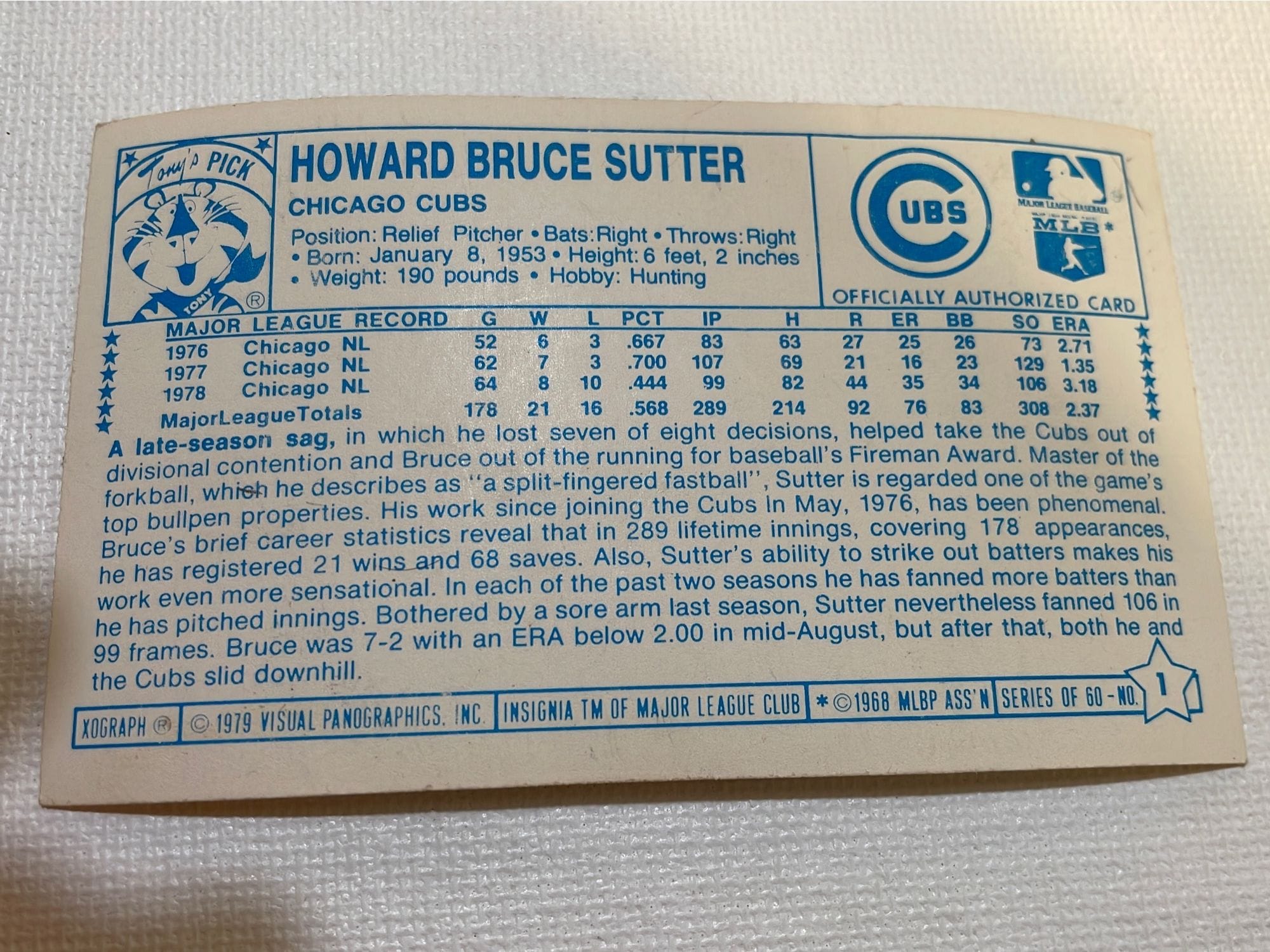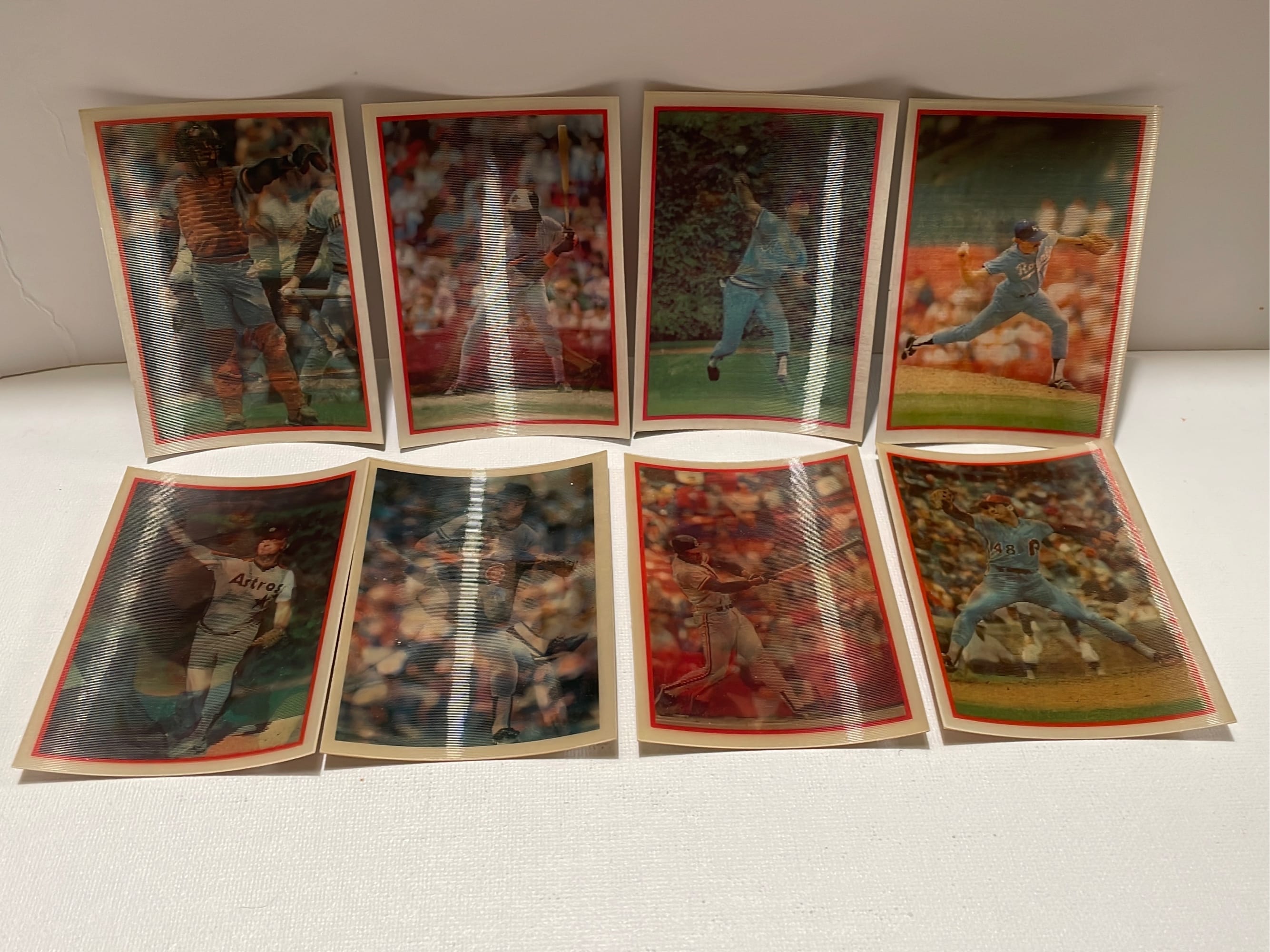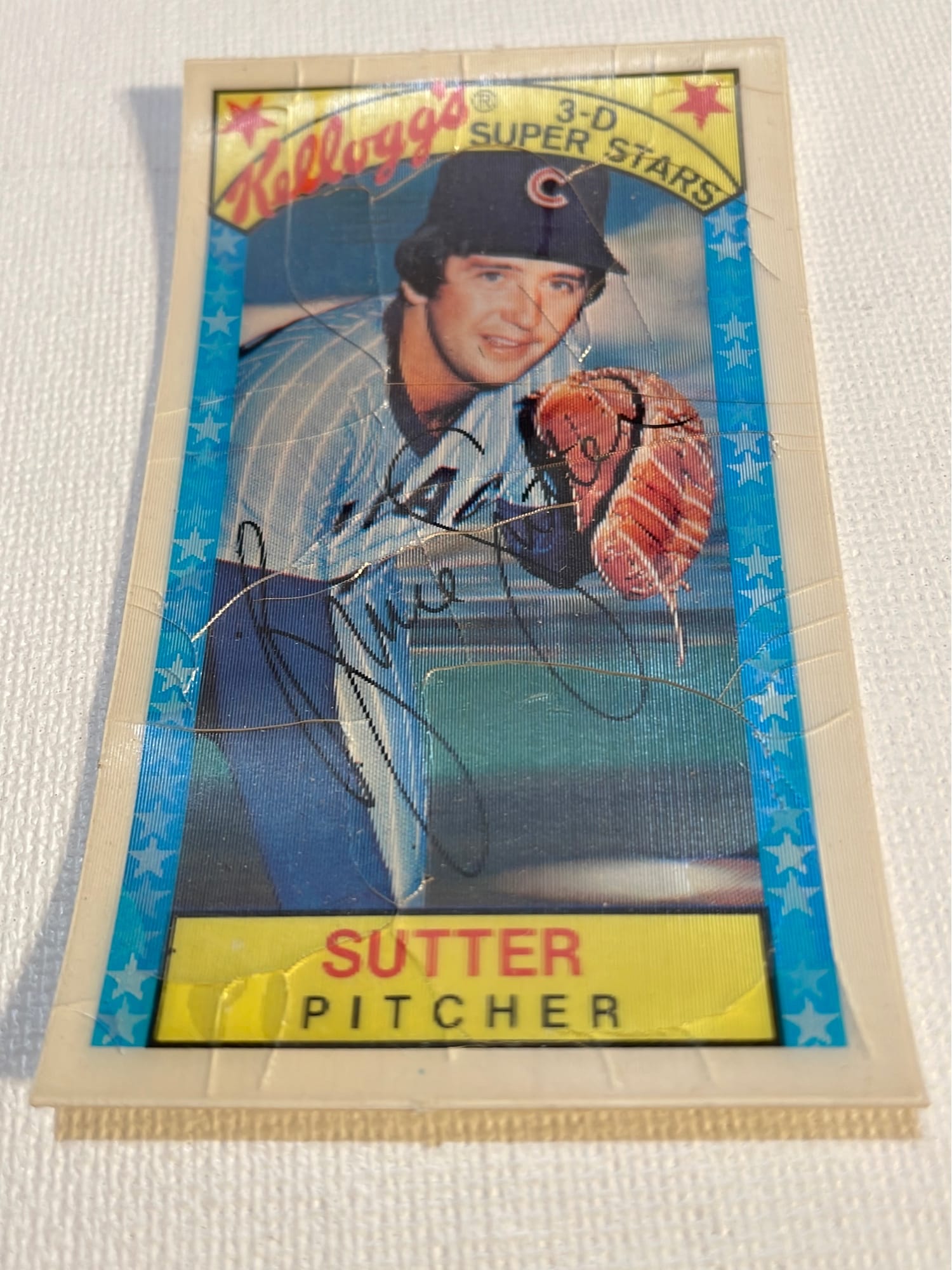 217 4 - 1979 Kellogg’s Baseball Card 3-D Super Stars: Thompson, Maddox, Sutter, Johnson (surface cracking and warping)