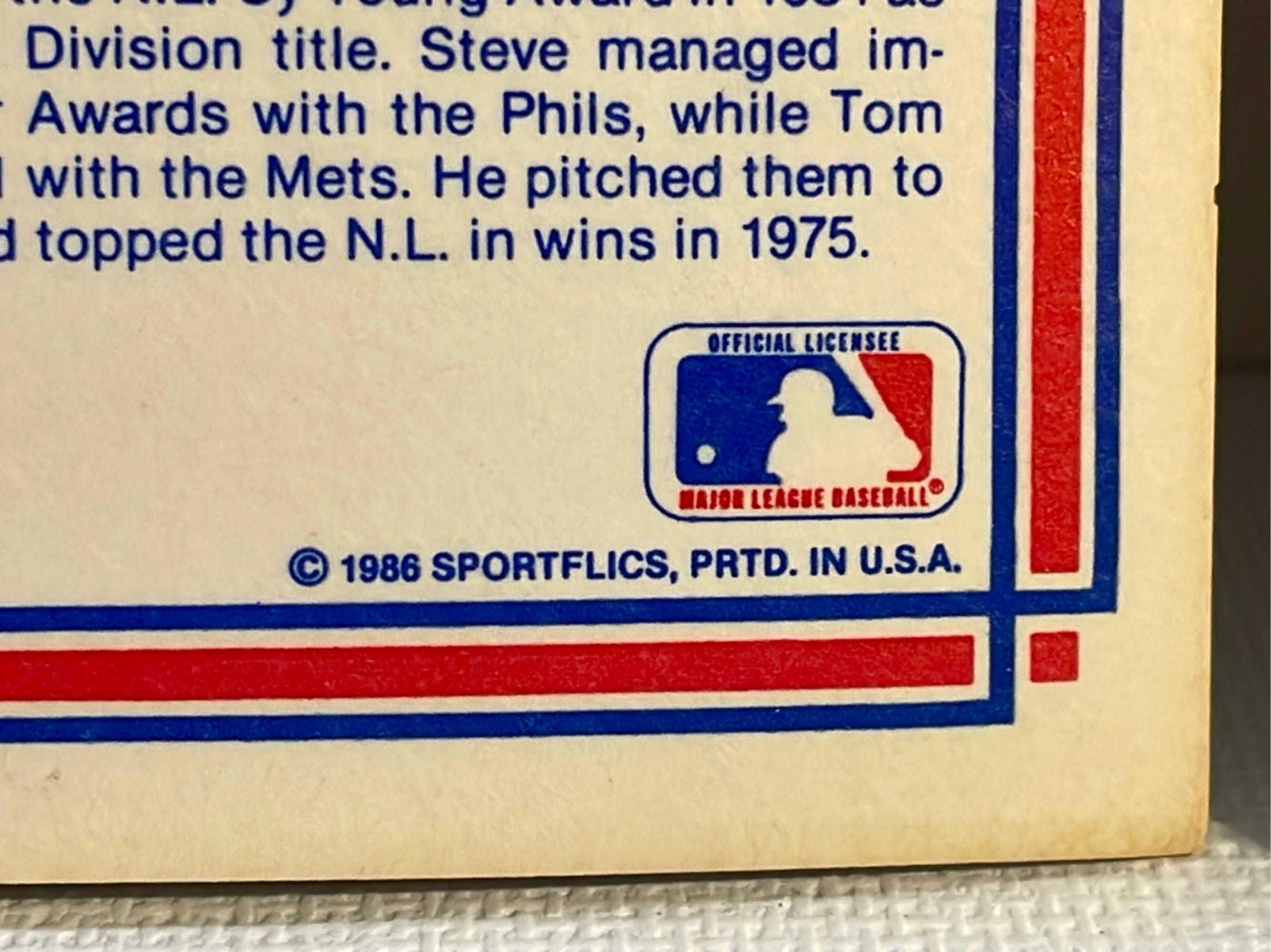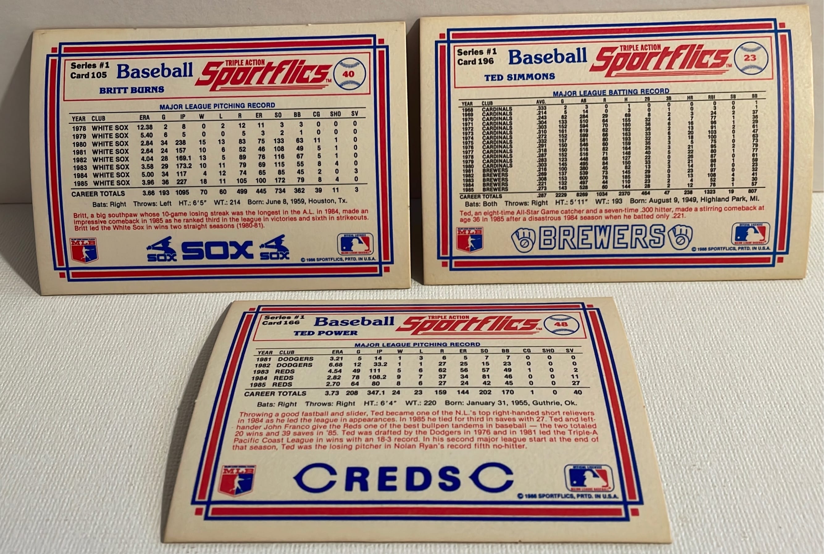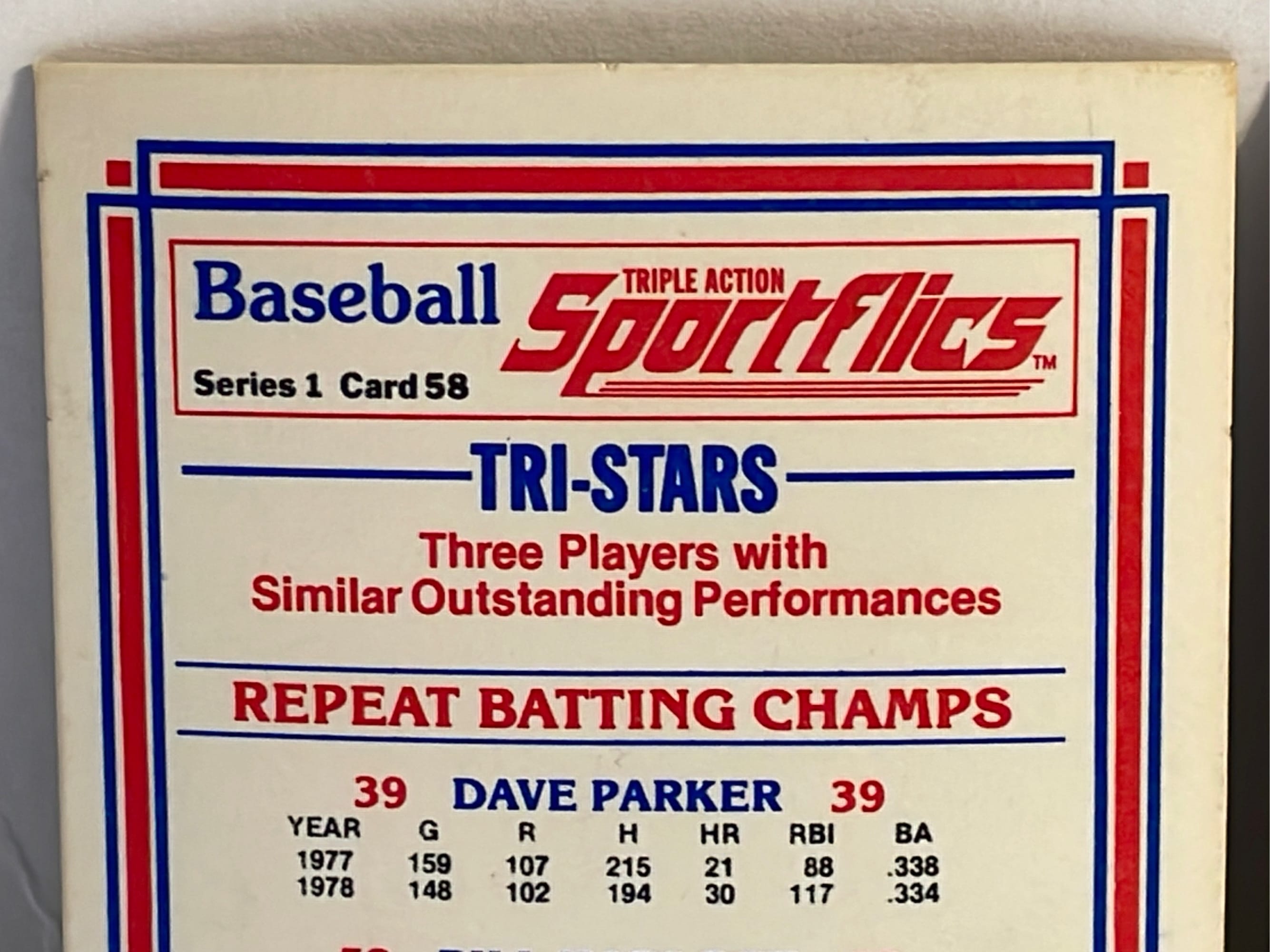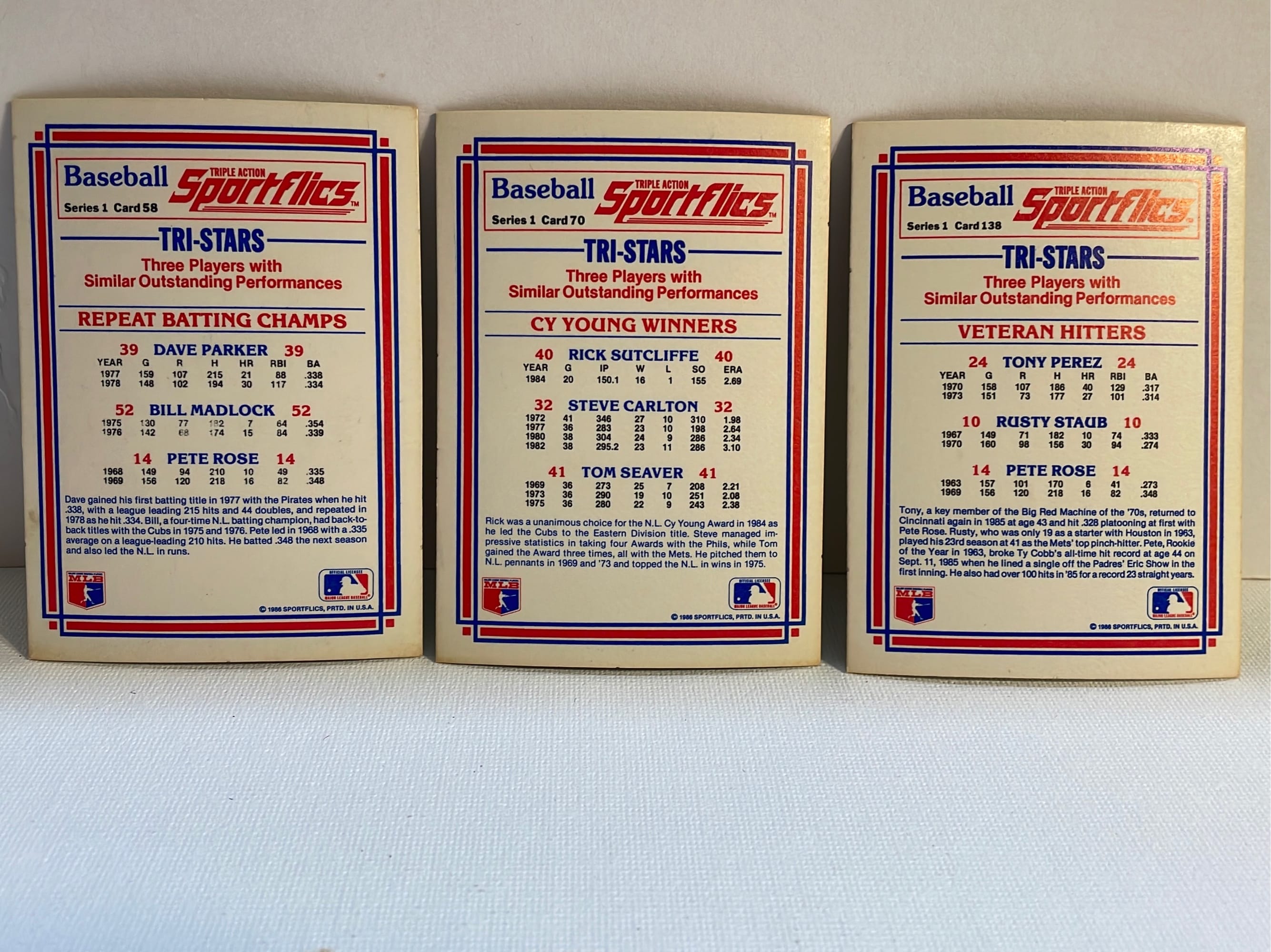 218 3 - 1986 Baseball Tri-Stars Sportflics: Parker / Madlock / Rose - Sutcliffe / Carlton Seaver - Perez / Staub / Rose