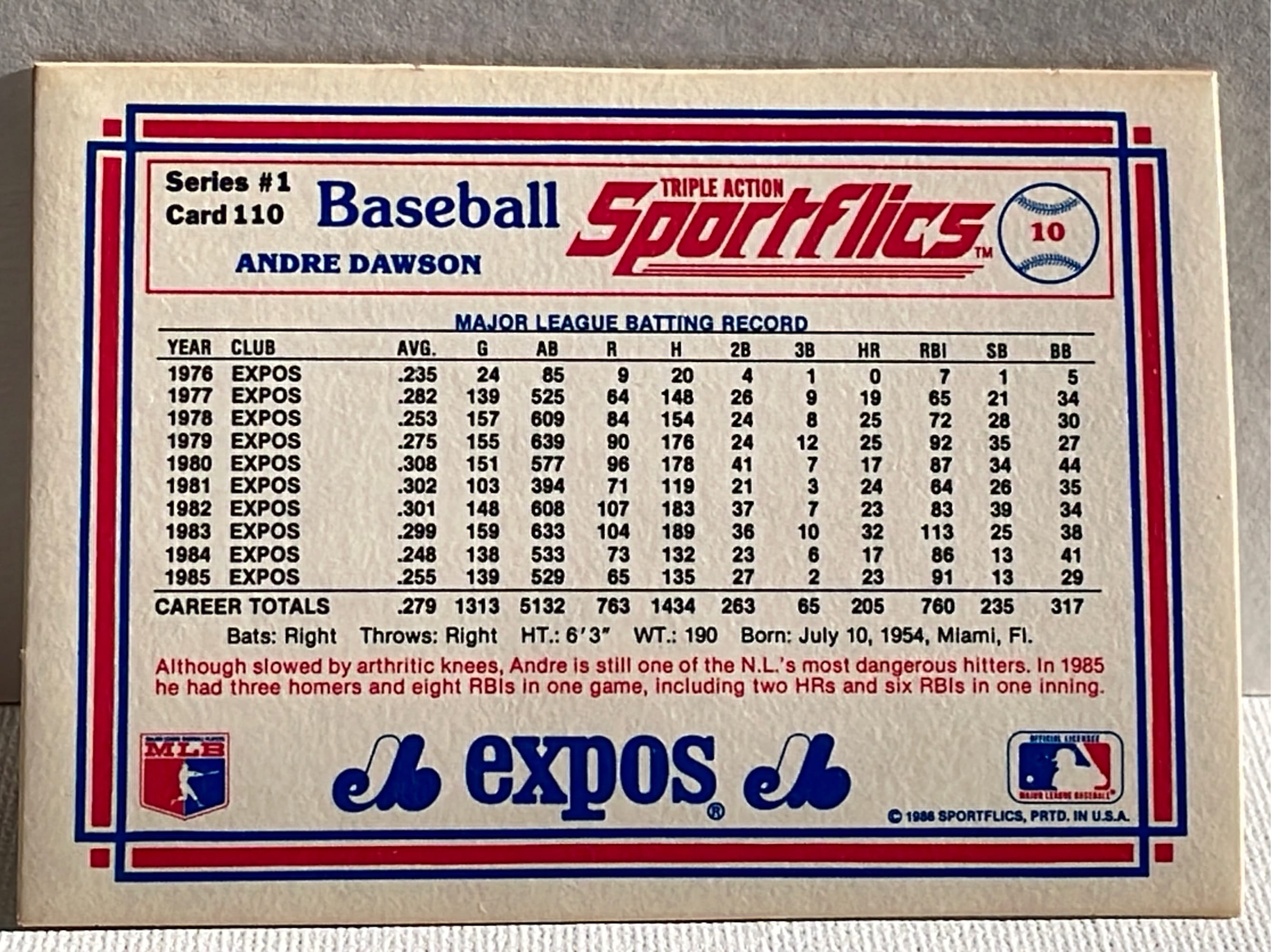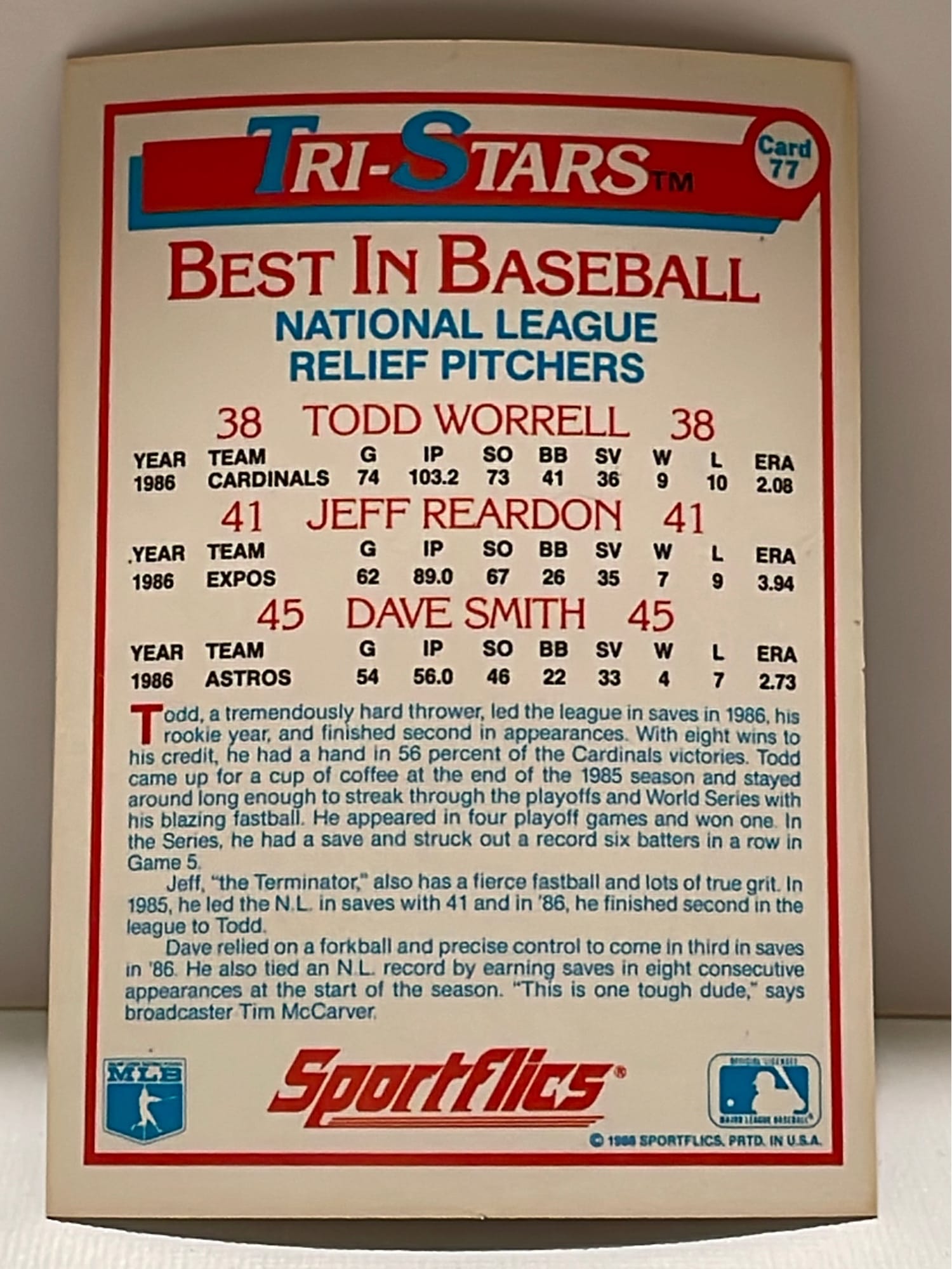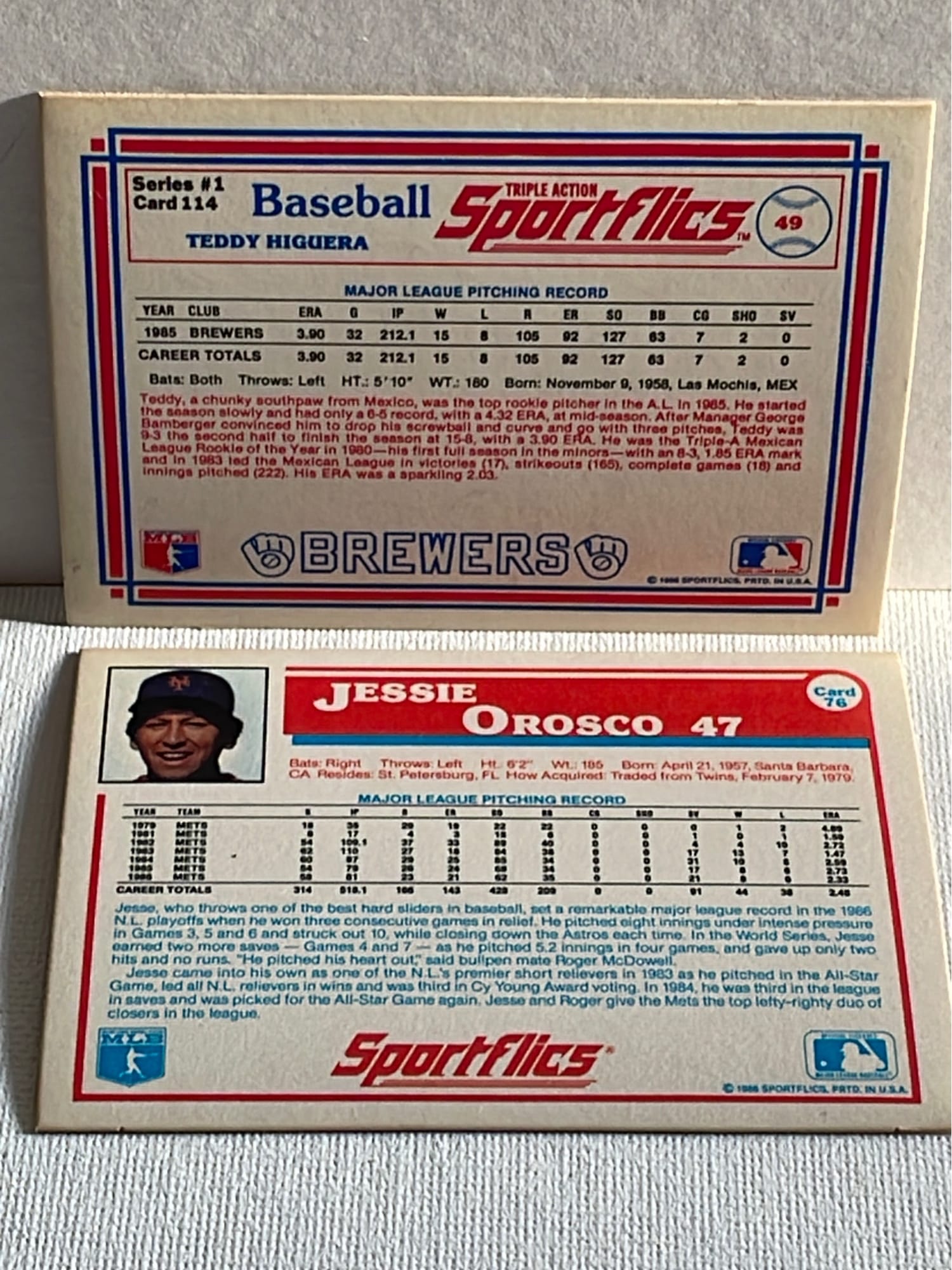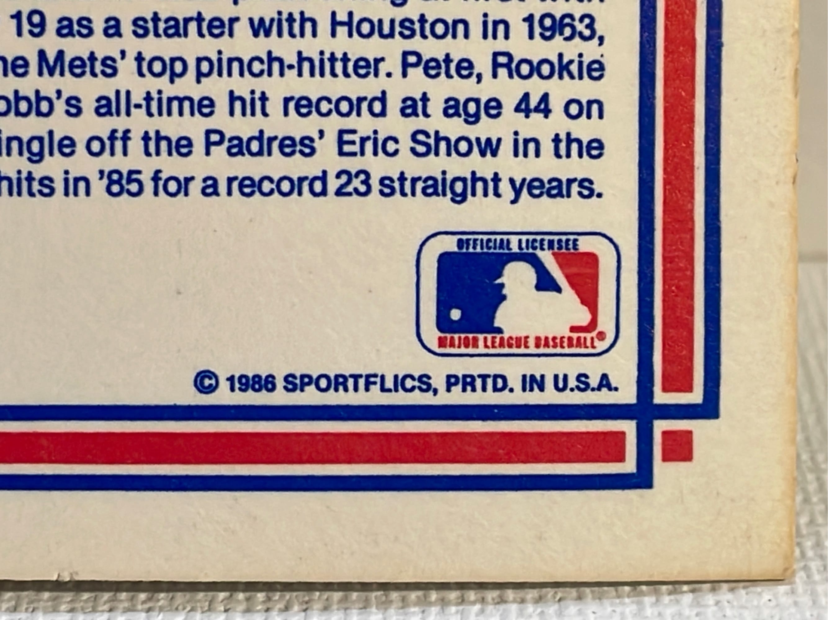 218 3 - 1986 Baseball Tri-Stars Sportflics: Parker / Madlock / Rose - Sutcliffe / Carlton Seaver - Perez / Staub / Rose