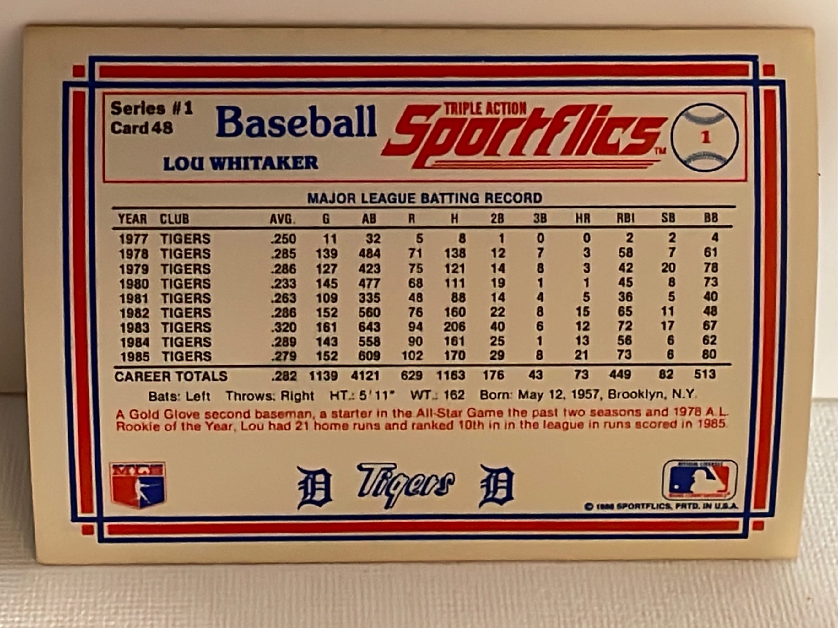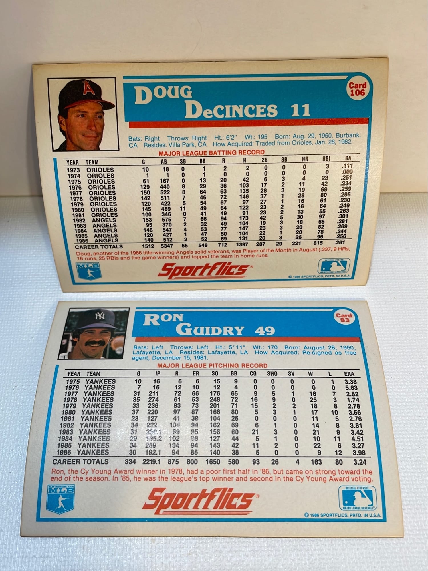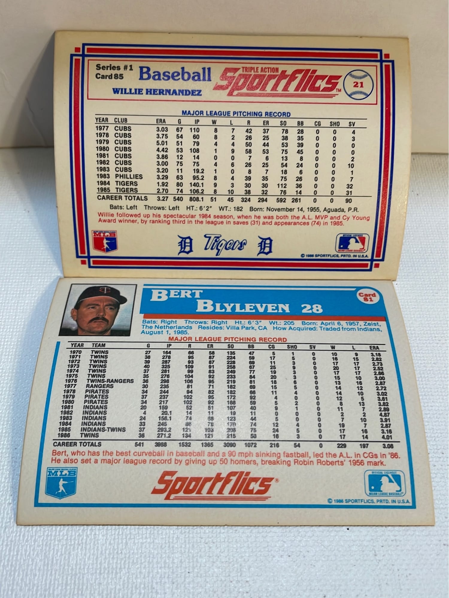 222 6 - 1986 Sportflics Baseball Cards: Whitaker, Garcia, Hernandez, Carman, Blyleven, Guidry, DeCinces II