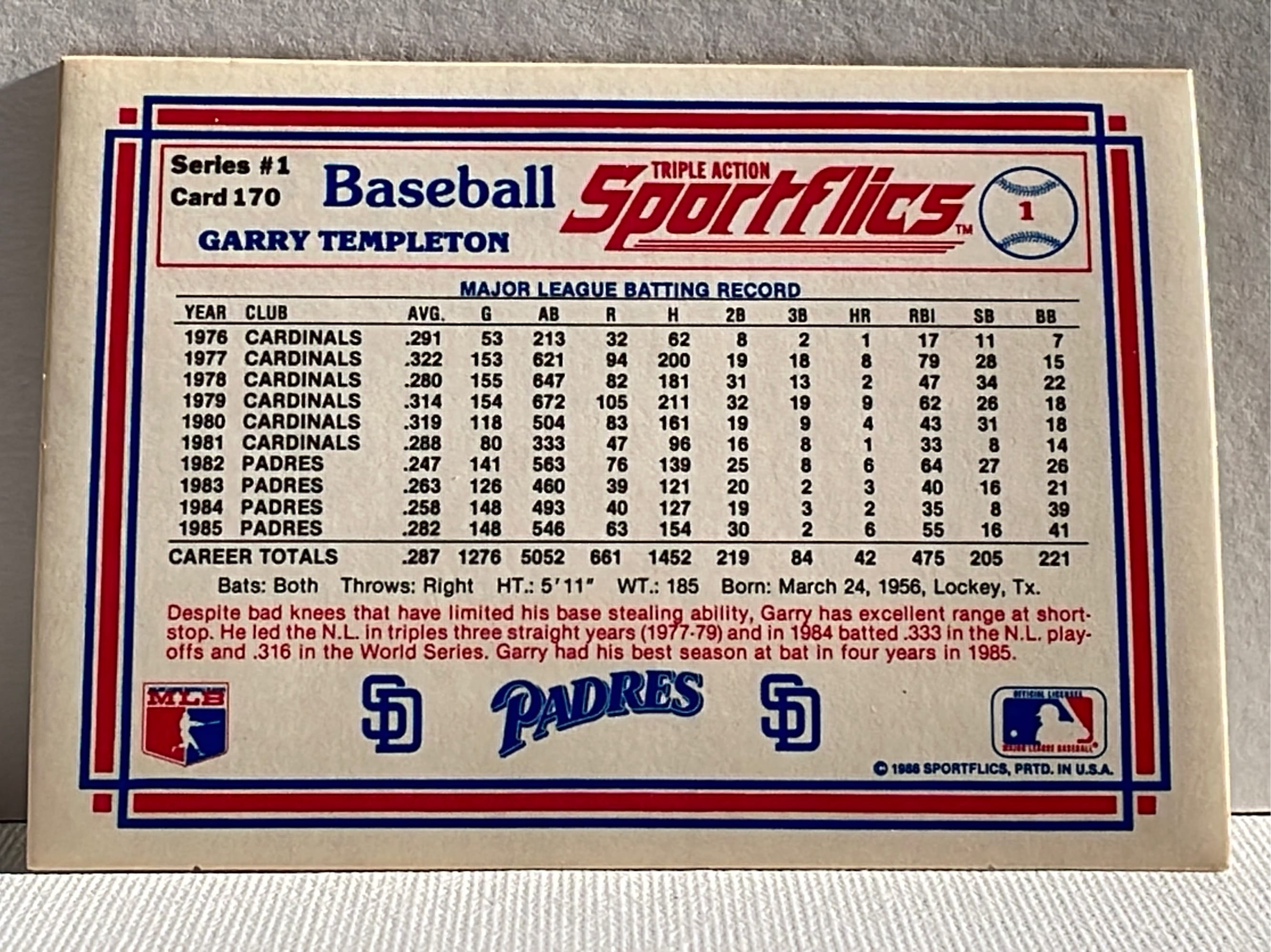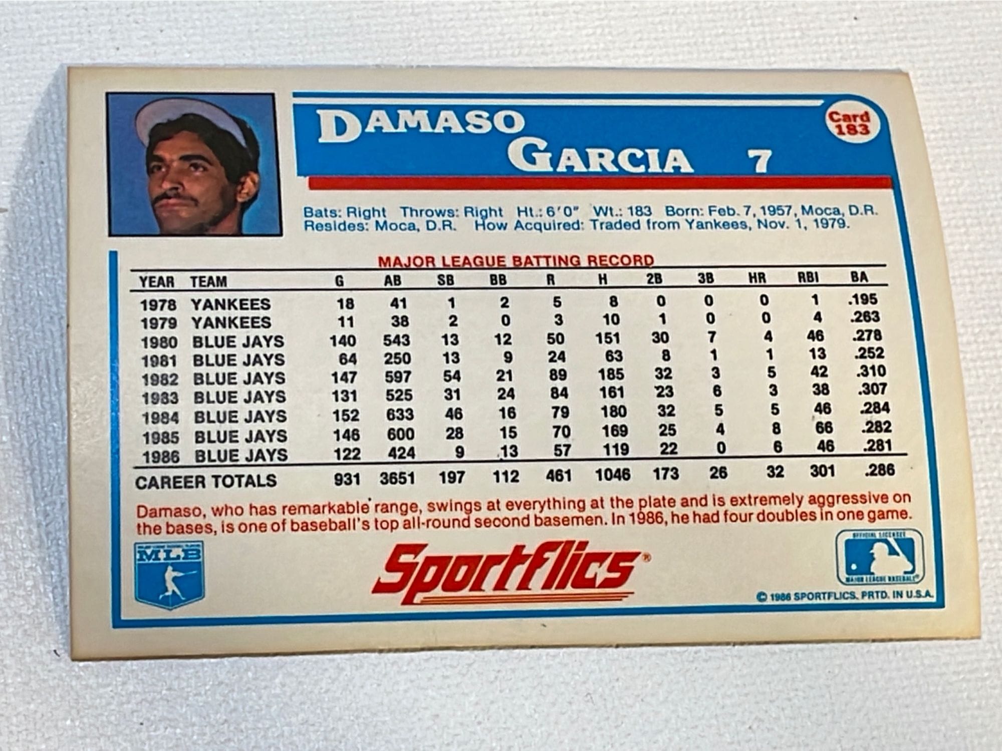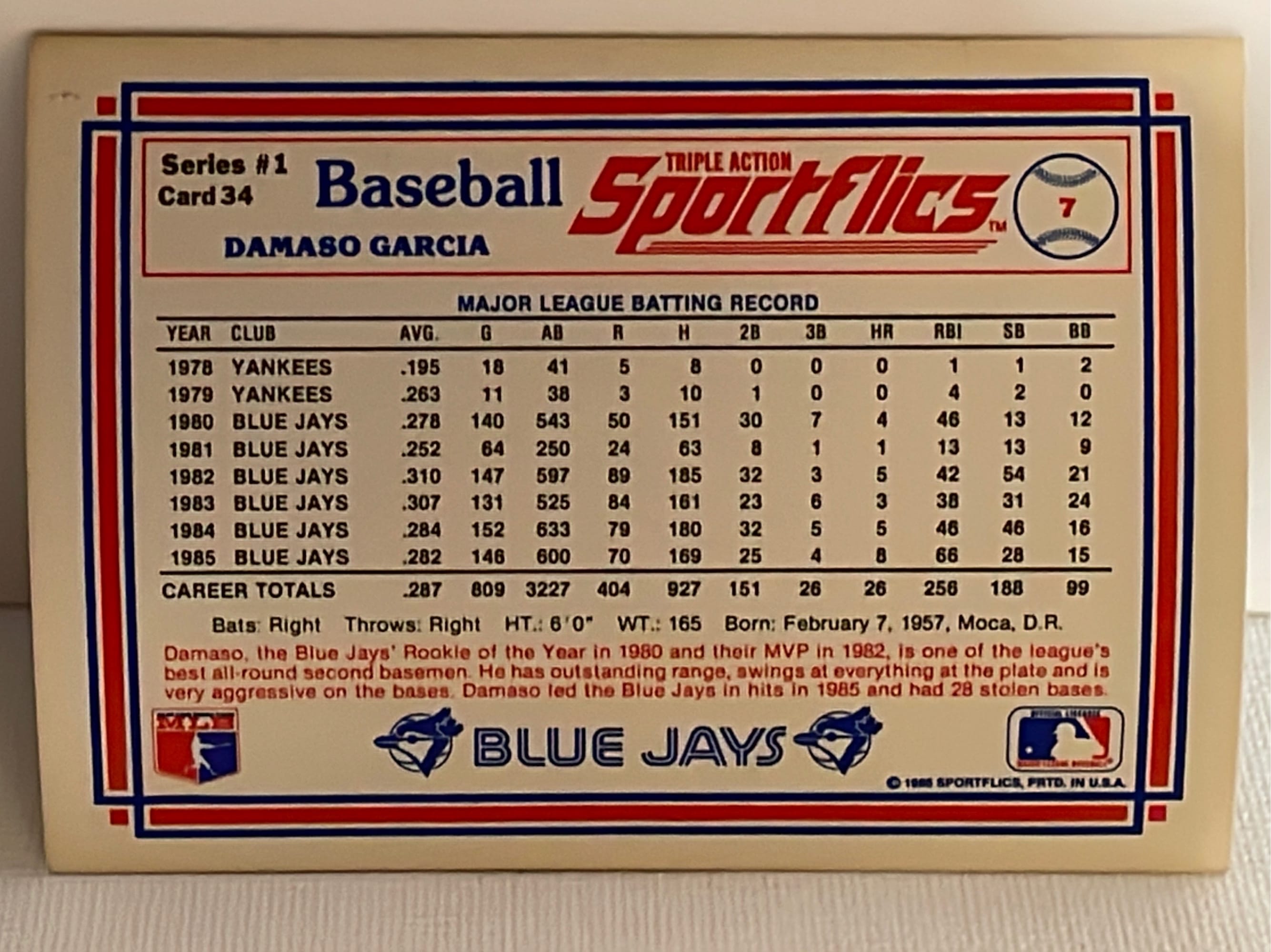 222 6 - 1986 Sportflics Baseball Cards: Whitaker, Garcia, Hernandez, Carman, Blyleven, Guidry, DeCinces II
