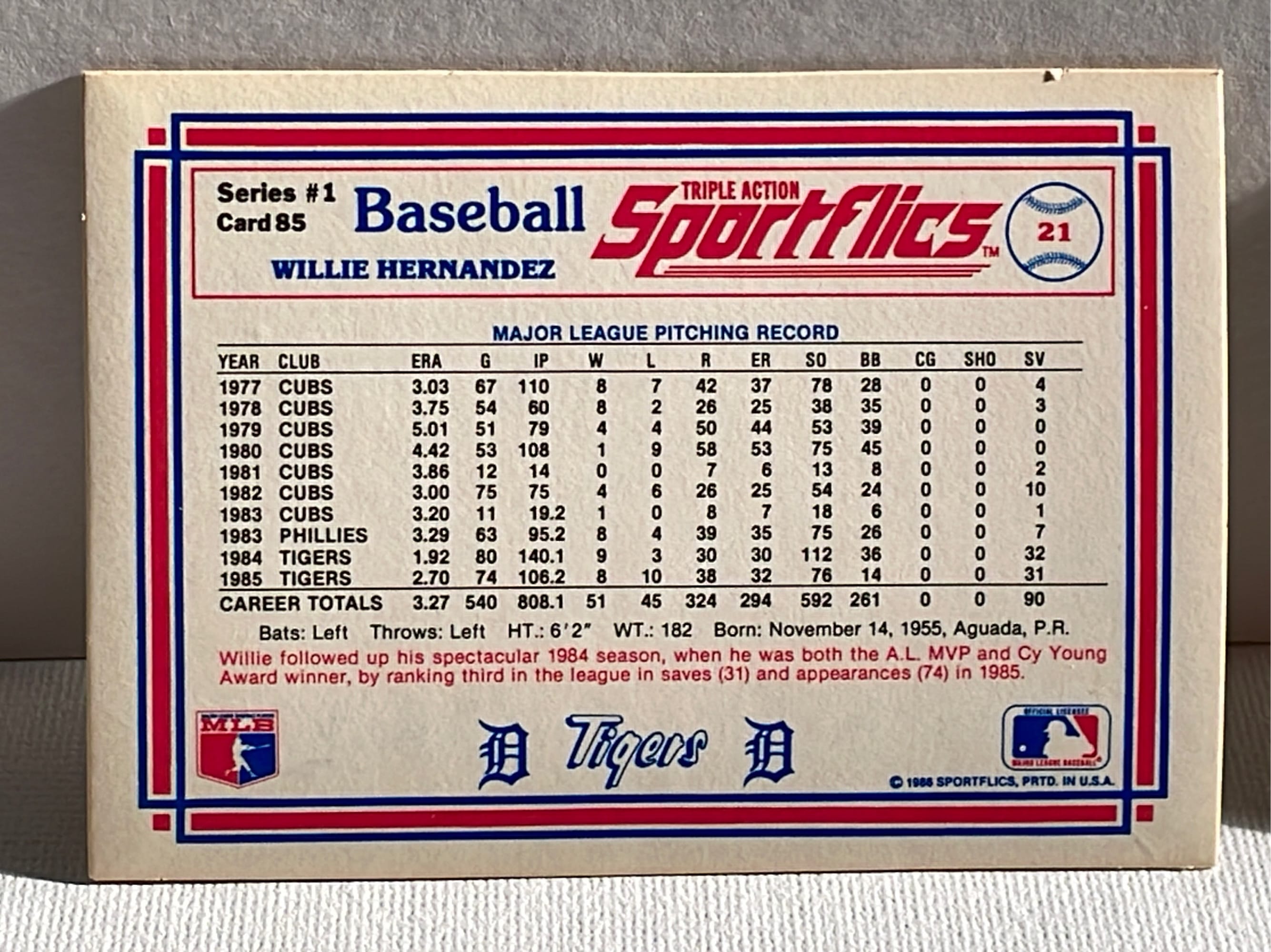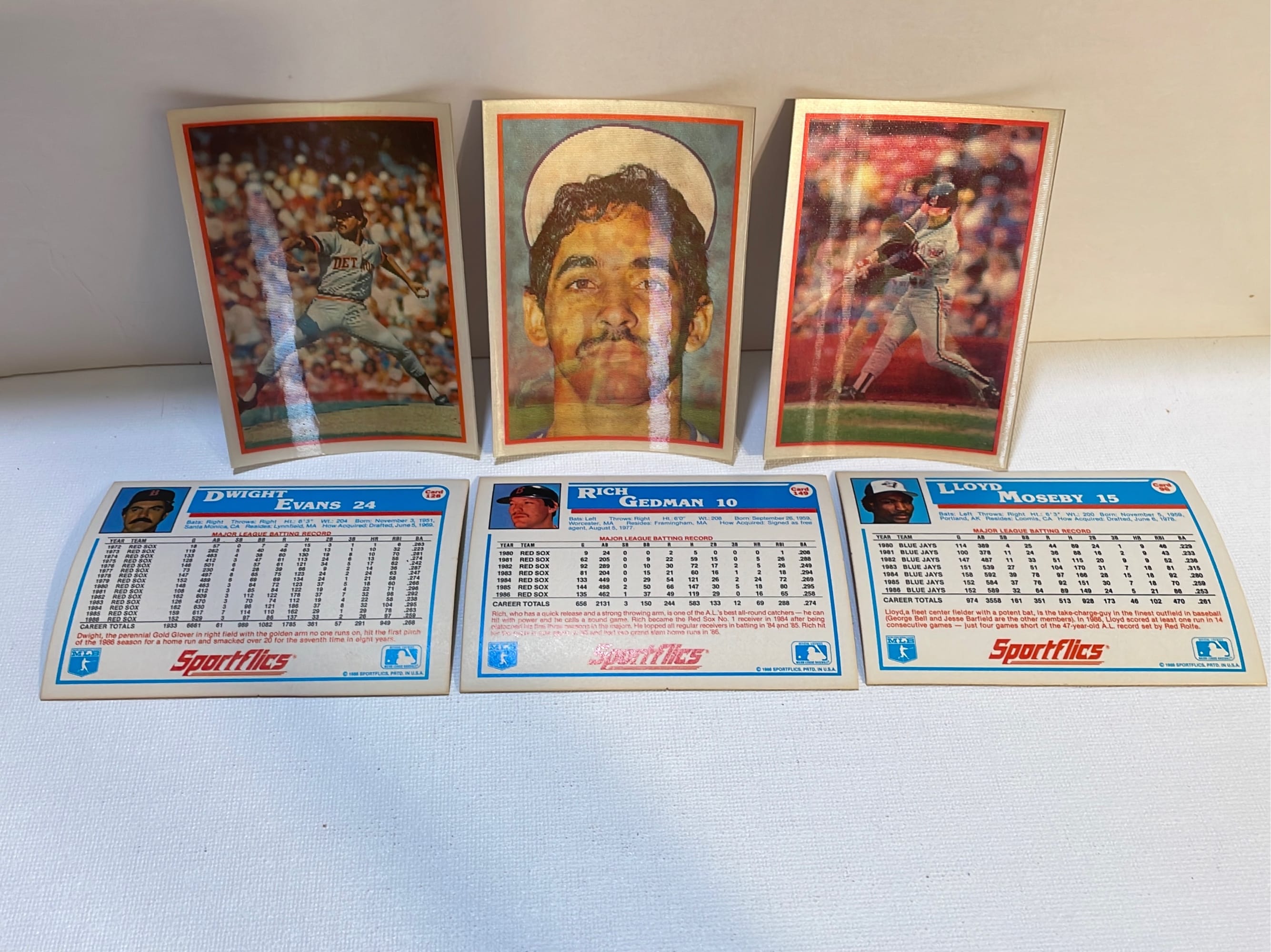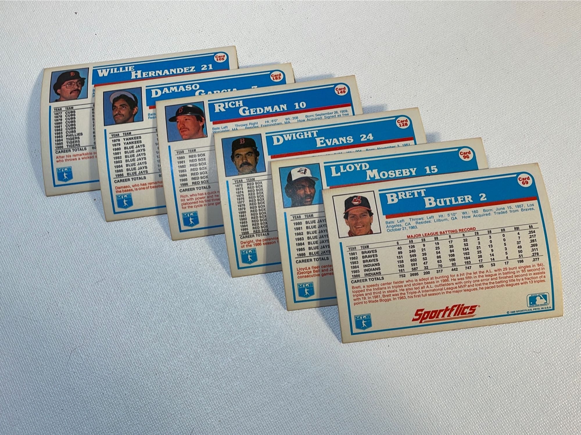 224 6 - 1986 Sportflics Baseball cards: Hernandez, Garcia, Butler, Evans, Gedman, Moseby