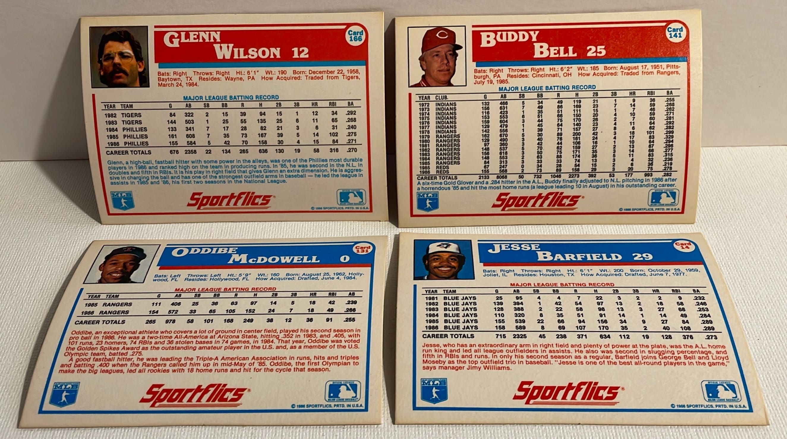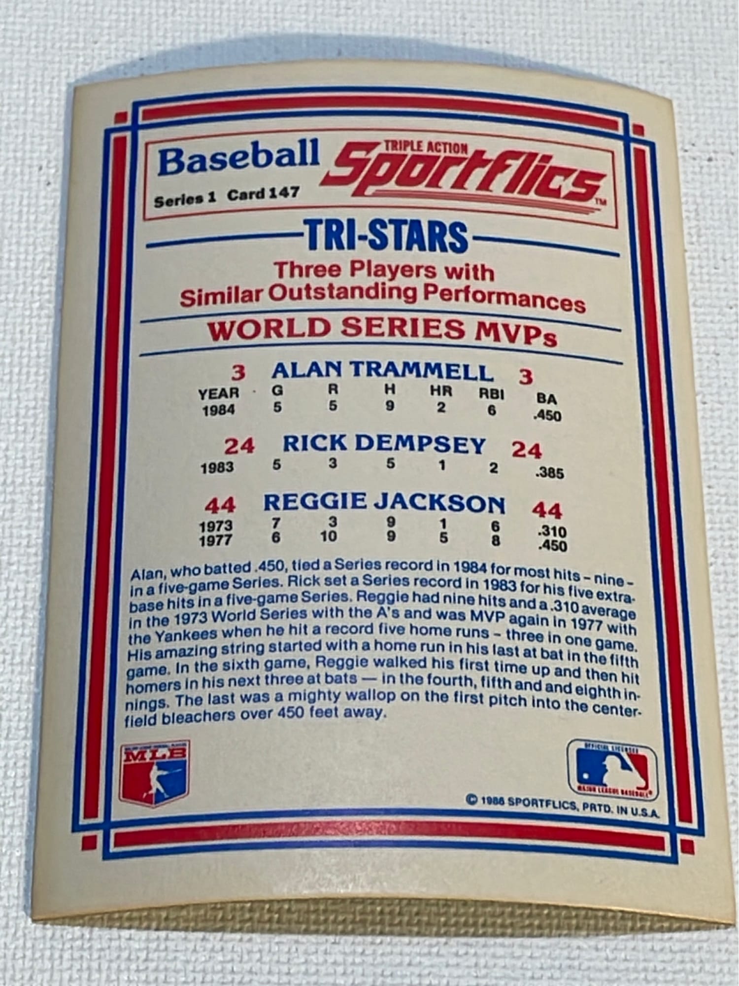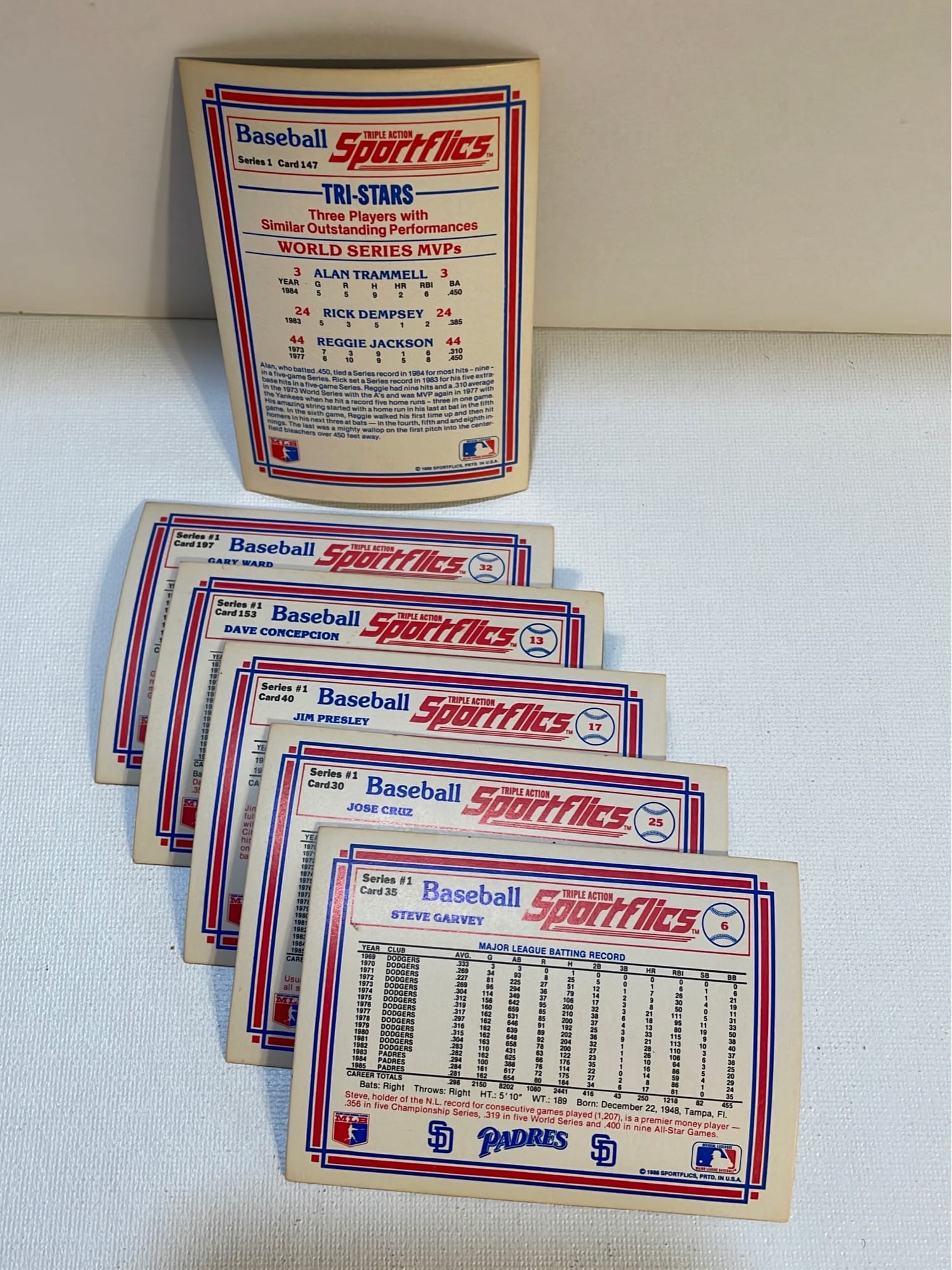 225 6 - 1986 Sportflics Baseball Cards: Cruz, Garvey, Presley, Concepcion, Ward, and Tri-Stars Trammell, Dempsey, Jackson