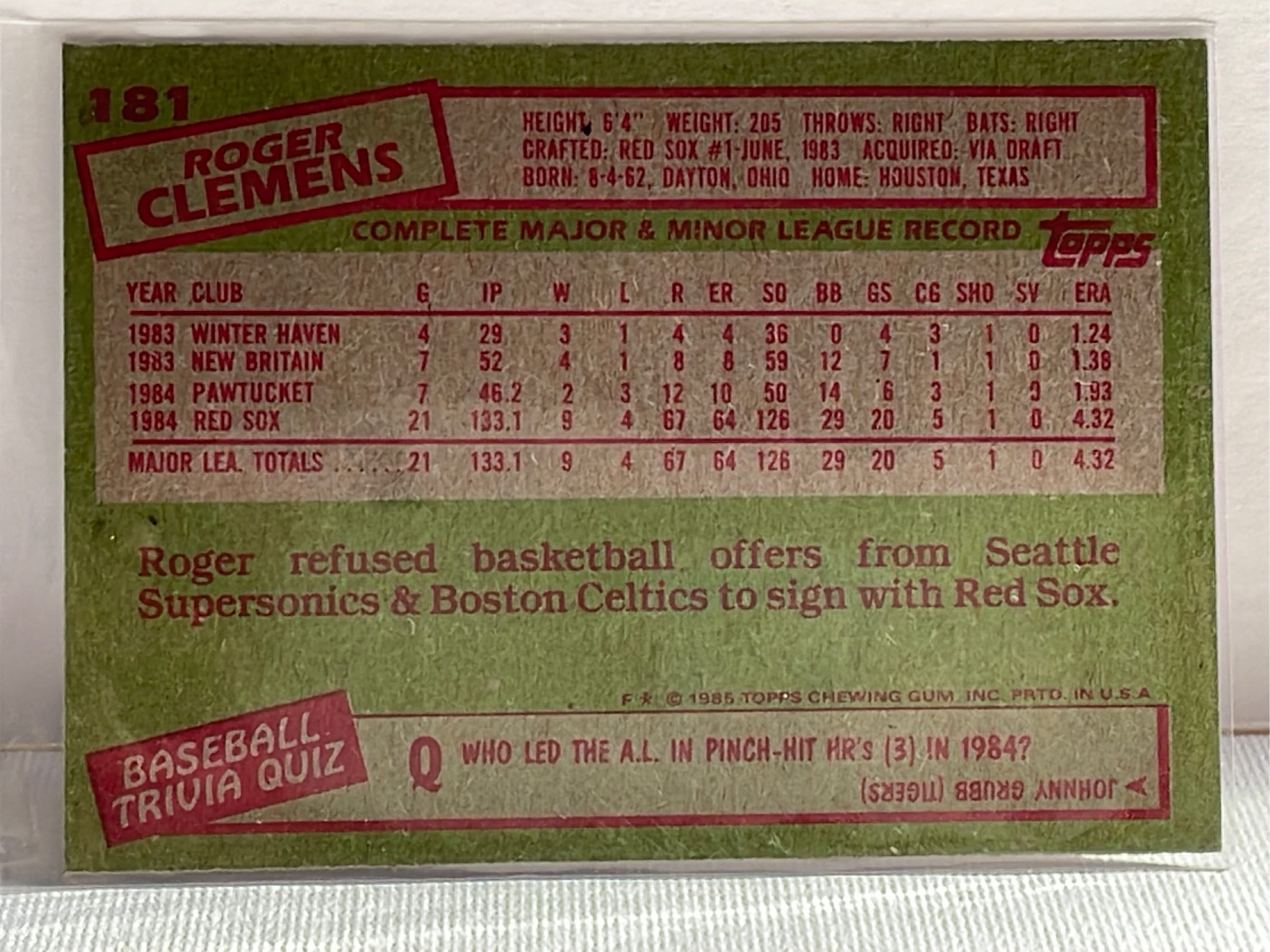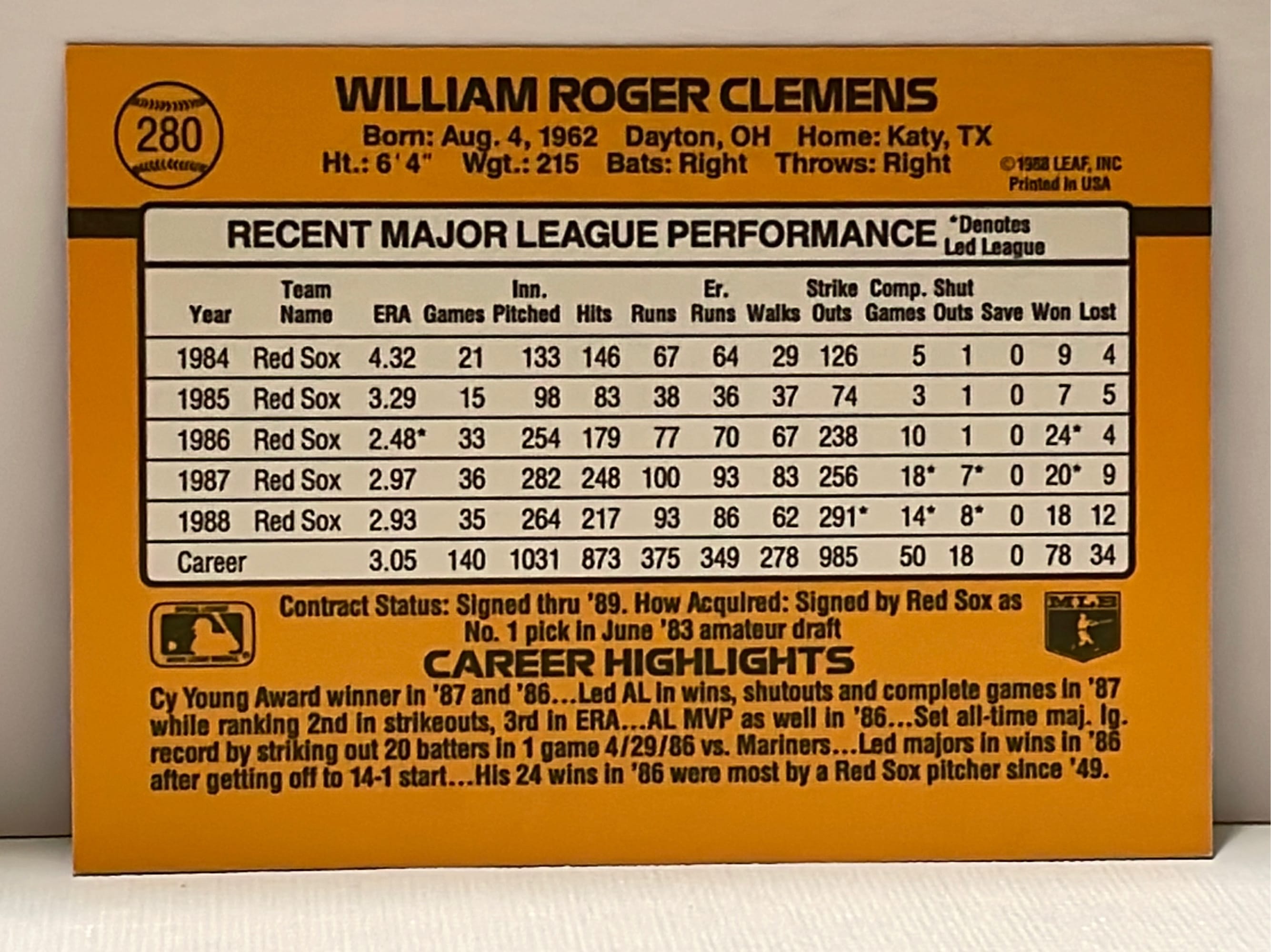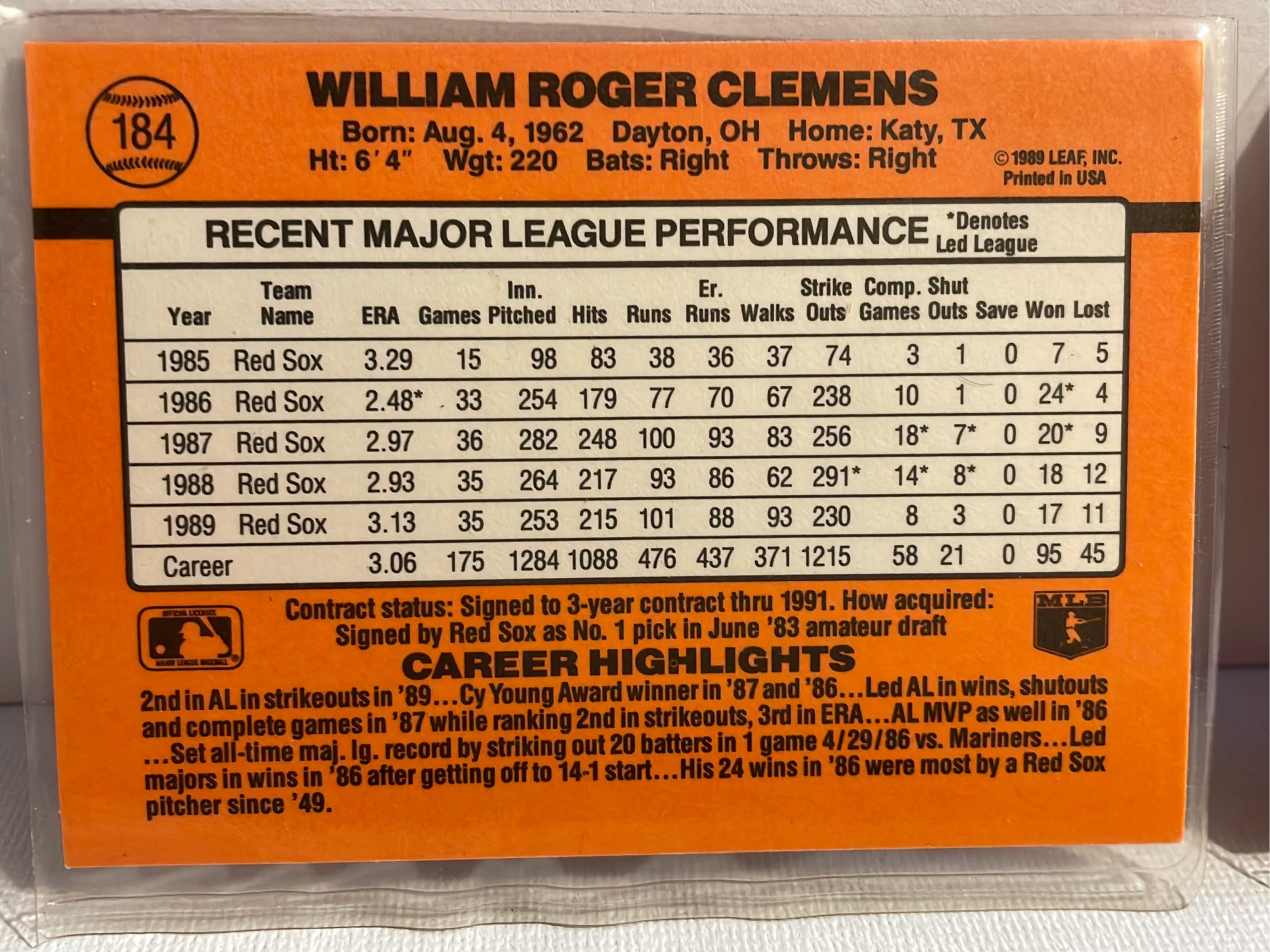 250 1989 Baseball Cards: Roger Clemens, and Rookie Randy Johnson