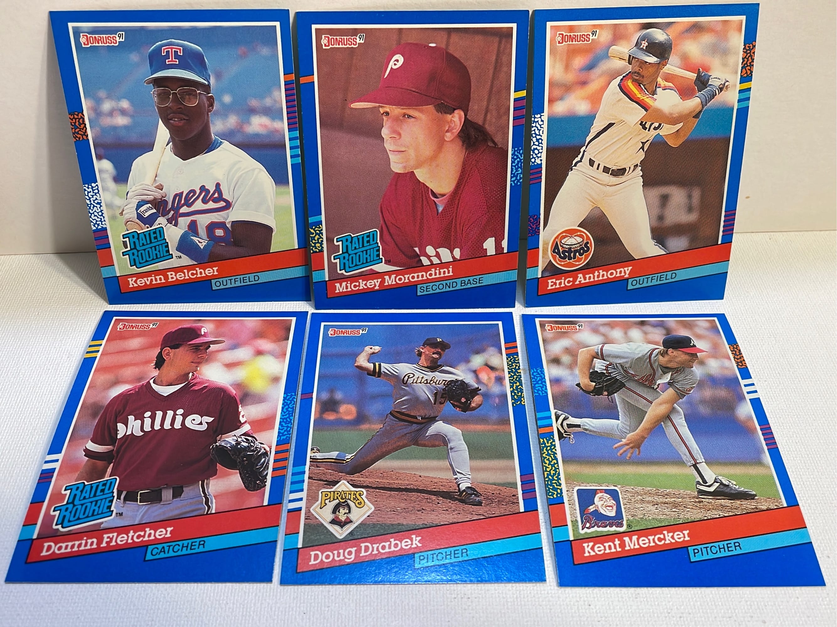 215 6 - 1991 Donruss Baseball Cards: Rates Rookies Mickey Morandini and Kevin Belcher, along with Eric Anthony, Kent Mercer, Doug Drabek, and Darrin Fletcher