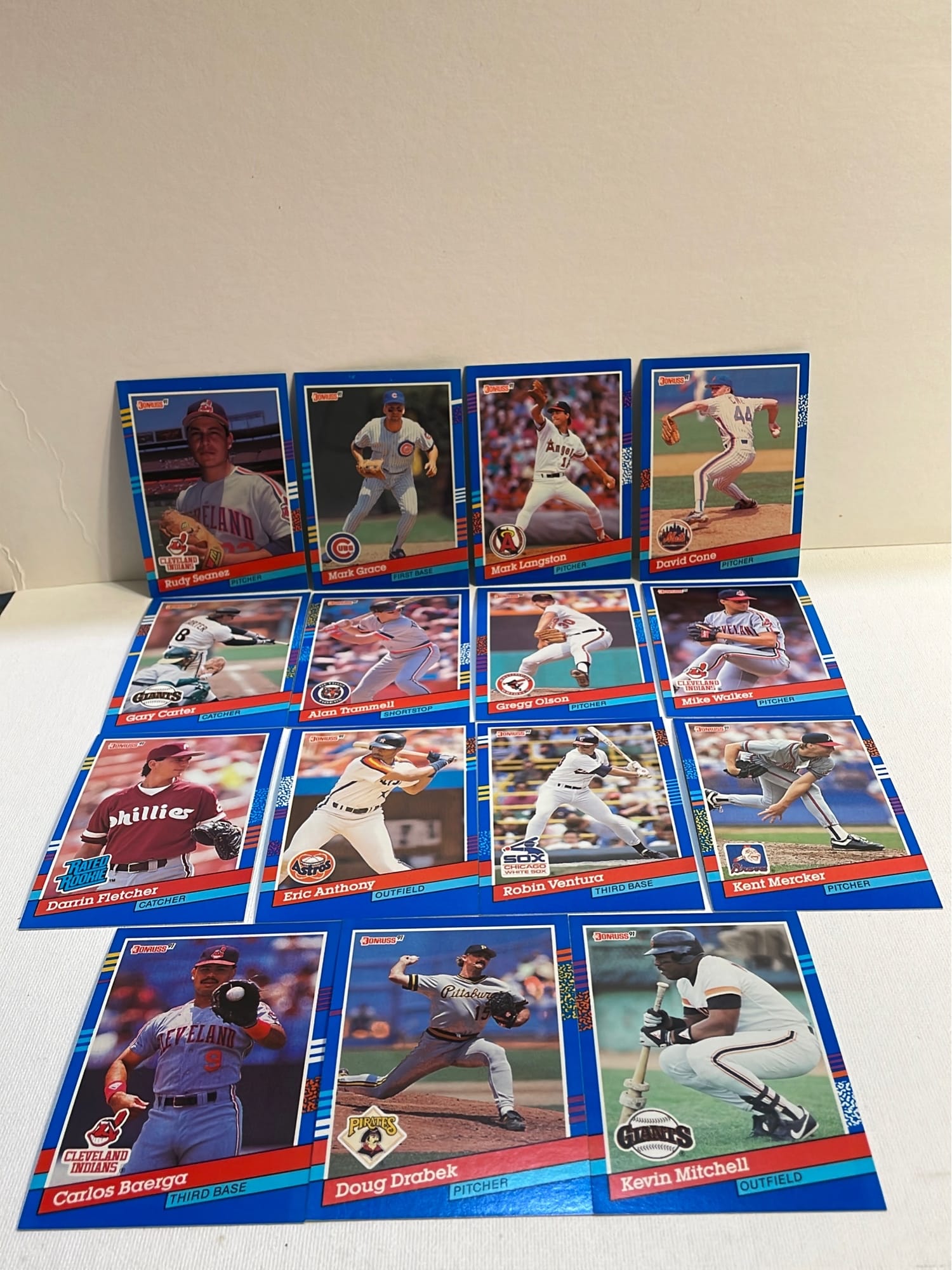 216 15 - 1991 Donruss Baseball Cards, including: Rated Rookie Darrin Fletcher, Seanez, Ventura, Grace, Baerga, Drabek, Anthony, Langston