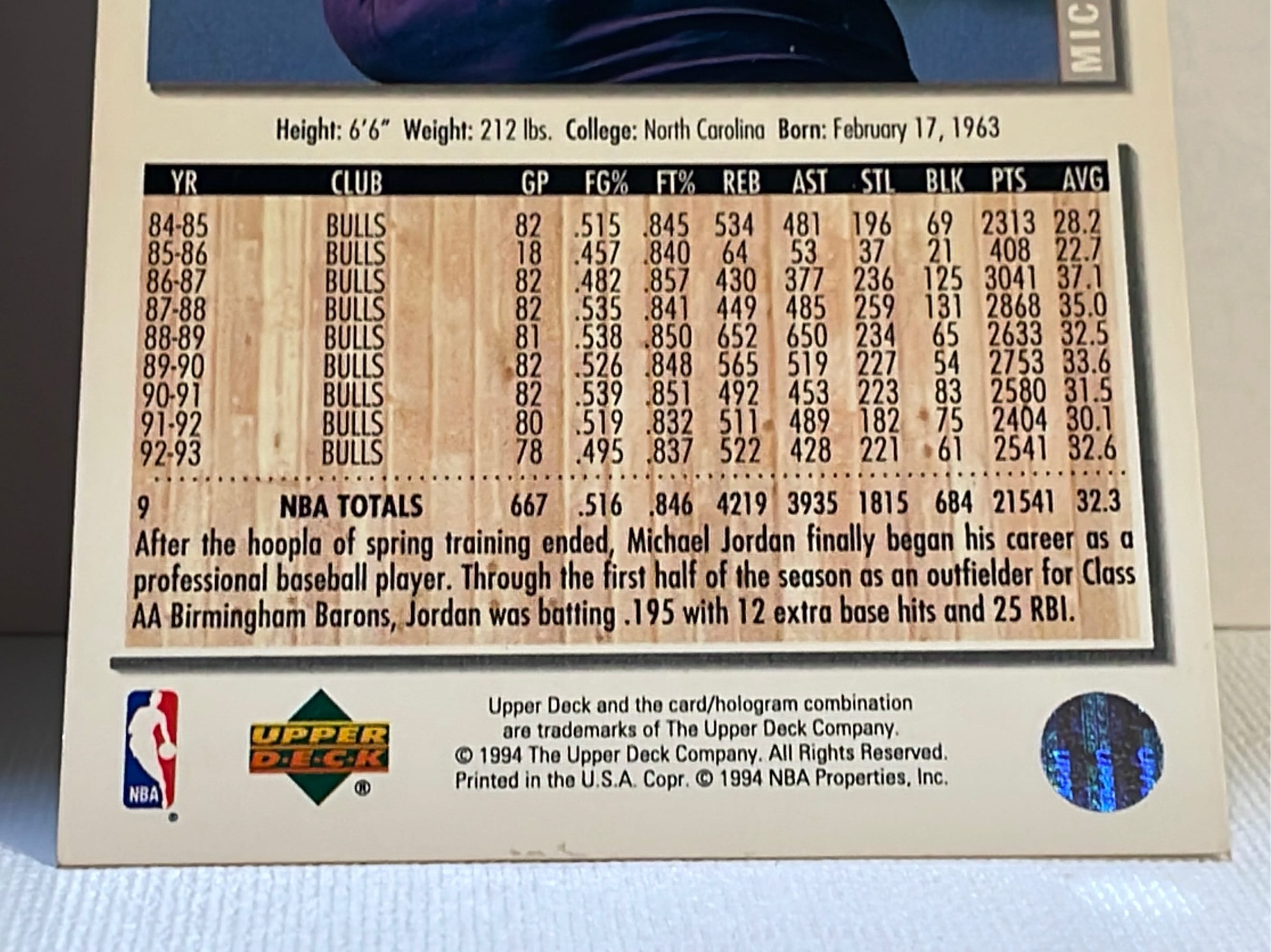219 4 - Michael Jordan Upper Deck Baseball Cards: 1991 #SPI, 1993 Star Rookies Electric Diamond #19, 1994 MJ3, 1994 #23