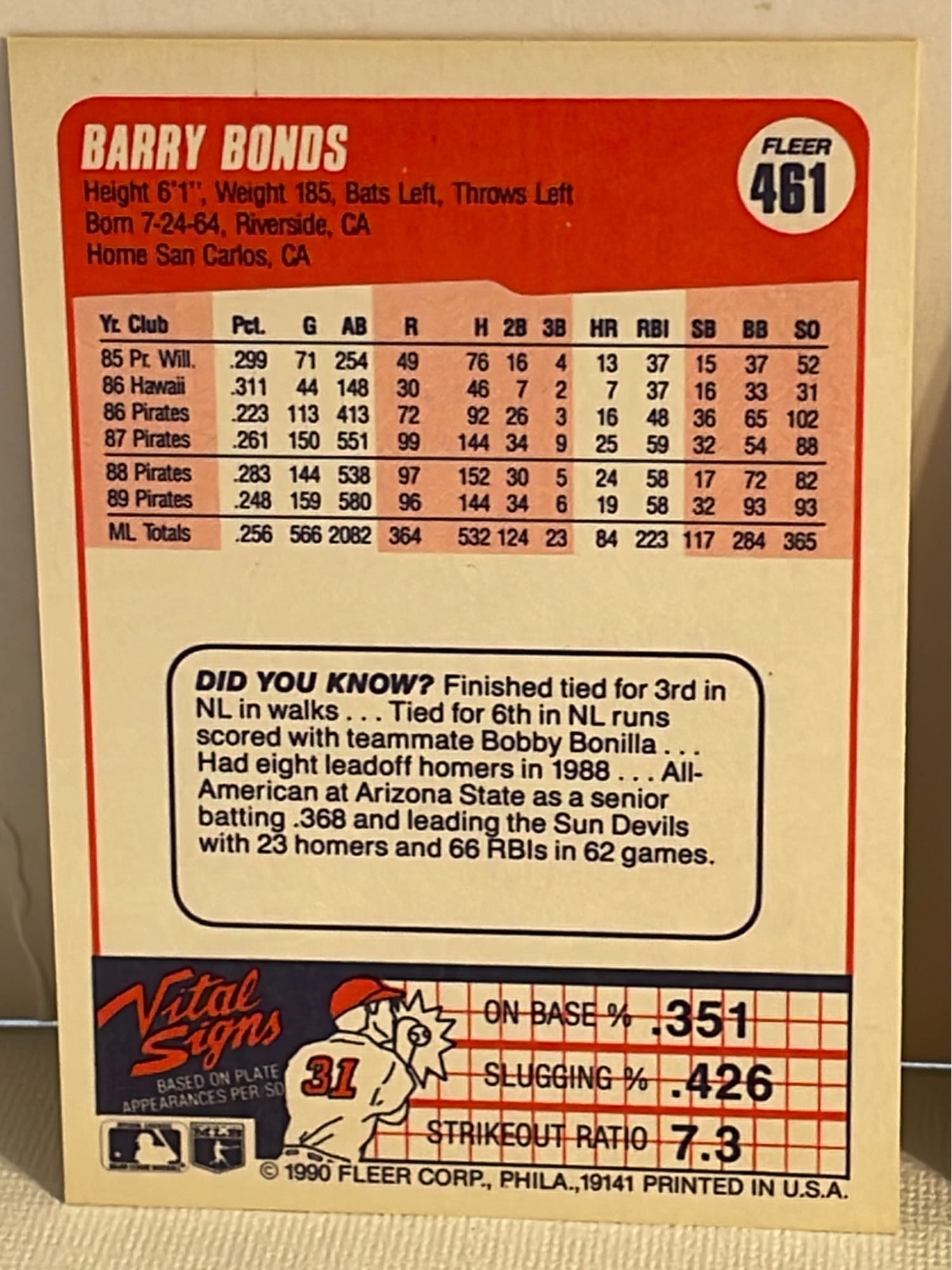 220 8 - 1990 Fleer Baseball Cards: Bonds, Hanson, Olson, Burks, Gant, Mitchell, Jose, Ryan / Scott