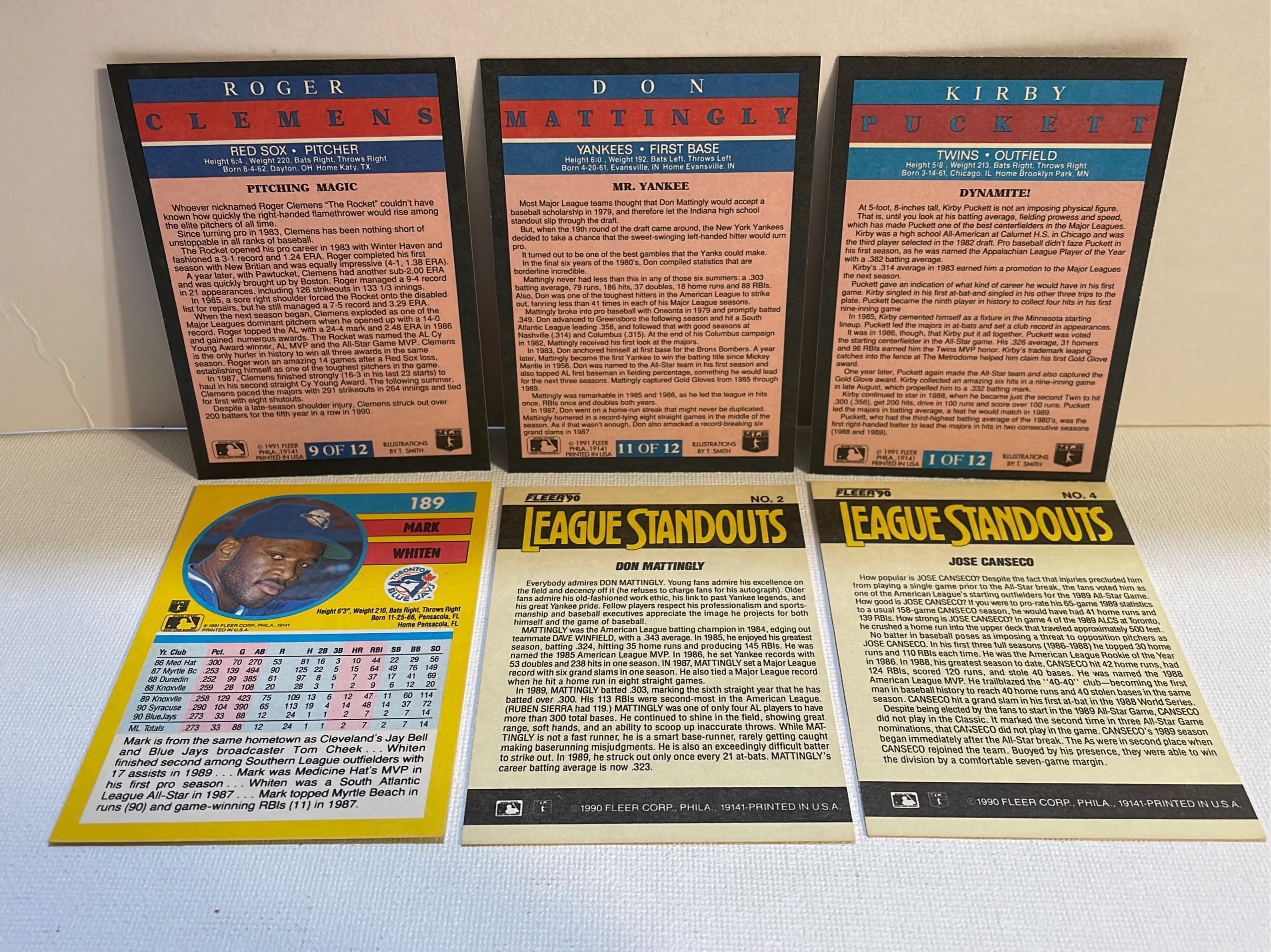 221 6 - Fleer 1990 and 1991 Baseball Cards: Clemens, Mattingly, Puckett, Whiten, Canseco