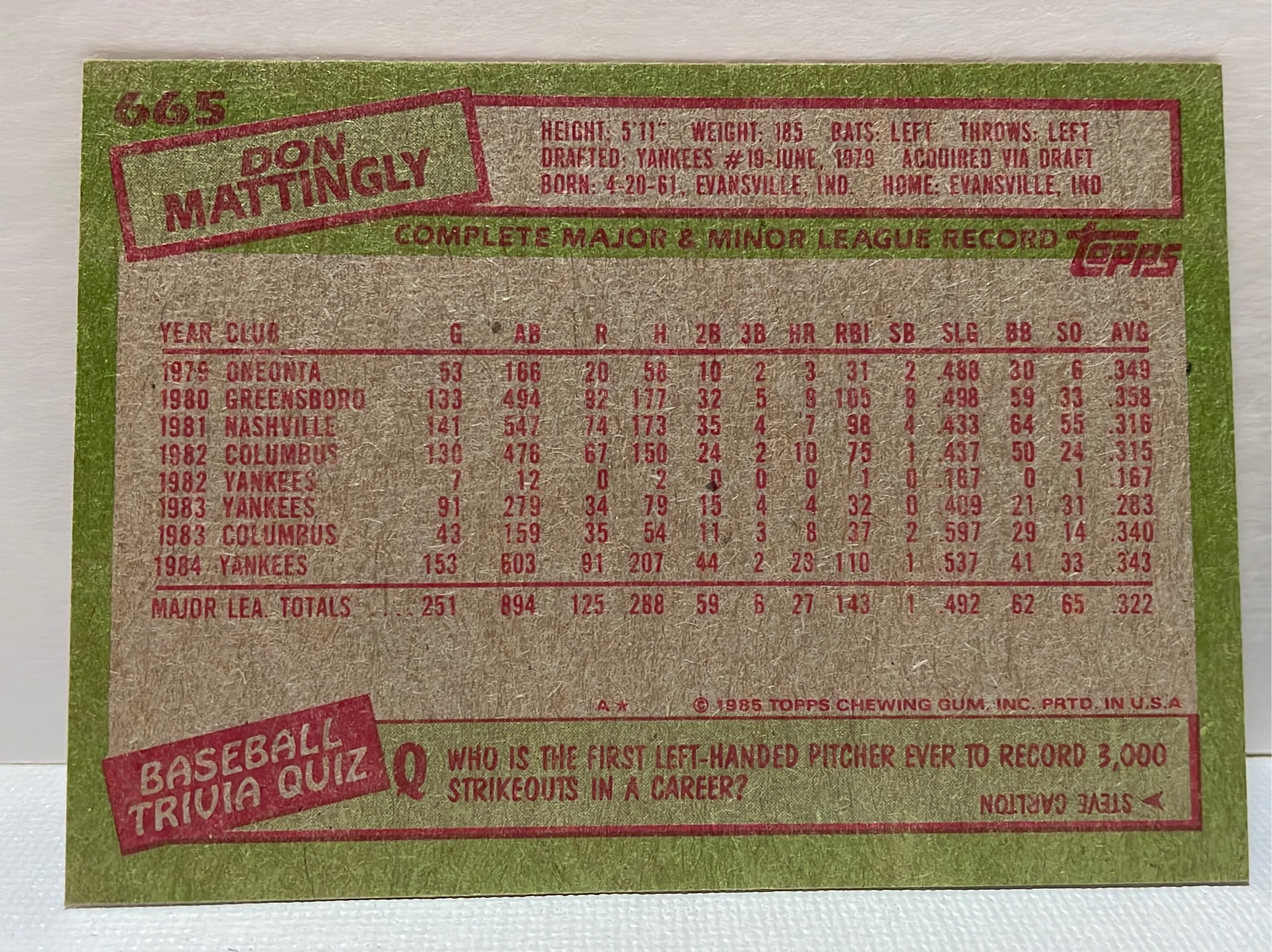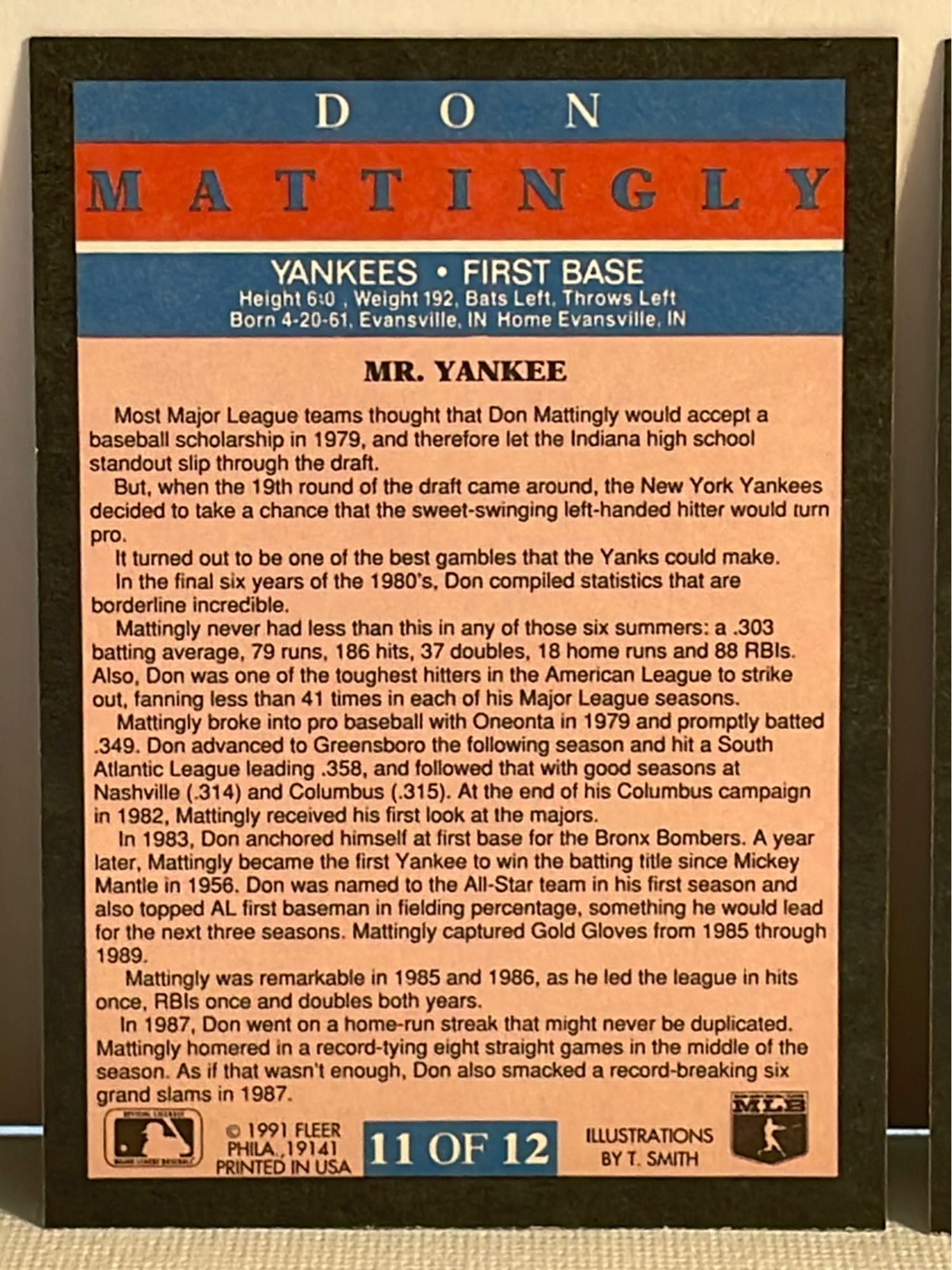 283 1985 and 1991 Don Mattingly Baseball Cards