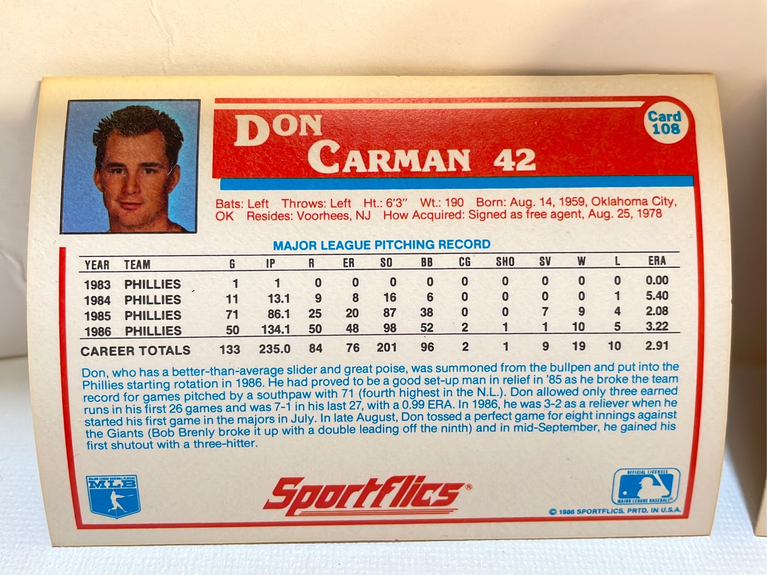 223 6 - 1986 Sportflics Baseball Cards: Carman, Moreland, Rhoden, Hernandez, Doran, Webster