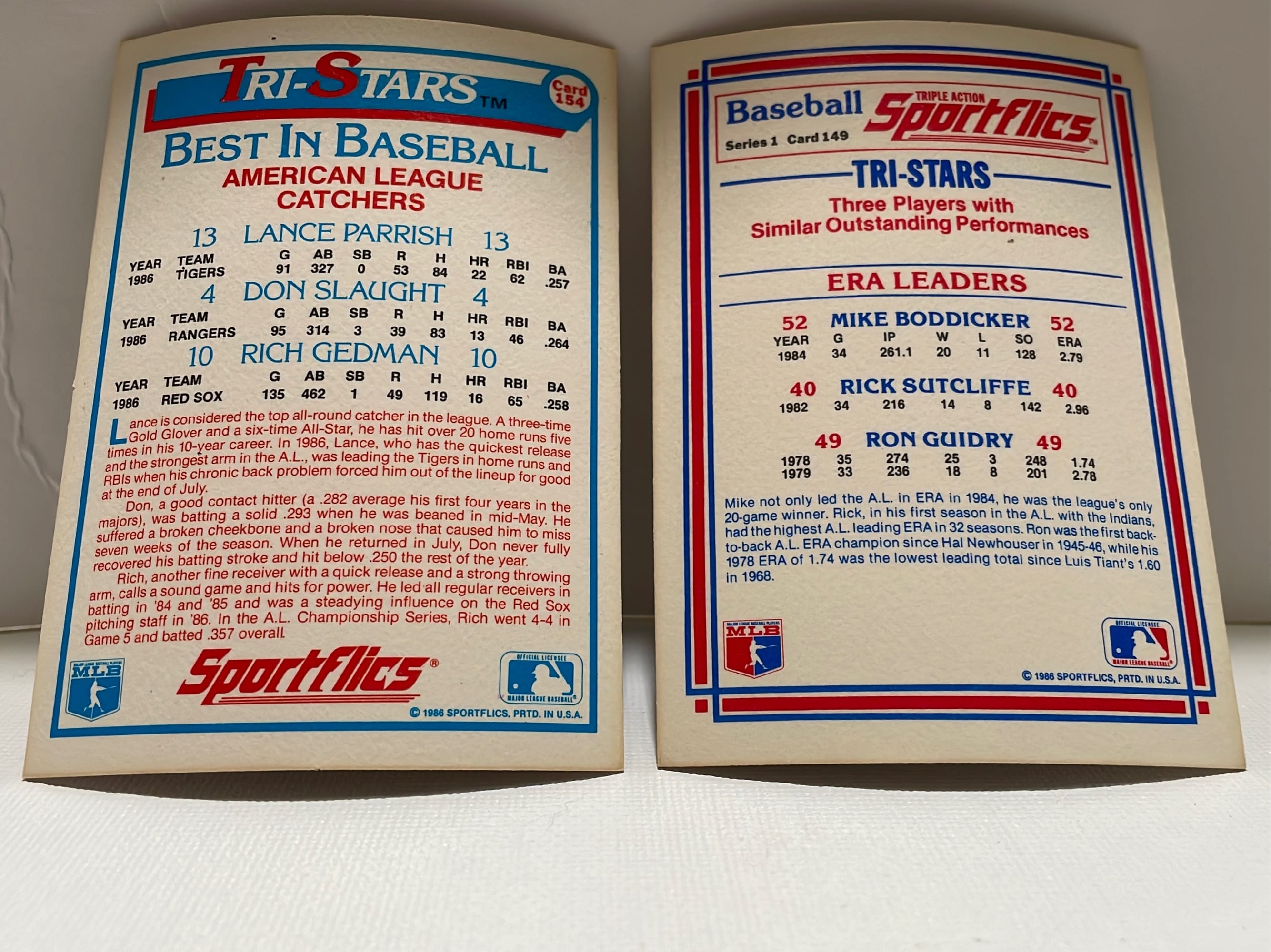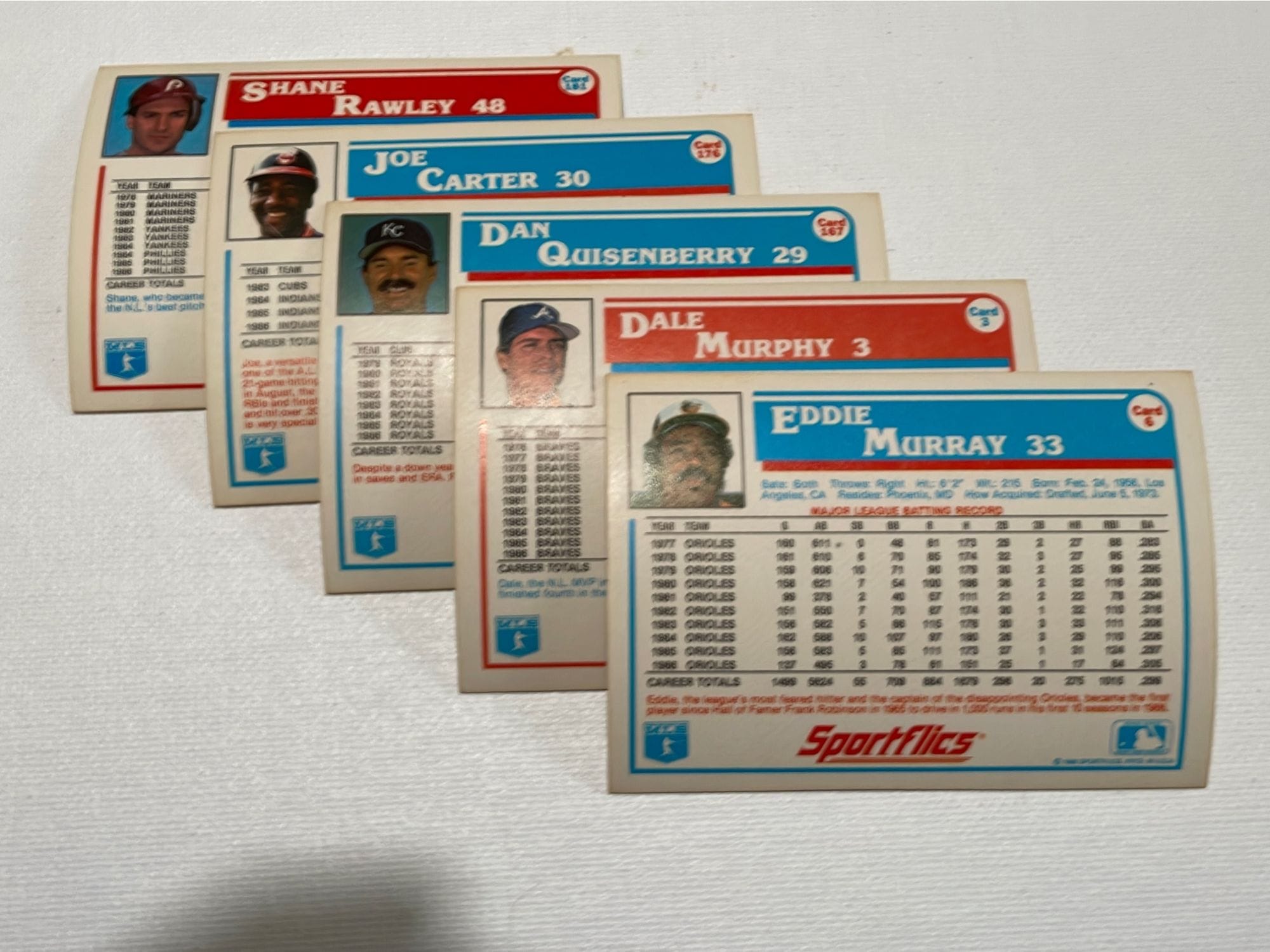 226 8 - 1986 Sportflics Baseball Cards: Murray, Murphy, Quisenberry, Carter, Rawley, along with “Best in Baseball” players and “Tri-Stars”