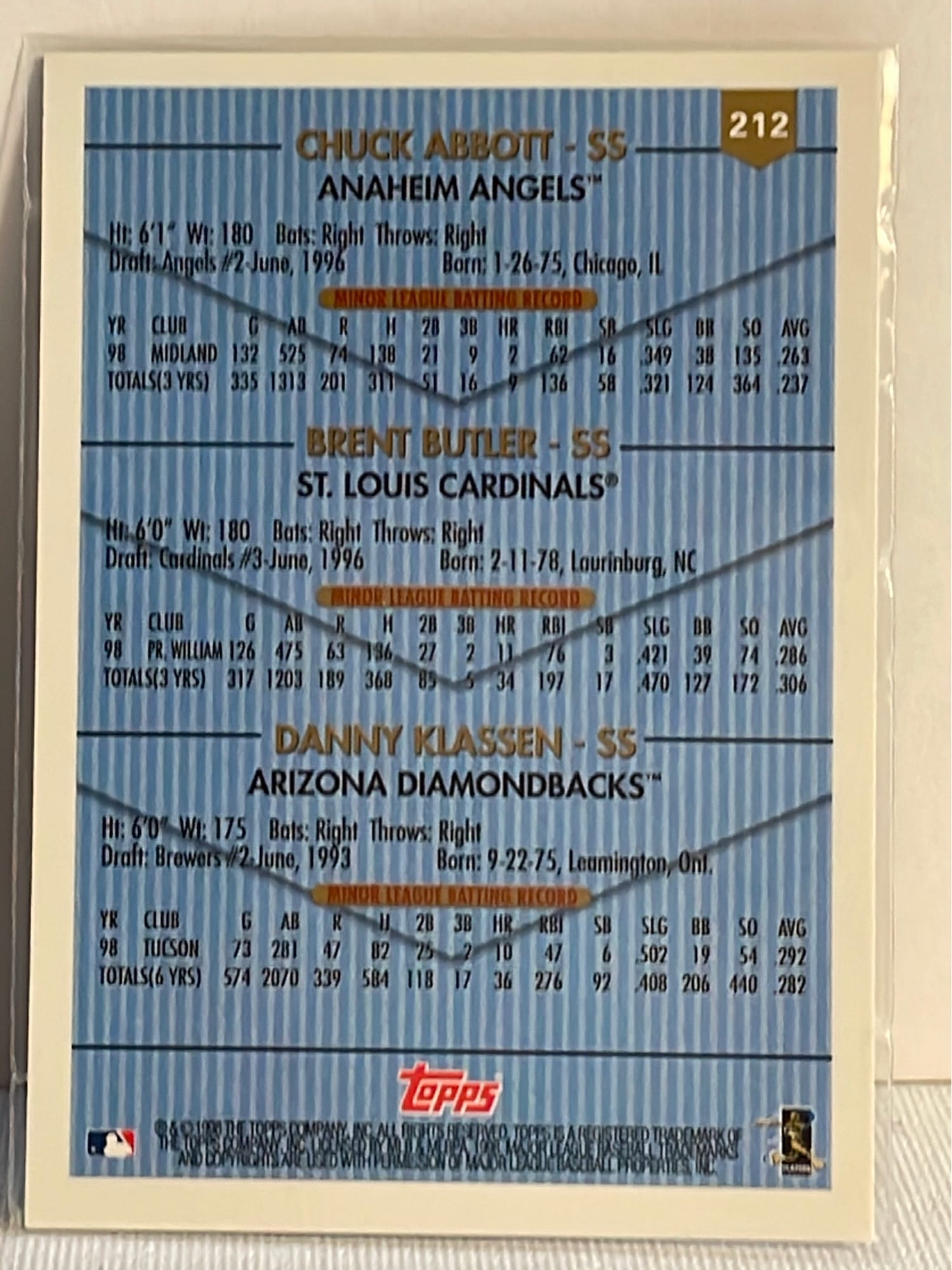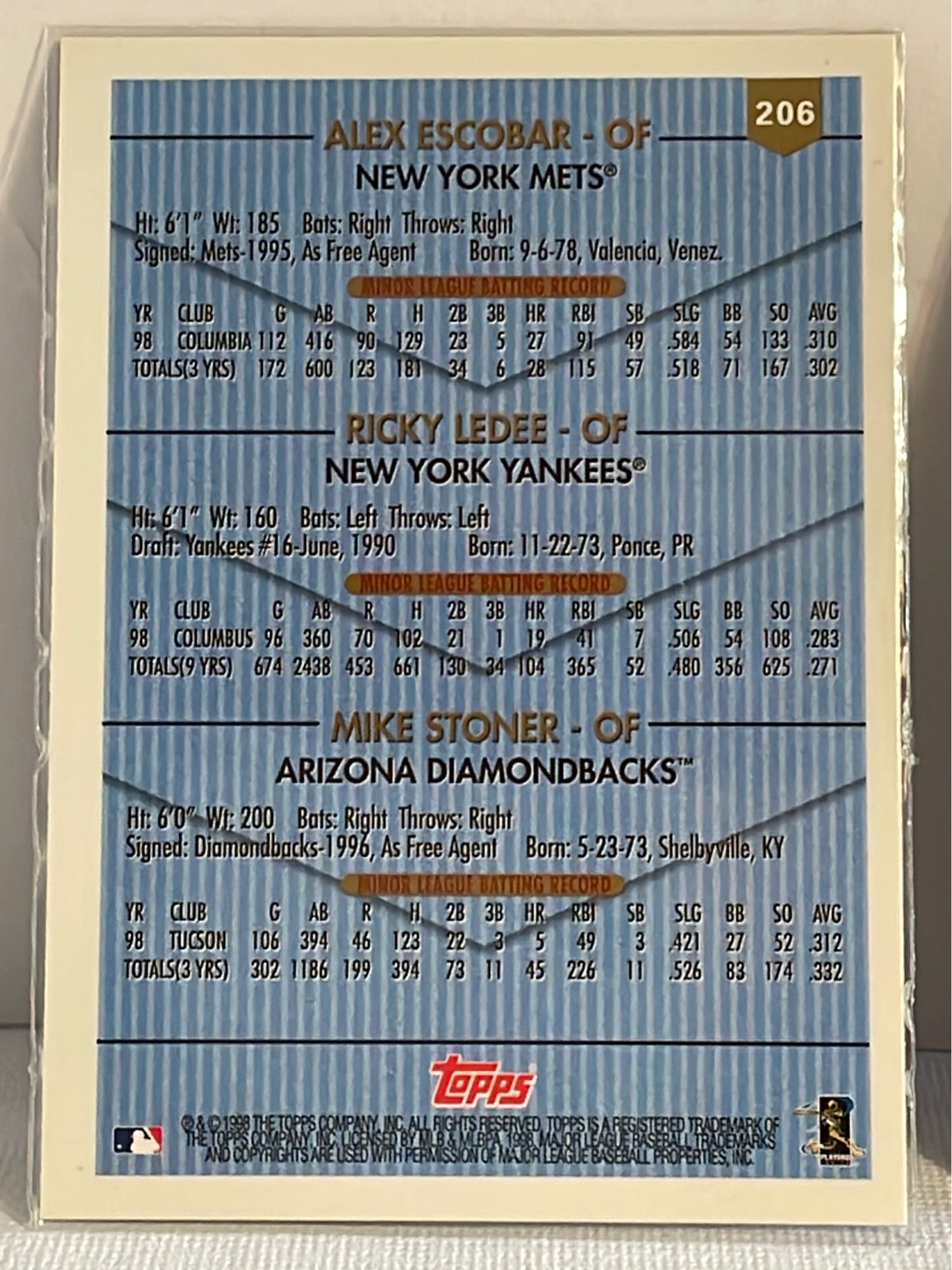 227 8 - 1998-99 Topps MLB Cards Including: Prospects Escobar, Ledee, Stoner, Lincoln, Dotel, Penny, Abbott, Butler, Kassebaum