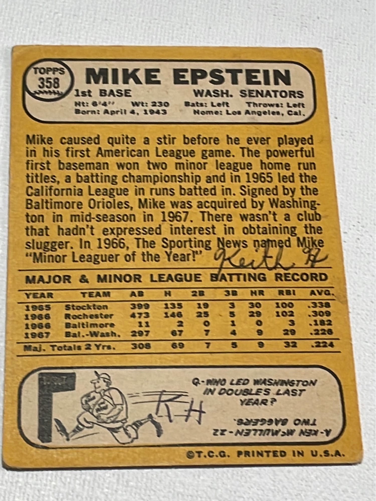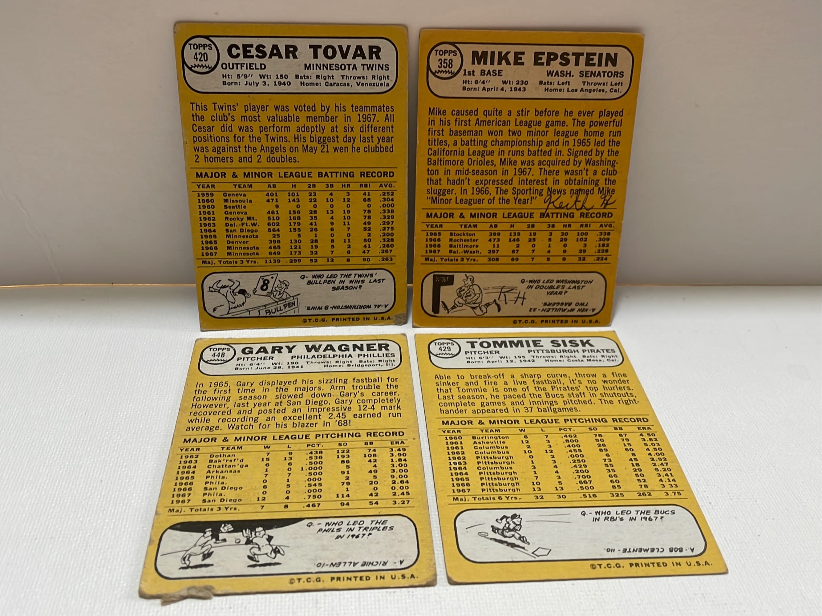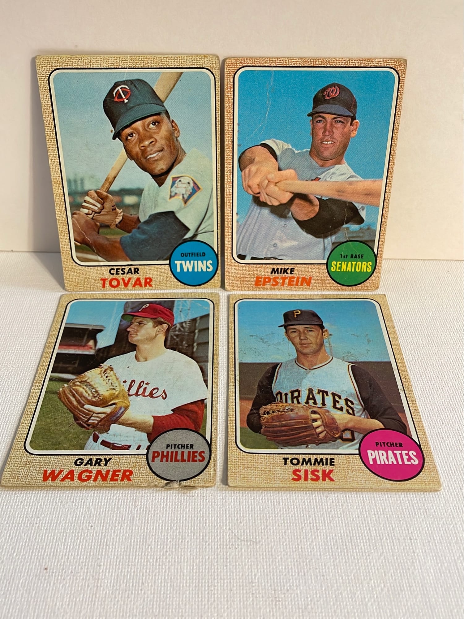 229 4 - 1968 Toops Baseball Cards: Tovar, Epstein, Wagner, Sisk - used condition