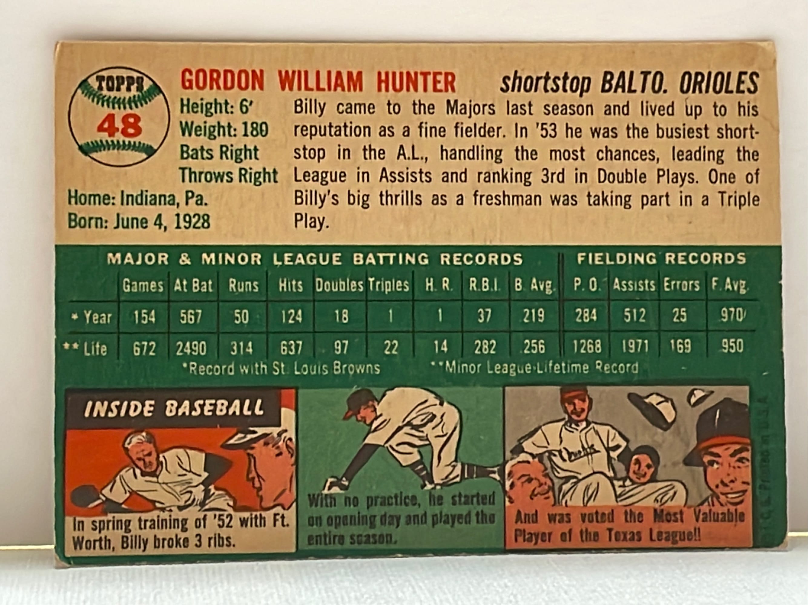 230 1954 Topps Baseball Card: Billy Hunter #48