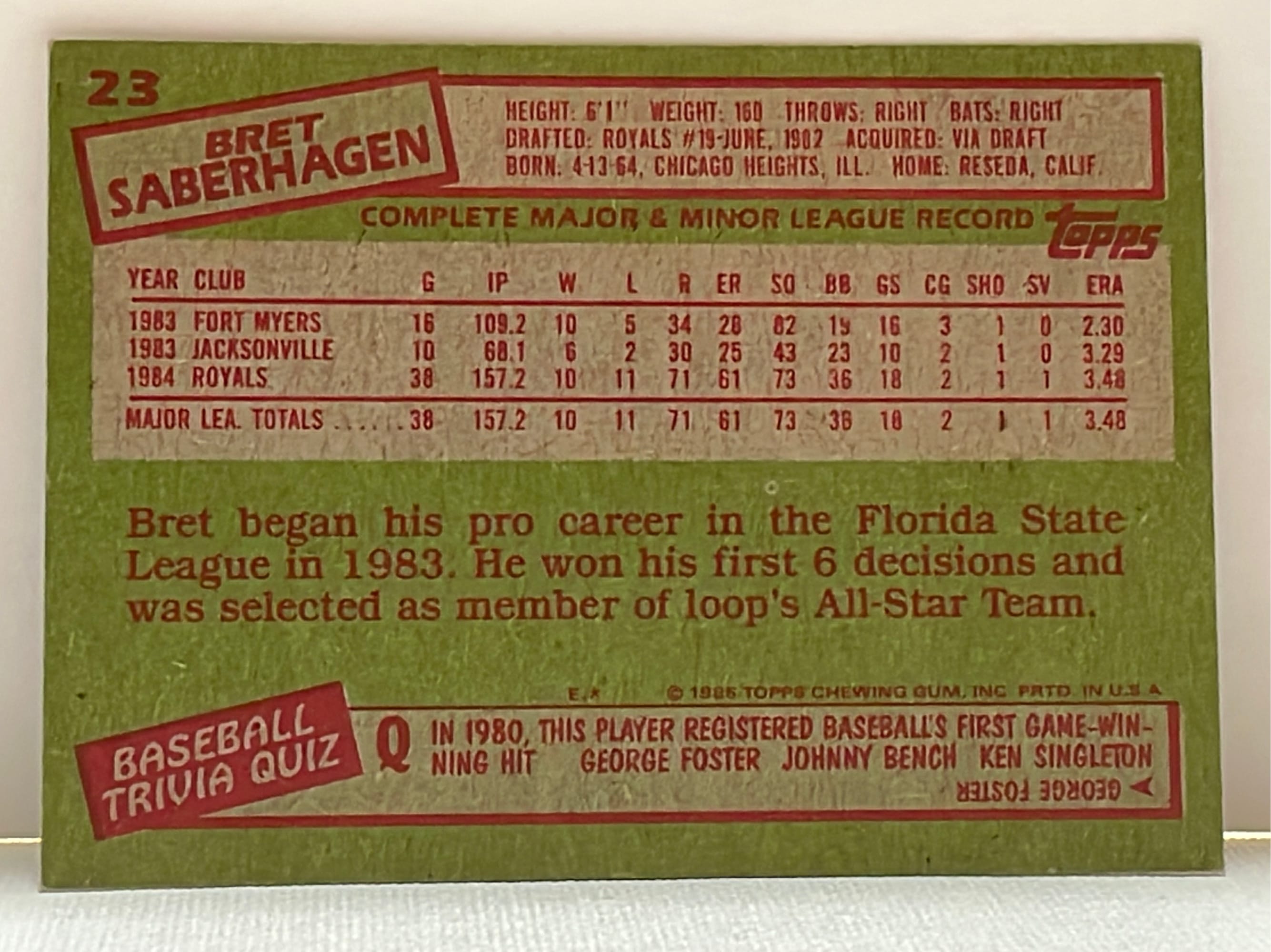 233 1985 Topps Baseball Card: Bret Saberhagen