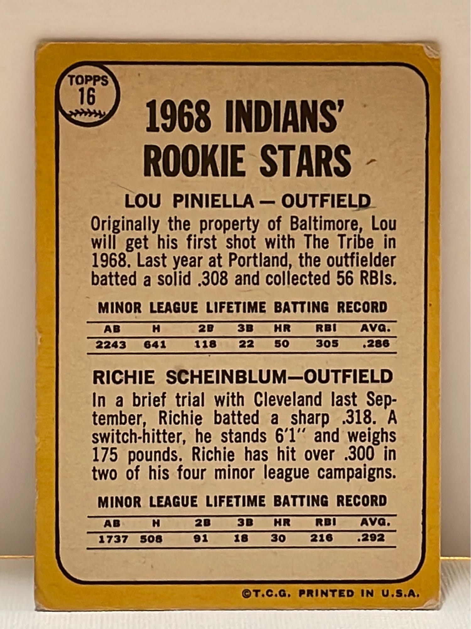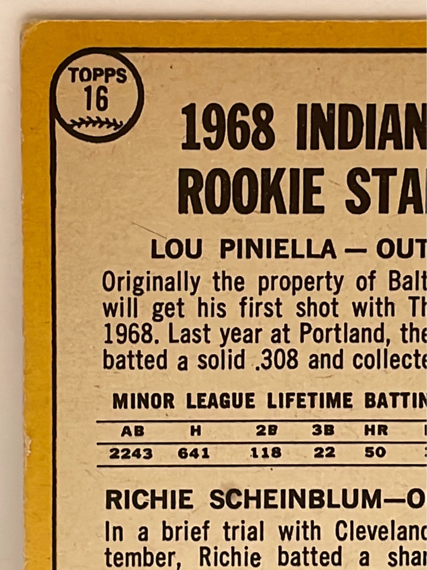 234 1968 Topps Baseball Card #16: ROOKIE STARS Piniella and Scheinblum