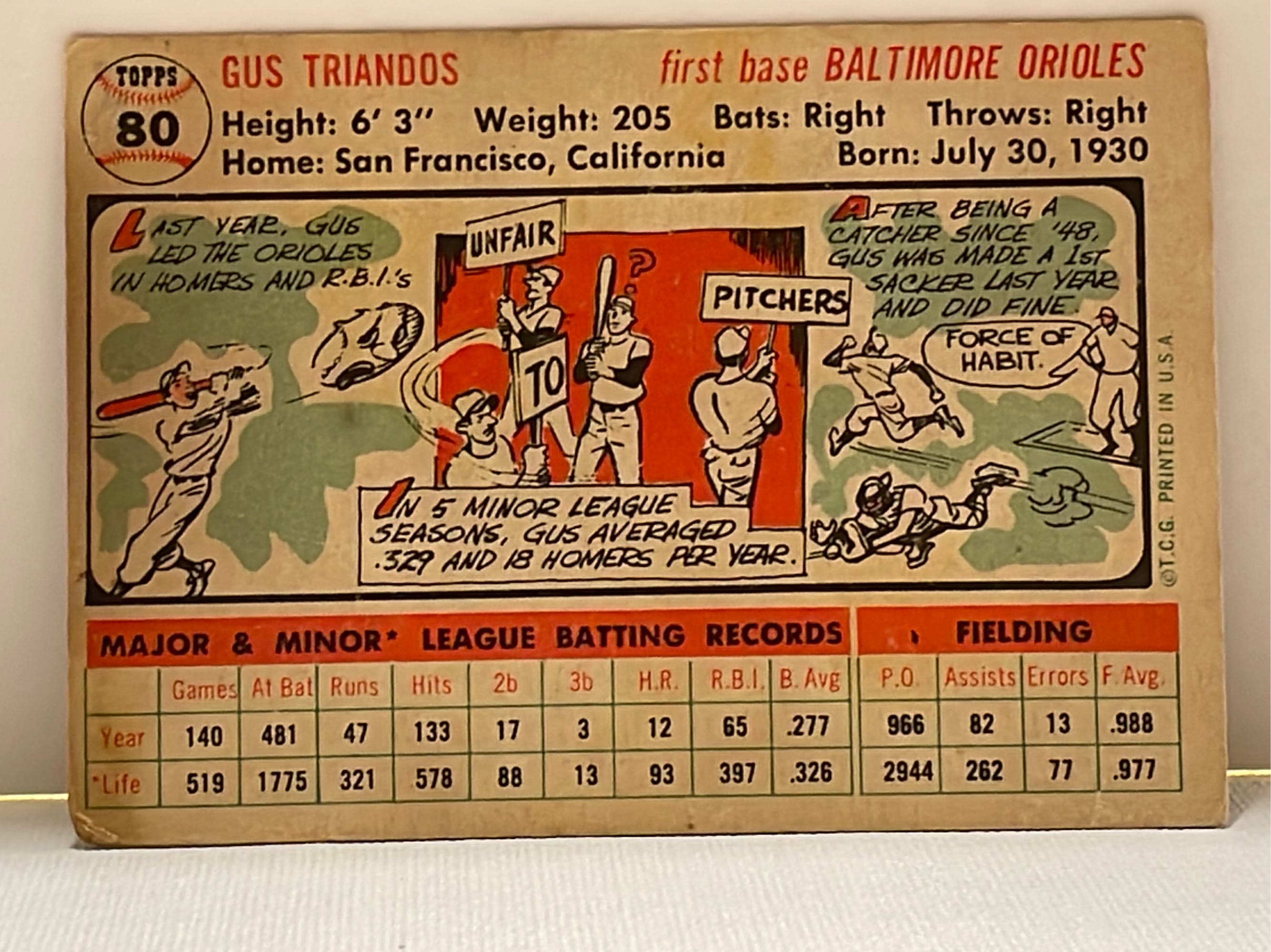 235 1956 Topps Baseball Card #80: Gus Triandos - used