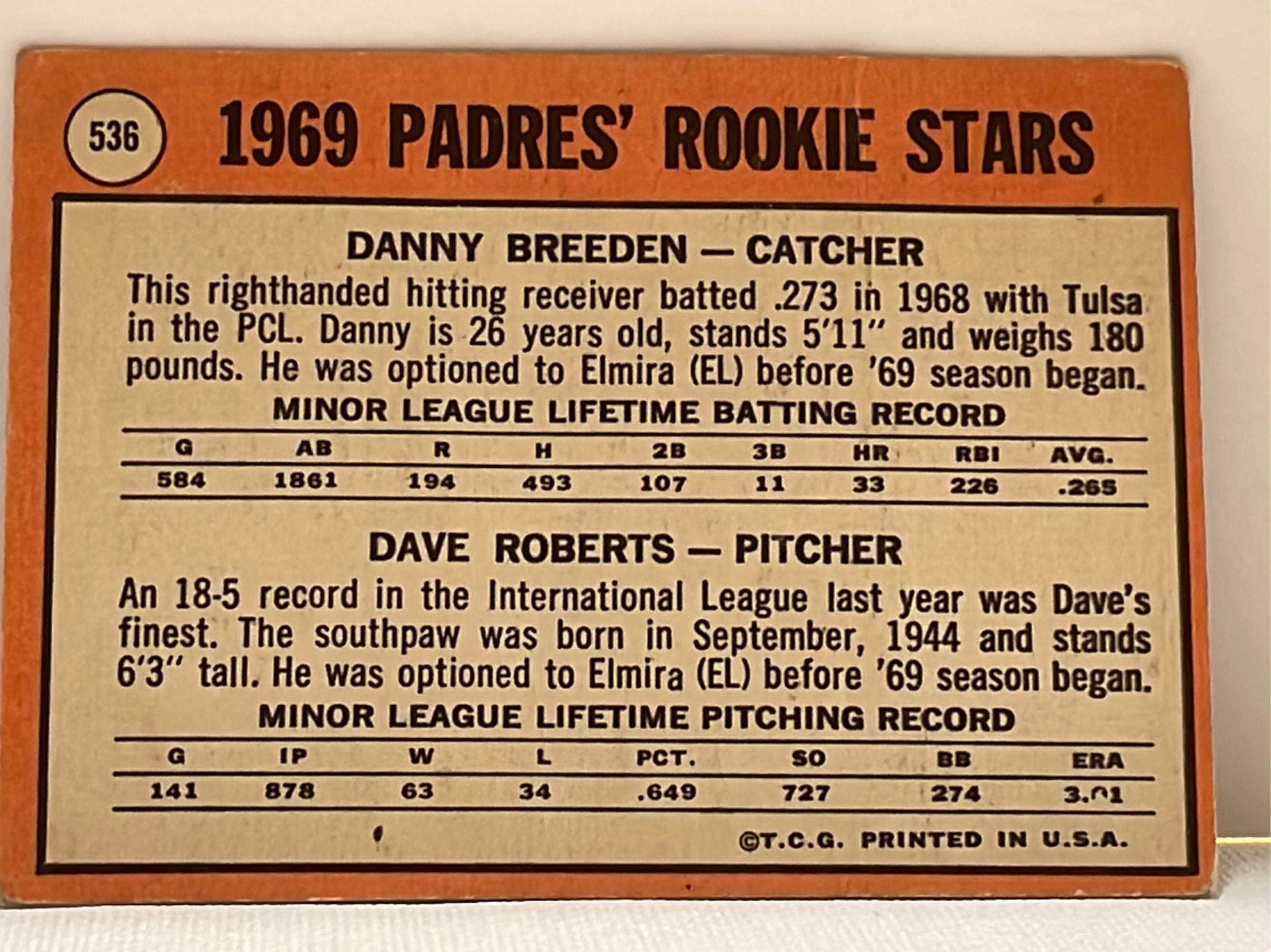 236 1969 Topps Baseball Card: ROOKIES Danny Breeden and Dave Robert’s - used