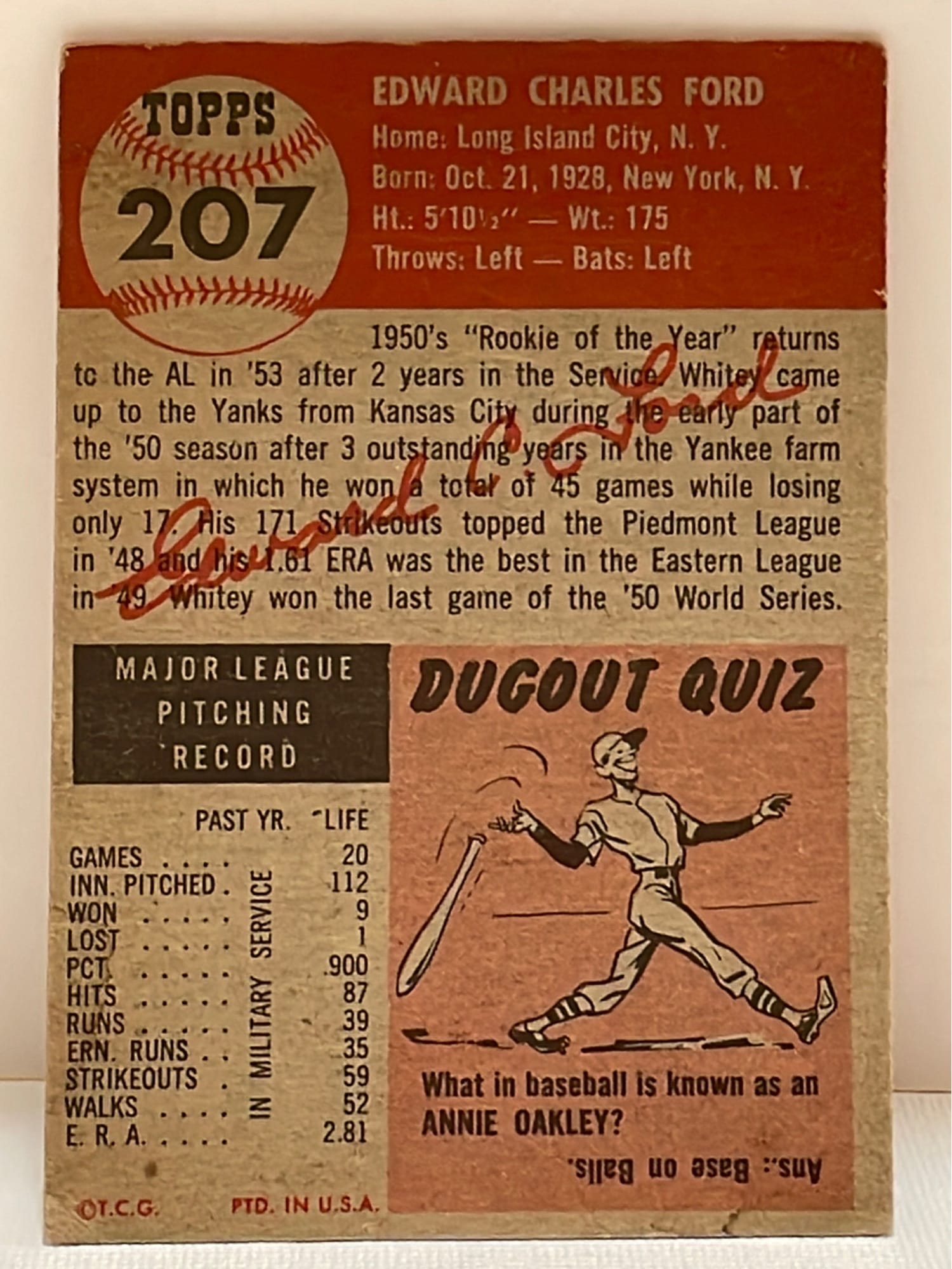 241 1953 Topps Baseball Card #207: Whitey Ford - used
