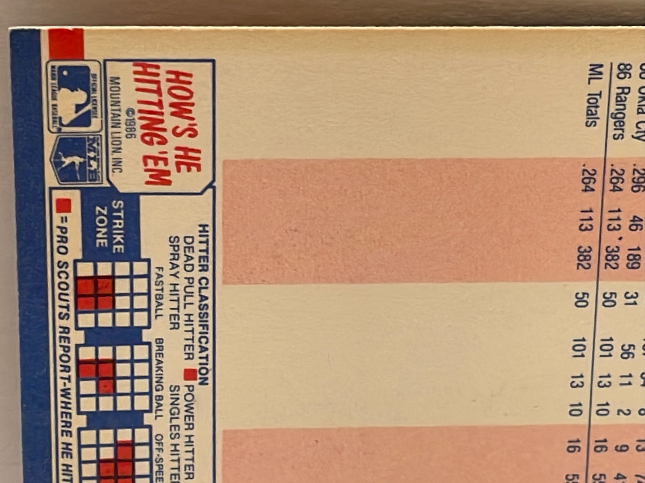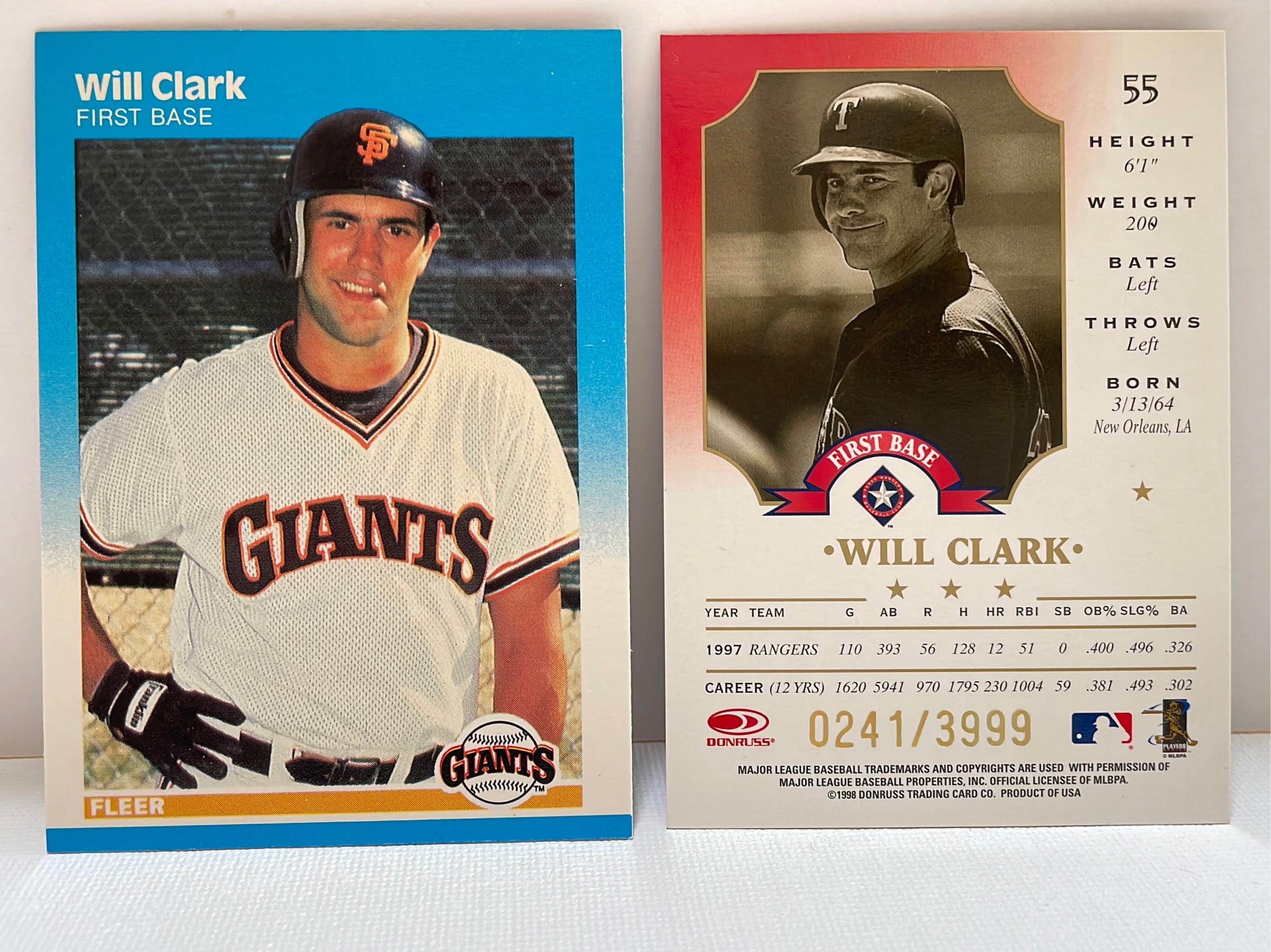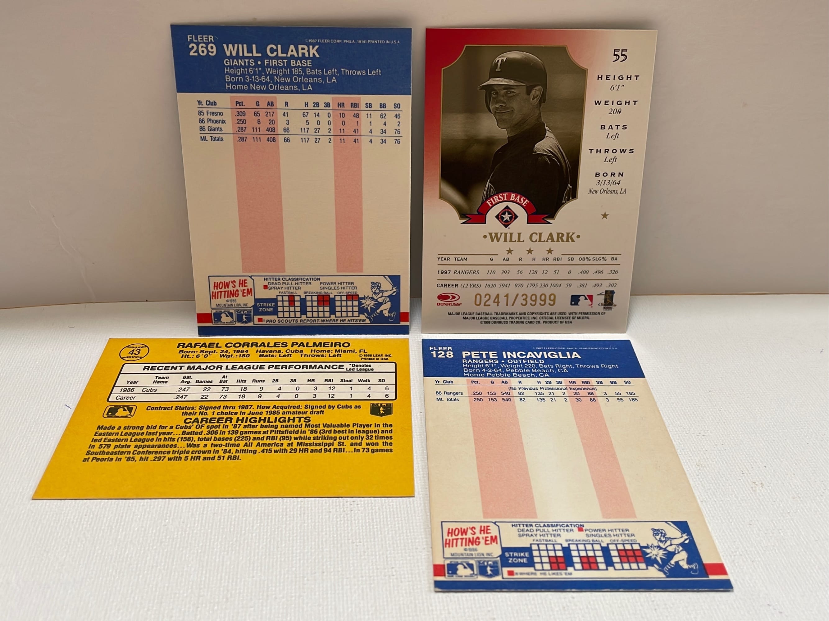 244 4 - Baseball Cards: Rafael Palmer (Rated Rookie), Pete Incaviglia, Will Clark (‘87 and ‘98)