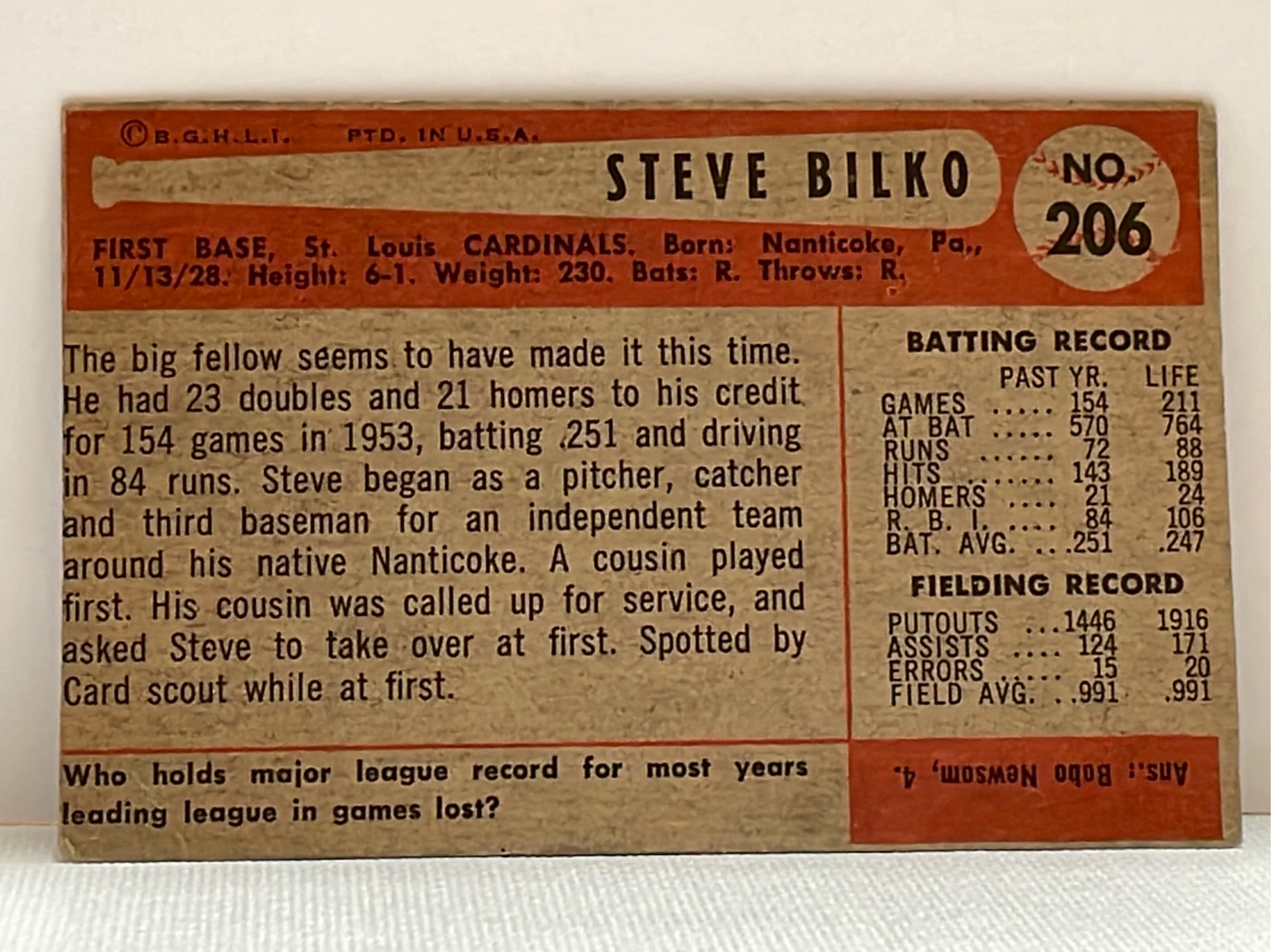 248 1954 Bowman Baseball Card #206: Steve Bilko - used