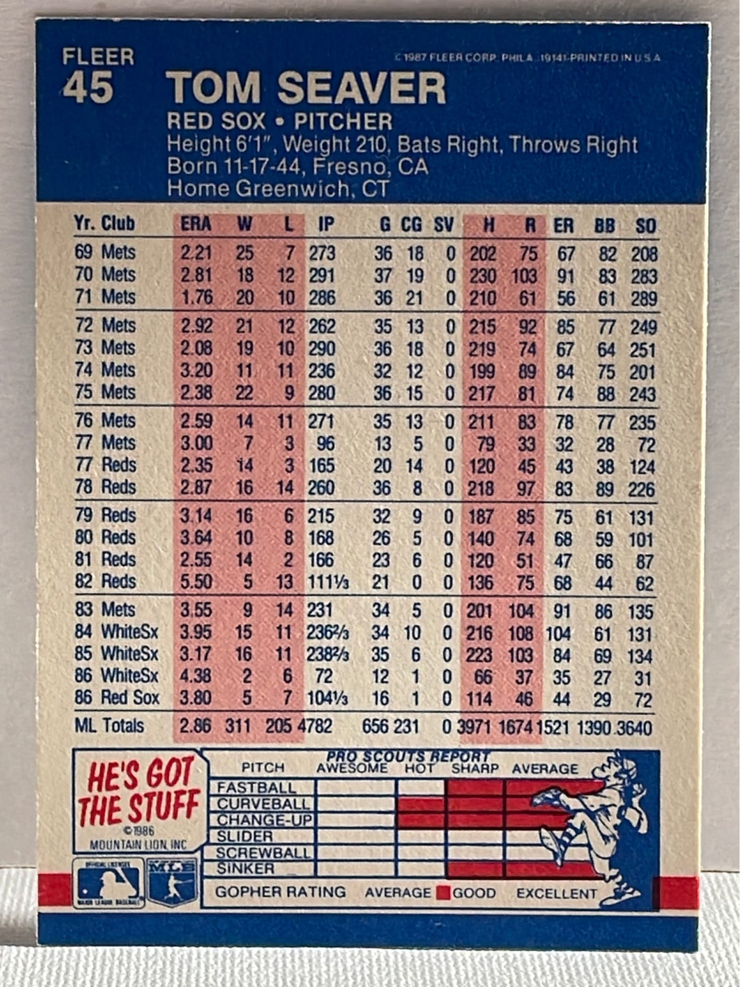 243 2 - Baseball Cards: 1984 Topps #108 Tom Seaver and 1987 Fleer # 84 Reggie Jackson