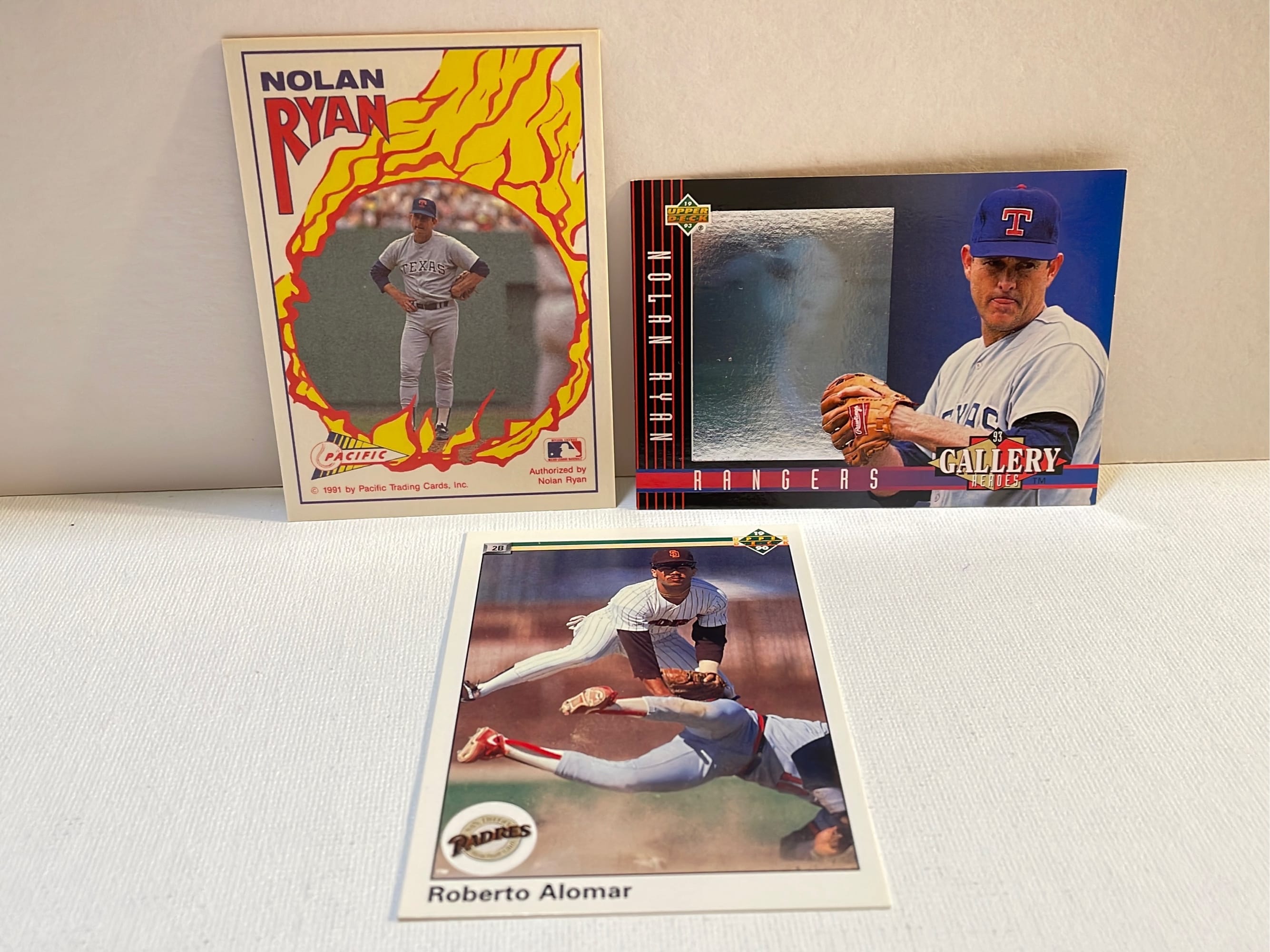 252 3 - Baseball Cards (1990, ‘91, ‘93 hologram): Roberto Alomar and Nolan Ryan